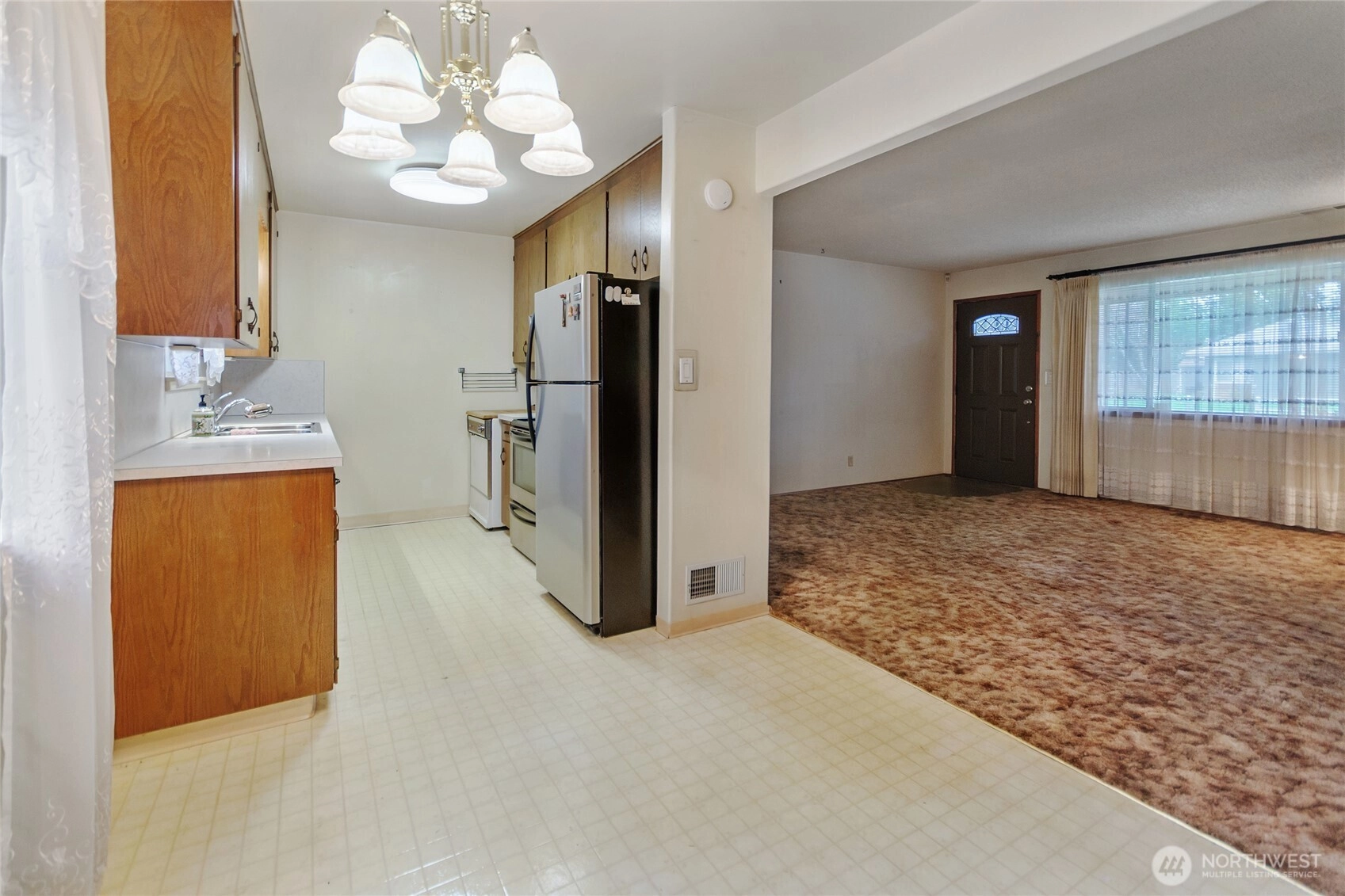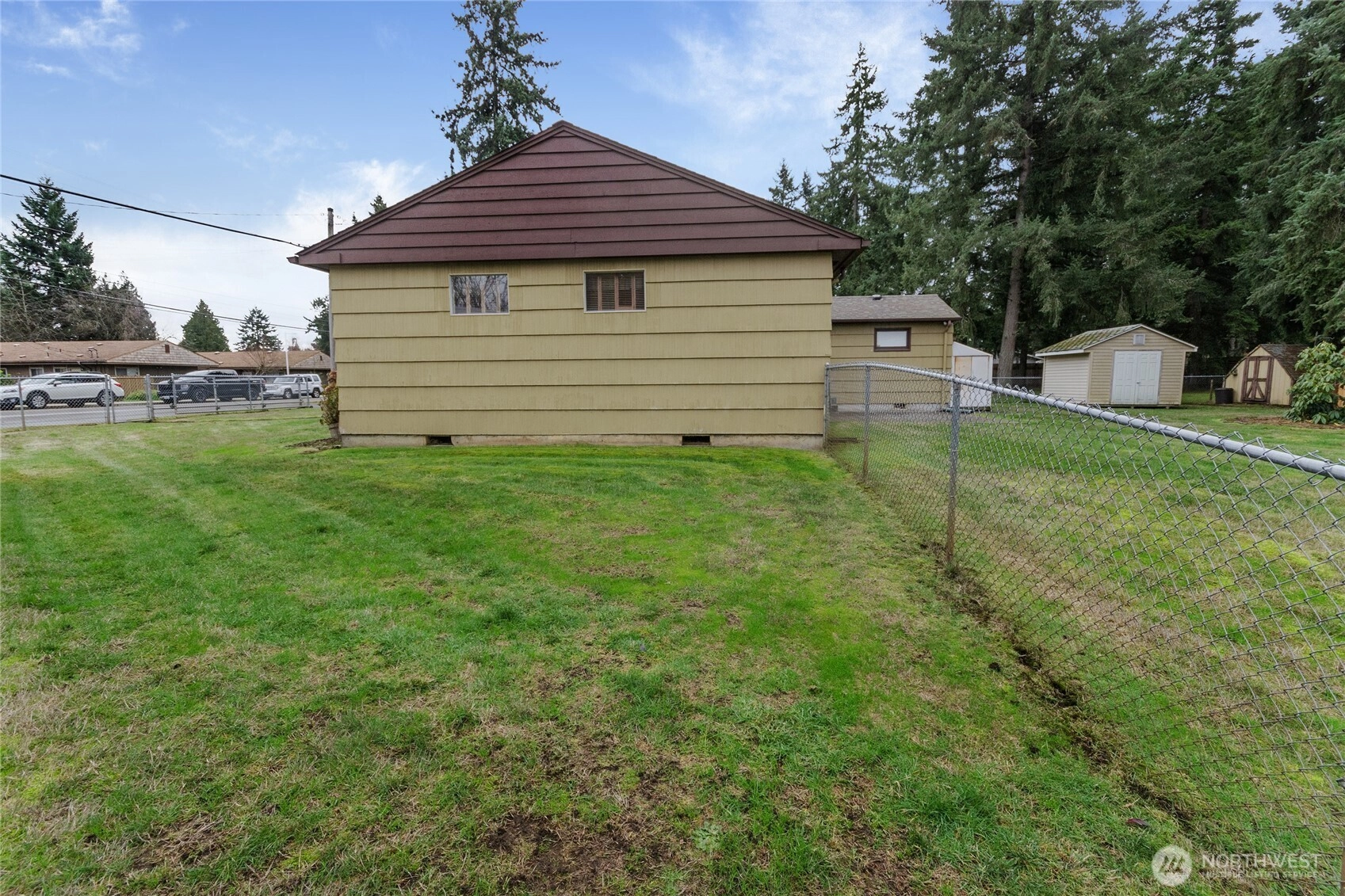 This one story home is in a great location on a large .27 acre fully fenced lot. Plenty of parking with paved area out front, long driveway and lean-to carport. Hardwoods under carpet from living room through the hallway into the bedrooms. 1.75 baths. Separate family room. Large laundry room. Attached back room includes shop area plus furnace and hot water heater. Large fully fenced yard with 2 outbuildings. Home has been very well cared for.