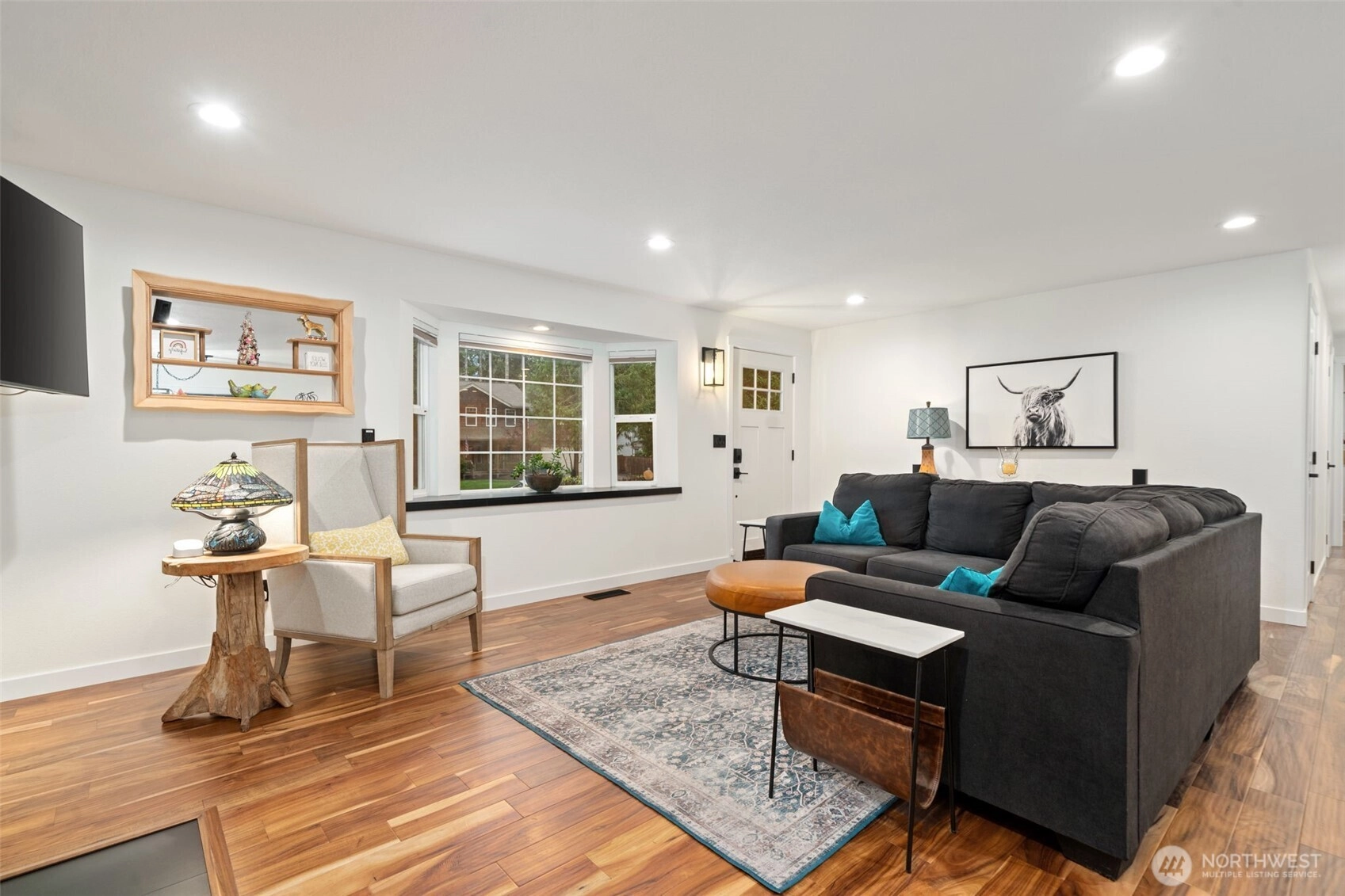 Here is a beautiful, single-level home in Lakeland Village! Located on an oversized, level lot with a one-car garage and rare RV parking, this 2-bed, 2-bath home is FULLY remodeled, top to bottom, and offers modern living with an open, well-designed floor plan. Features include a gorgeous kitchen with all-new LG appliances, engineered Acacia hardwood floors, and a stunning primary suite. All-new heating and cooling systems, new electrical service, and, for peace of mind, a 6-year-old roof. Whether it's morning or evening, you will LOVE relaxing out on the covered backyard deck. Enjoy Lakeland's private 50-acre spring-fed lake, 27-hole golf course, tennis, pickleball, and more. Close to the Allyn waterfront, dining and shops. Welcome home!