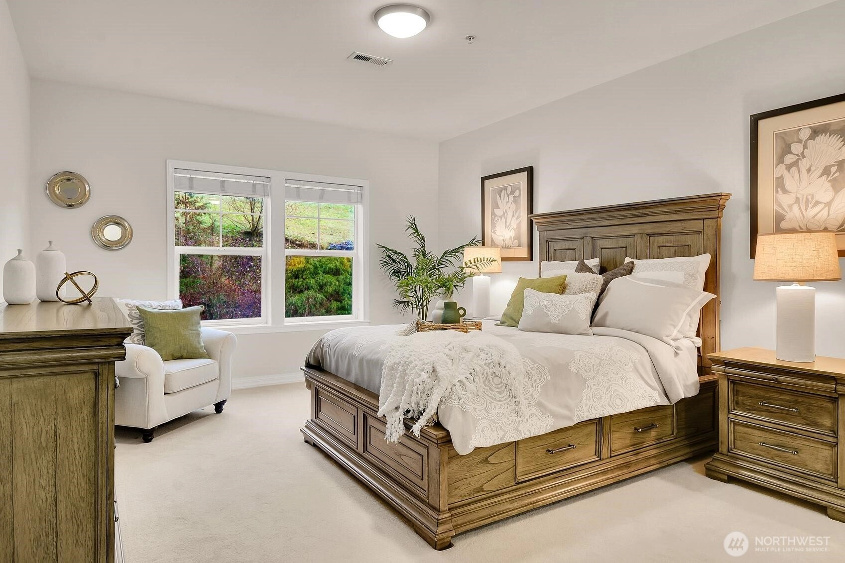 Issaquah’s premier 55+ community offers independent living with an active lifestyle.You’ll find an abundance of amenities & activities for everyone. Enjoy gorgeous views of nature & privacy from every room in this exquisite top floor, end unit home. Bright/open floor plan has been tastefully updated throughout & provides a peaceful & comfortable atmosphere. Quality finishes include granite counters, marble floors, SS appliances, gas cooktop, built-in cabs/shelving, closet organizers, A/C, newer furnace, carpet & paint.2nd bedroom (flex room) also makes for a great den, TV or hobby room. Also included are 2 large view decks, storage rm & 2 convenient parking spaces right at the elevator for easy access to unit. Furniture items also for sale.