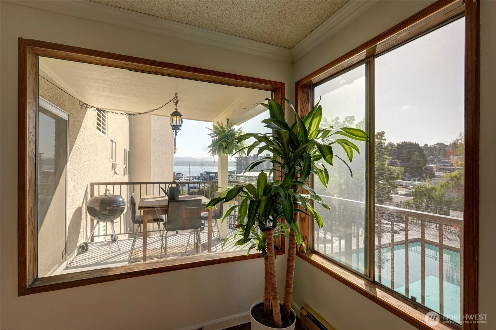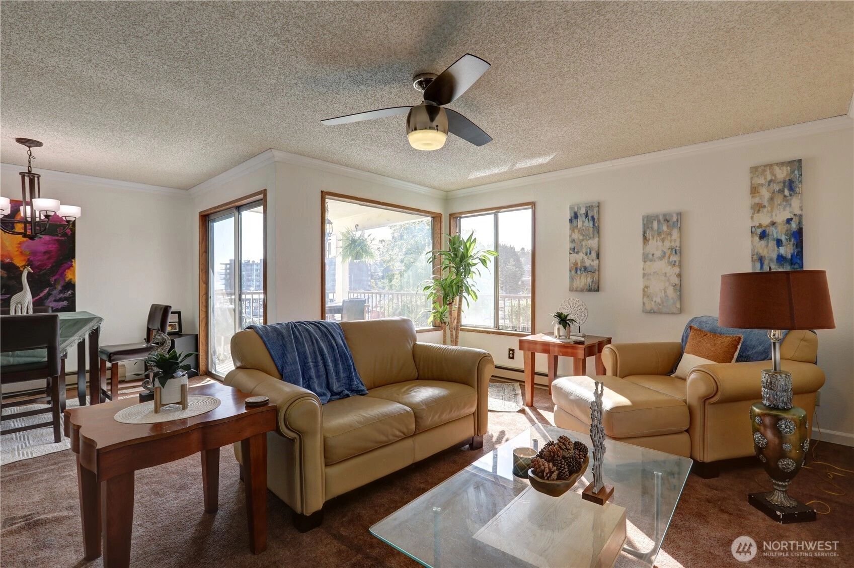 Enjoy stunning waterfront views from this spacious 2-bedroom, 1.75-bath unit! Features include an open-concept living and dining area with a covered balcony. The kitchen boasts updated appliances refrigerator, dishwasher, microwave, and cooktop range. The primary suite offers a ¾ bath.The secured building provides two assigned garage parking spaces, plus access to a clubhouse, outdoor pool, sauna, showers, and a large event/rec room. Conveniently located near the Light Rail, transit, shopping, and community amenities. Dues cover sewer, water, garbage, and all amenities. All furniture is included at no cost to the buyer! The deductions for the amenities are listed in the supplement. Dogs and cats allowed! 2 parking lots #47 and #60.