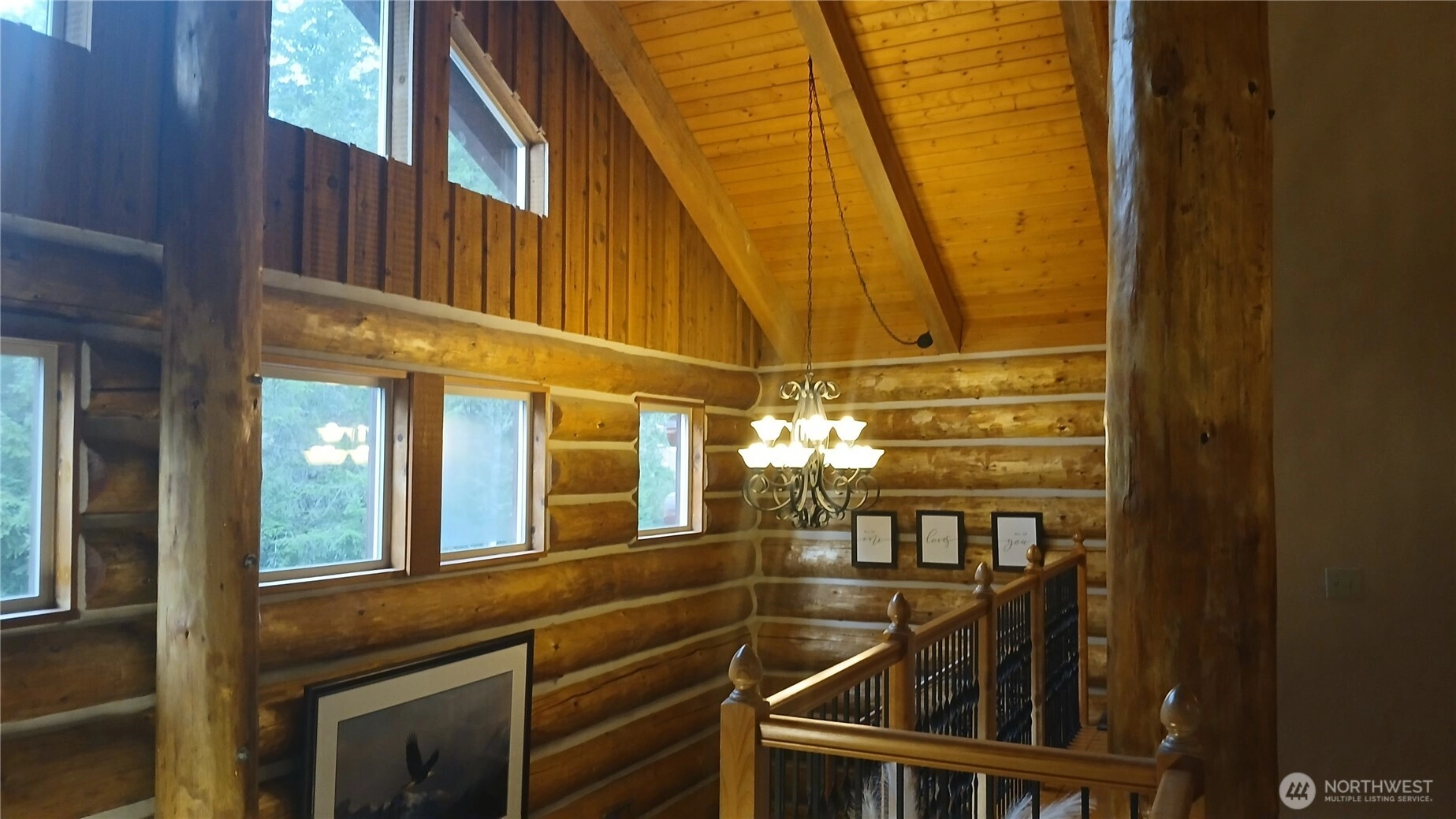 welcome to your ultimate 4.97 Acres escape: An exquisite custom-log home that perfectly marries rustic elegance with modern convenience, nestled within a private, serene, evergreen landscape. This stunning 2250 sq ft log home boasts soaring ceilings, exposed beams, and a grand, open concept design complete with a wet bar and flexible living spaces ( 3 bedroom + office + bonus room) This home features 3 full bathrooms, including a masters ensuite. Outdoor enthusiasts will love the unparalleled privacy, the secluded private trail and the daily wildlife viewing opportunities from the patio and windows. This 5 car garage with 14 ft door to enter a RV, private drive makes this a turn key sanctuary where luxury meets superior utility.
