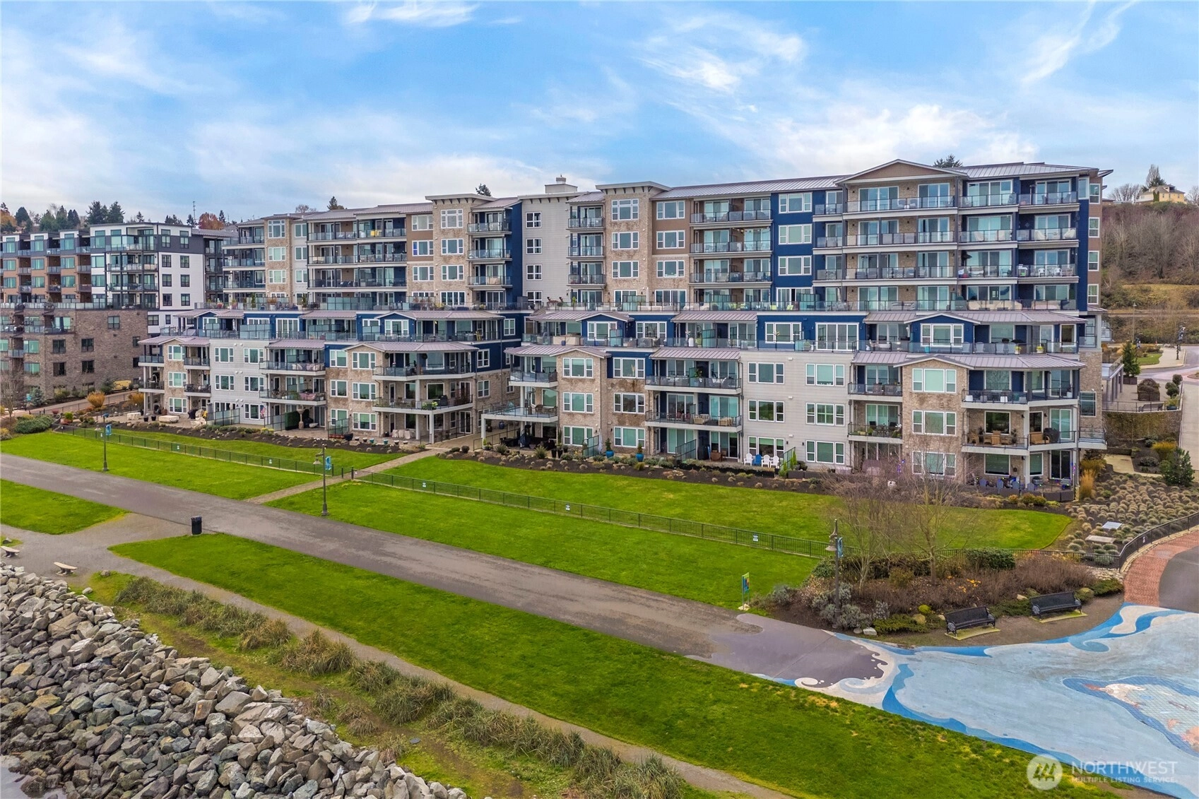 Live at the heart of Tacoma’s premier waterfront destination in this bright 2-bed, 1.75-bath condo in Point Ruston’s desirable Baker Building. Just steps from parks, dining, shopping, entertainment, and miles of waterfront trails, this home offers an unmatched active lifestyle. Natural light fills the open living area with a cozy gas fireplace, while the modern kitchen features quartz counters and high-end appliances. The primary suite includes a private balcony, WIC, and stylish 3/4 bath, while the secondary bedroom offers its own WIC. In-unit laundry, secure garage parking, and dedicated storage add convenience. Community amenities include a meeting room, courtyard, putting green, and Bocce Ball—waterfront living at its best.
