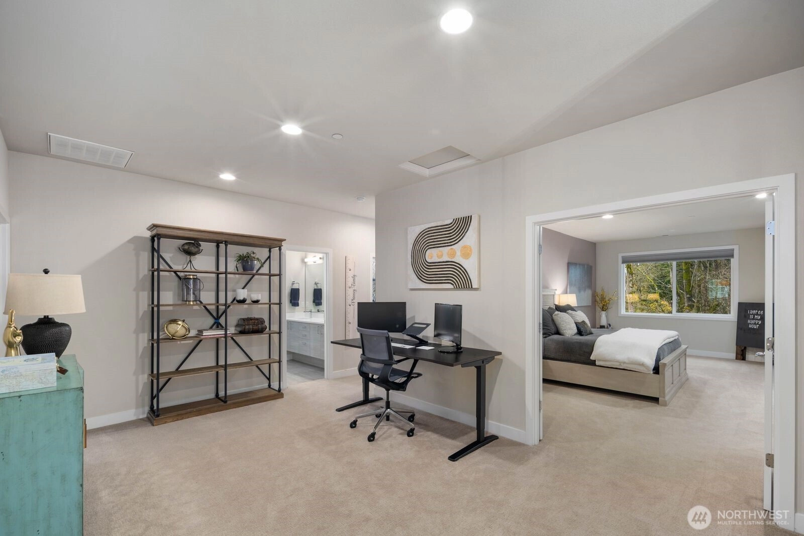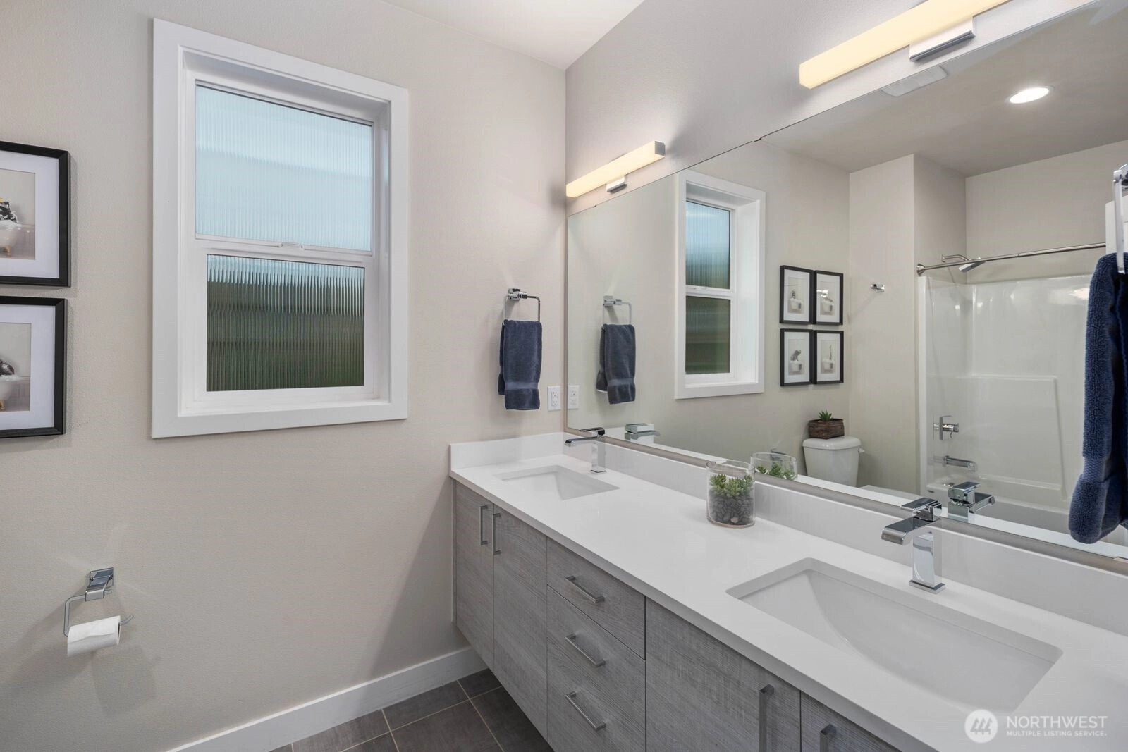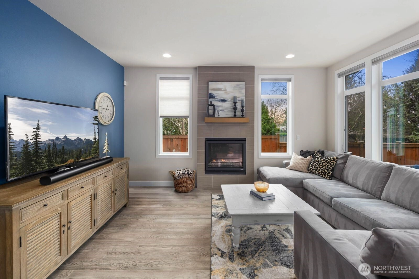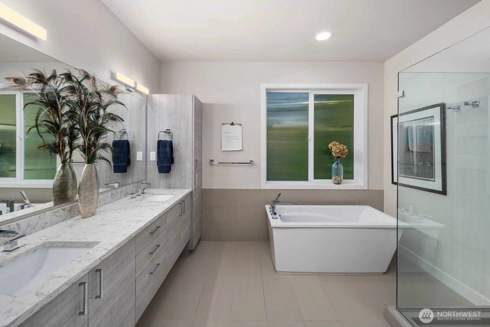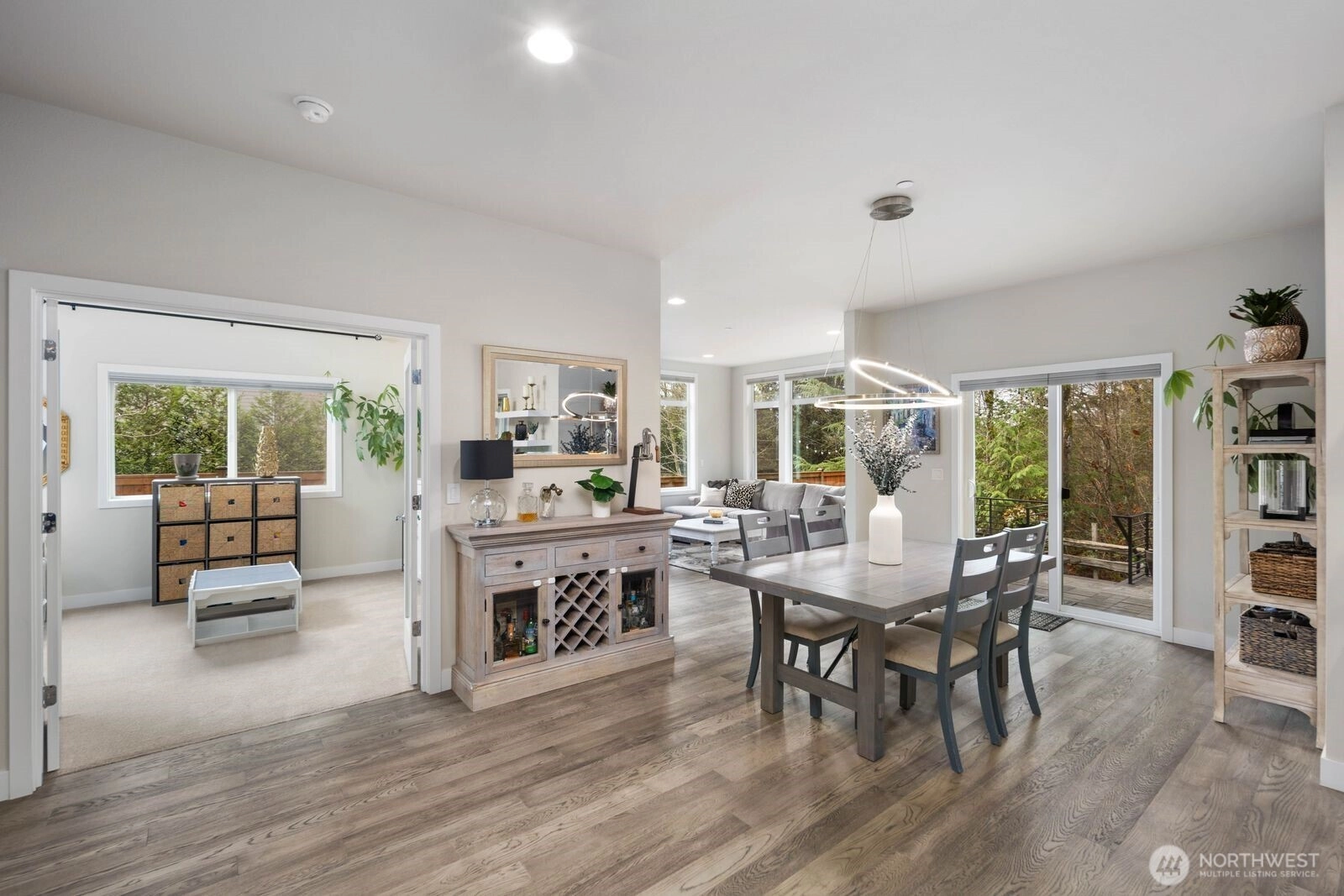 Experience this stunning modern 5 bedroom home in the luxury enclave of Hidden Meadows. Upon entry you'll find a light & bright interior w/ 20 ft ceilings, a statement staircase w/ sleek metal railings & gorgeous hardwoods. The sprawling chef's kitchen includes quartz counters, a high-end Bertazonni gas range, double ovens & wine fridge. A desirable main-floor bdrm w/ full bath adds convenience & flexibility. The upper level offers 4 additional bdrms + 3 baths. The highly-functional low-maintenance backyard backs up to a protected green belt & features a $50K tiered patio w/ modern metal railings & turf. Premium blinds, A/C, 220 outlet for EV Charging. Coveted Northshore schools including Bothell High. Just mins to Downtown Bothell & I-405