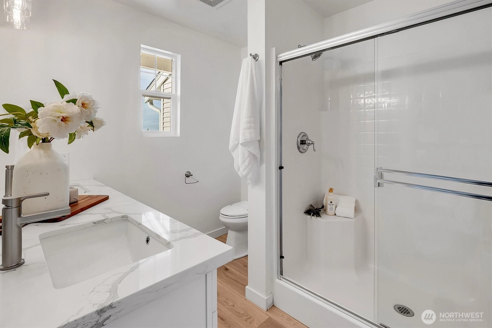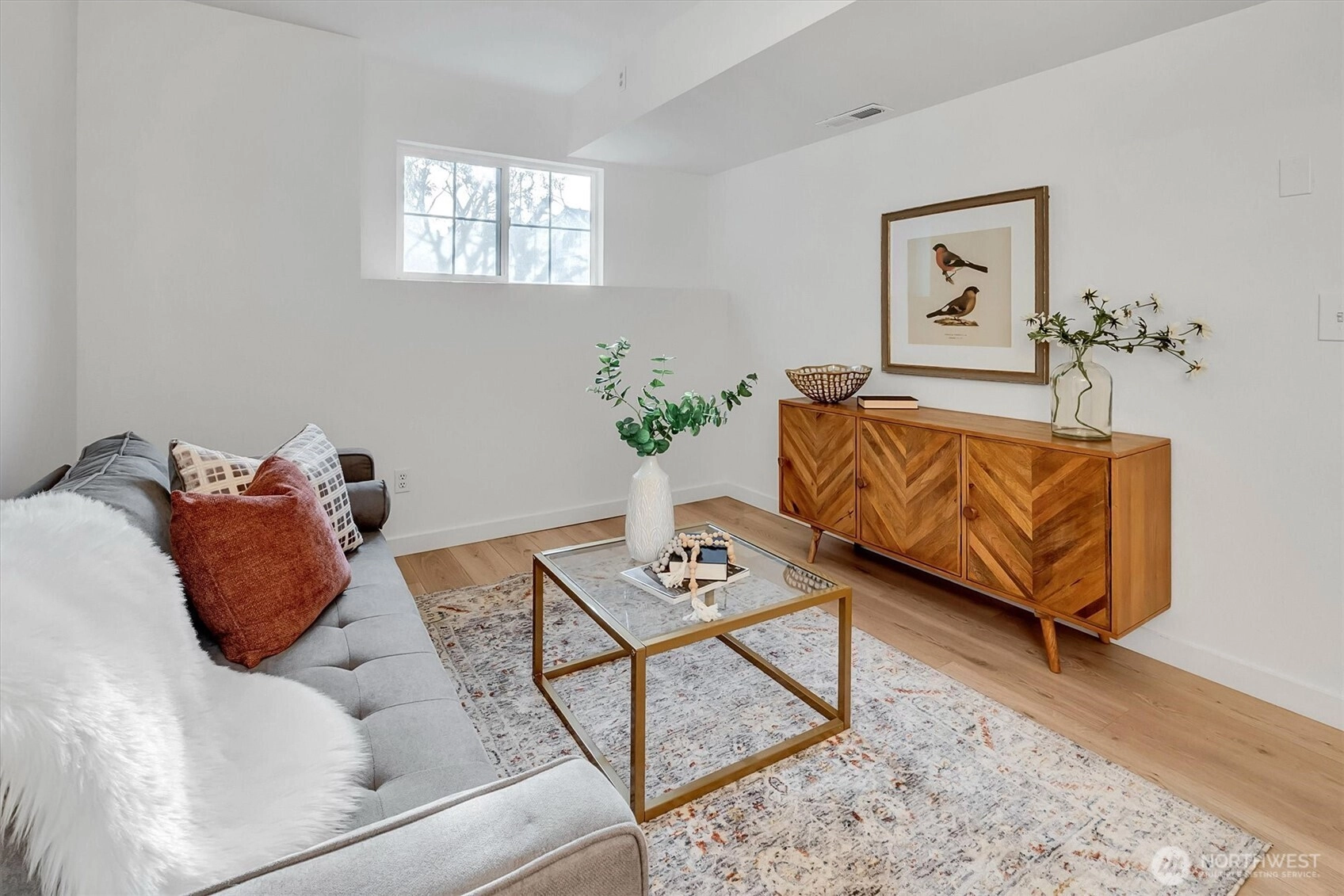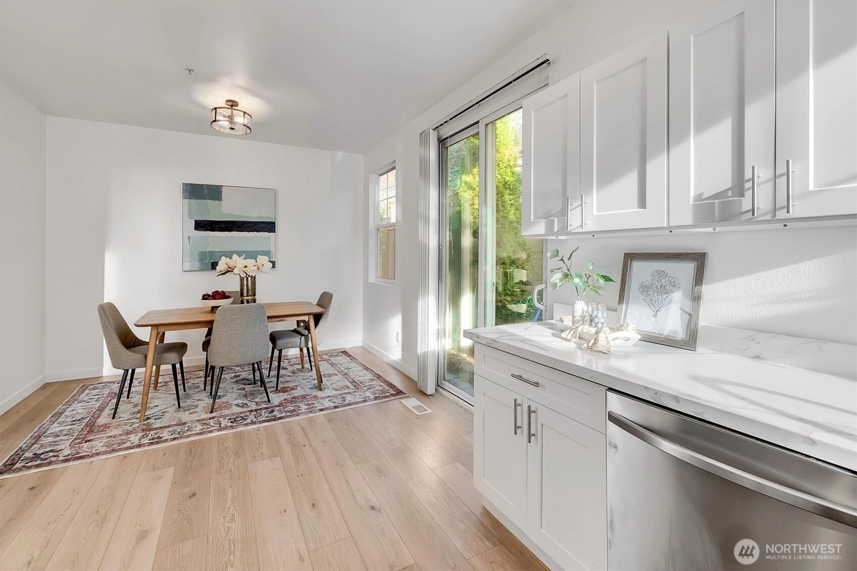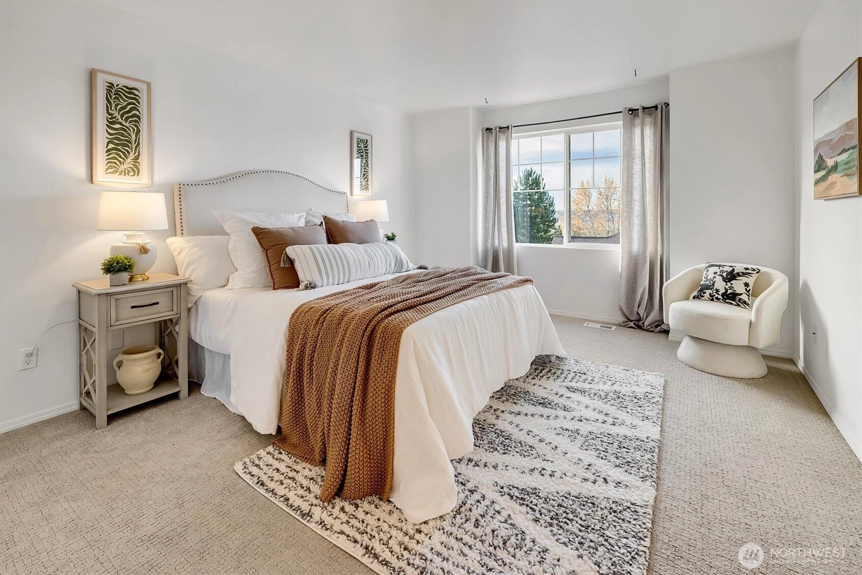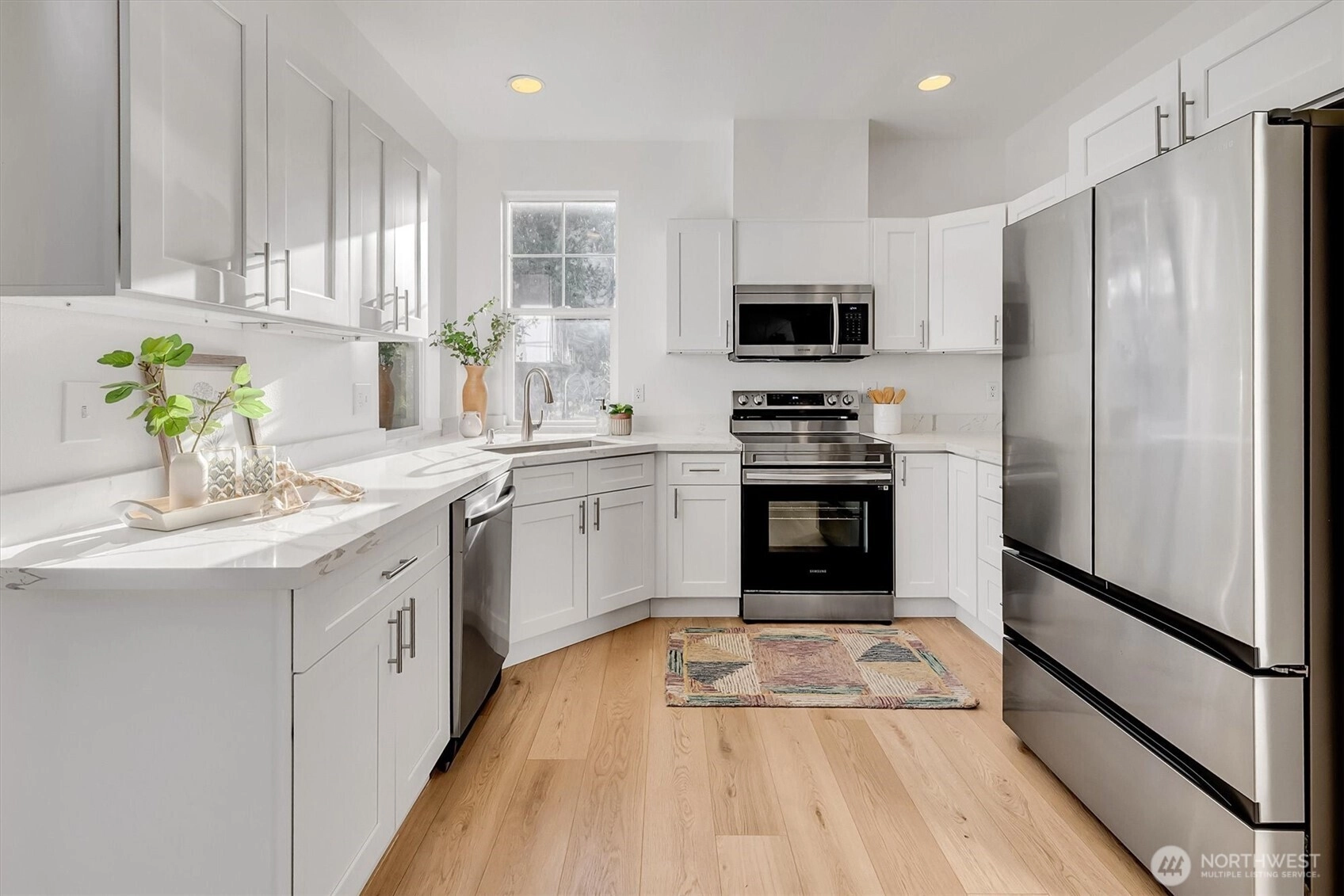Welcome to this beautifully updated end-unit townhome with stylish finishes thru-out! The refreshed kitchen shines w/new white shaker cabinets & sleek quartz countertops, a sunny nook that opens to a private patio. The bright living room features newly installed LVP flooring, a cozy gas fireplace & expansive windows that frame stunning sunset views. 3 bedrooms in upstairs including a generous primary suite w/a walk-in closet & an updated bathroom. A refreshed full guest bath. Don't miss the spacious bonus room in basement! A gas HVAC, a side-by-side 2 car garage w/extra storage. Located in a quiet, convenient community close to shopping, I-405, Valley Medical Center, The Landing & Sea-Tac Airport. Enjoy nearby guest parking. No rental cap!