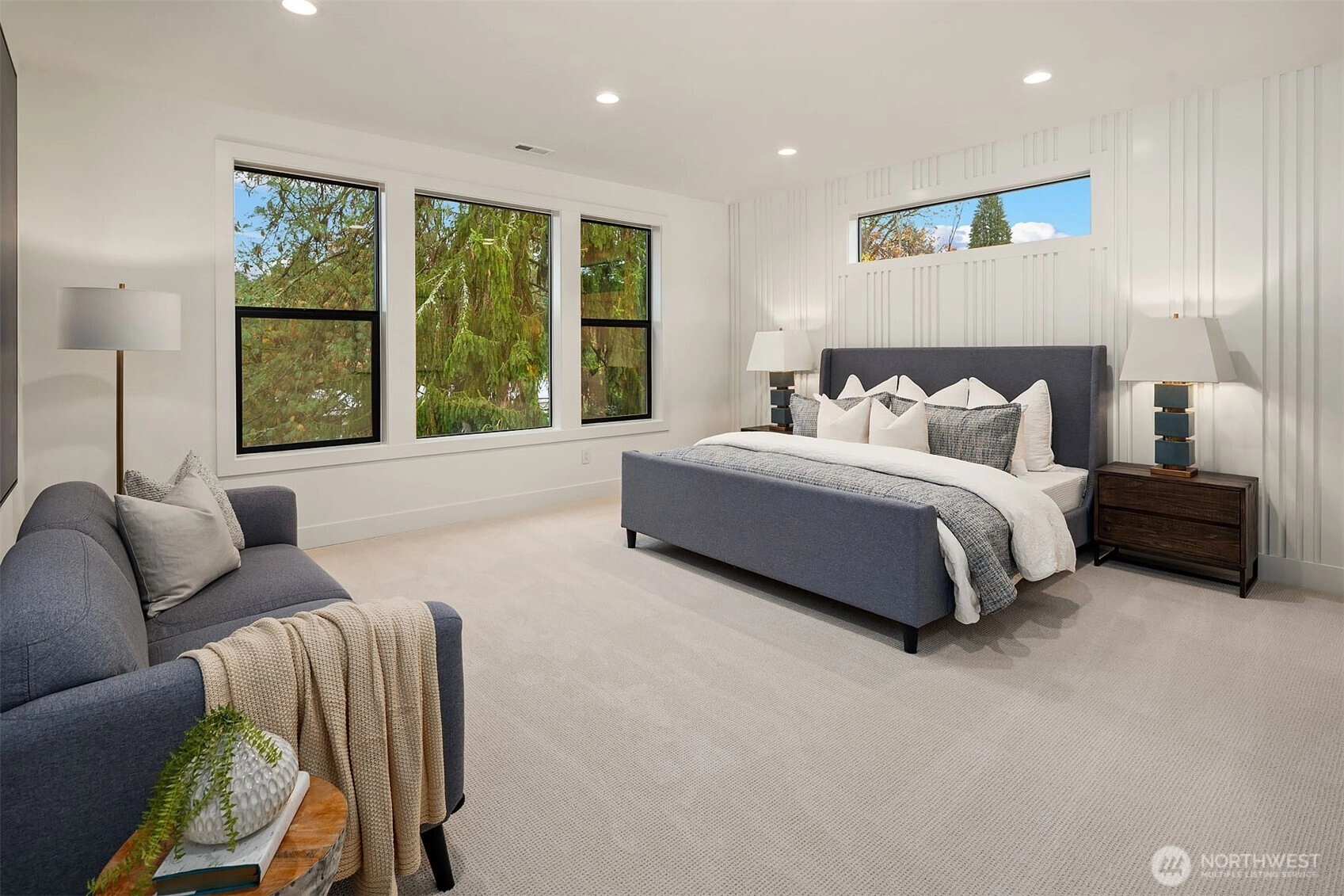 MN Custom Homes releases a transitional design in the convenient Lake Hills neighborhood. Spacious, two story great room. Chef's kitchen with high-end appliances. Covered outdoor living area, ideal for entertaining fun. Primary suite retreat with heated bathroom floors & stunning 5-piece bath. Private main floor en suite. Dedicated study. Smart Home and green features throughout, including solar panels. Just blocks from nationally ranked Bellevue Schools. Located just minutes from MSFT, shopping, and parks. Phantom Lake Elementary School.