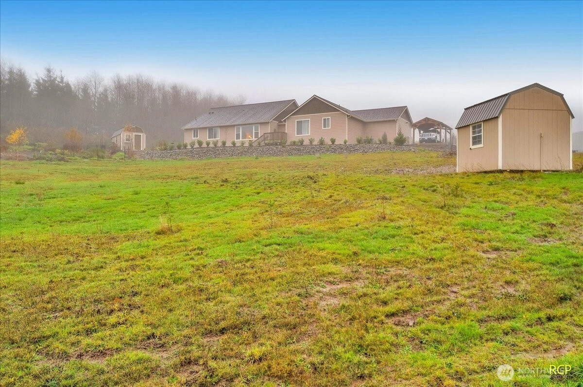 Experience refined living in this 2022 custom home, set on 2 impeccably landscaped acres with full drainage and sweeping territorial views. A vaulted great room framed by oversized Milgard windows & engineered hardwoods anchors the home, offering a stunning first impression. The kitchen includes quartz countertops & walk-in pantry. All stainless appliances + washer/dryer are included. Two private primary suites each feature a walk-in closet and full bath, providing exceptional comfort. An office with fiber-optic internet supports modern work needs. Outside, enjoy a 3-car garage, carport, RV space, fruit trees, curated gardens, vegetable beds, and 50+ cypress trees that add beauty and seclusion. A true turnkey luxury retreat in Kalama.