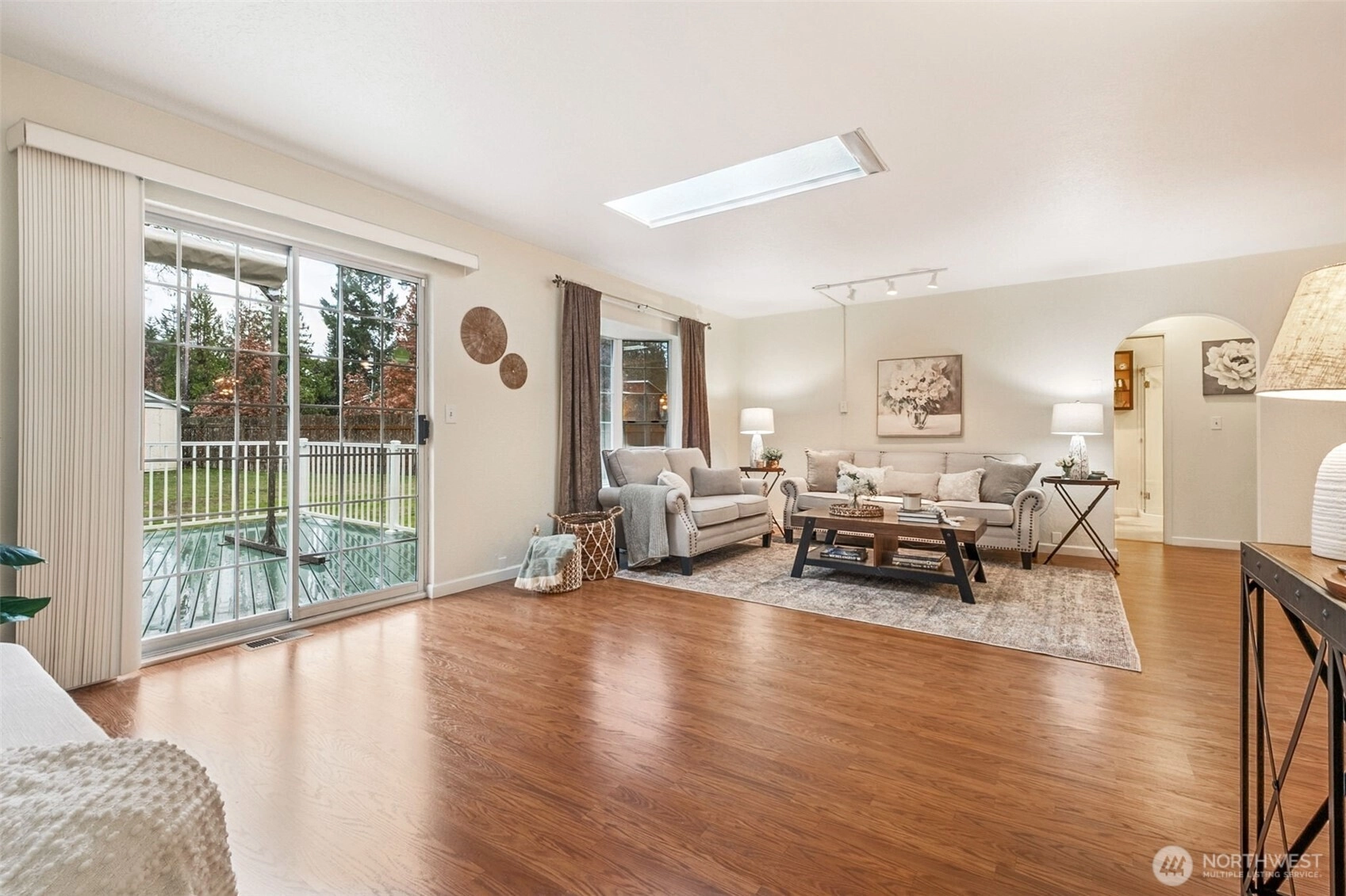 Owners’ meticulous care and maintenance, both interior and exterior, is evident throughout this charming single-level home. A bright, welcoming floorplan with skylights and bay windows fills the living spaces with natural light. Thoughtful updates, including new AC in 2023, gorgeous hickory cabinetry in the kitchen, new laminate flooring, and beautifully remodeled bathrooms, add to the comfort and appeal. The expansive fenced yard is ideal for entertaining, gardening, or play, with an oversized deck and established garden beds featuring asparagus and raspberries. A detached garage plus abundant driveway parking provide versatility. Close to schools, shopping, light rail, and SeaTac, this home offers convenience, style, and room to thrive.