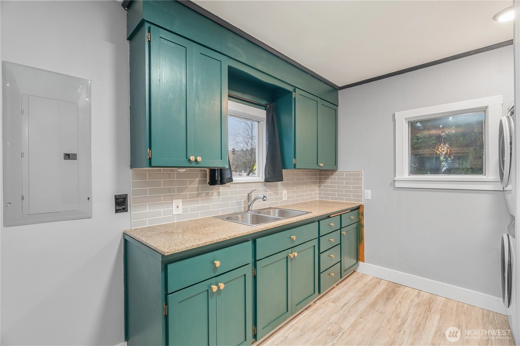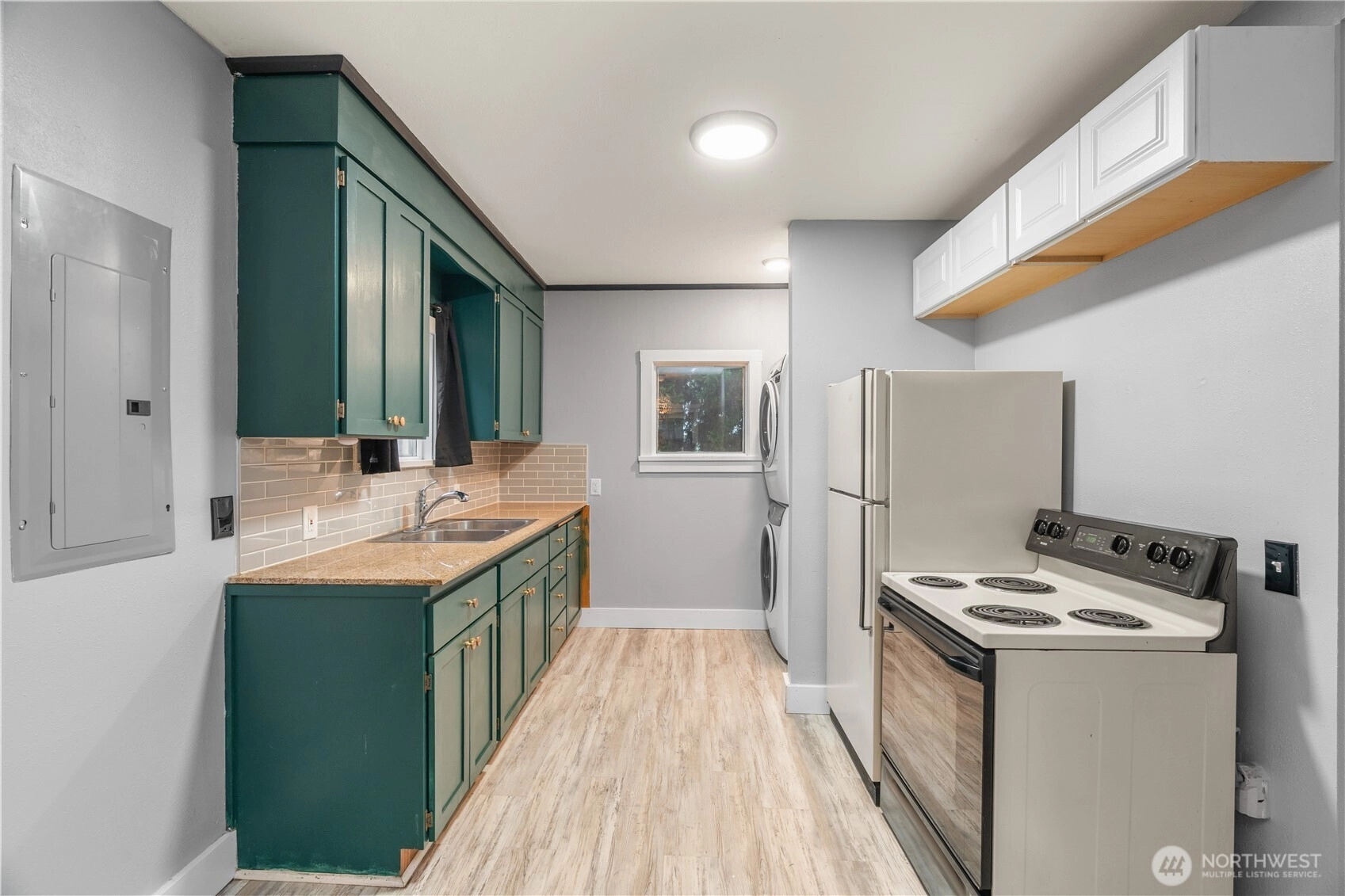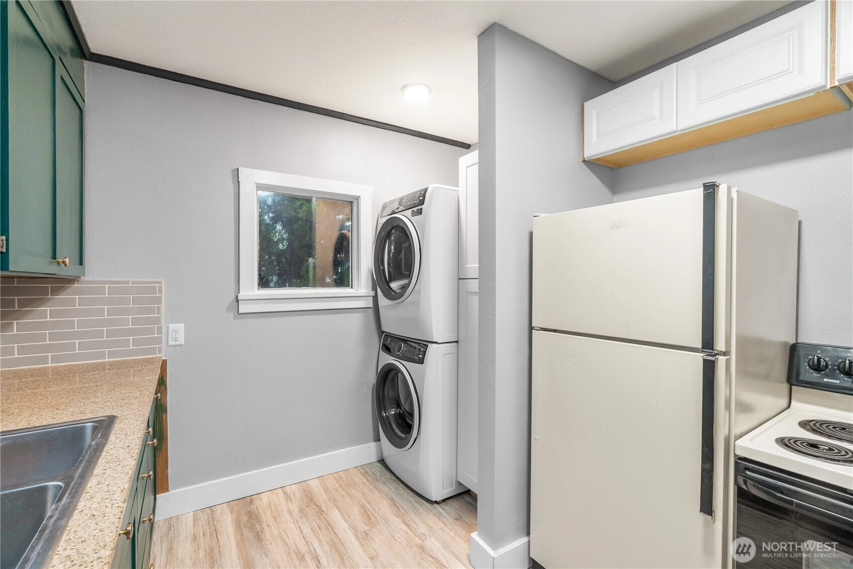 Looking for charm with updates already done? This adorable 2 bed, 1 bath Hoquiam cottage is full of personality, with unique dormer ceilings upstairs and clever storage throughout. Recently refreshed with new paint inside and out, LPV flooring, modern fixtures, new doors, trim, and a new electrical panel. Kitchen comes equipped with stove, fridge, and a brand-new stackable washer/dryer. The fenced backyard is perfect for pets or gardening, and there's a detached 200 sq ft one-car garage for storage or parking. Nearly all deferred maintenance is complete, and the roof is approx. 10 years old. Just minutes from downtown, this gem is move-in ready!