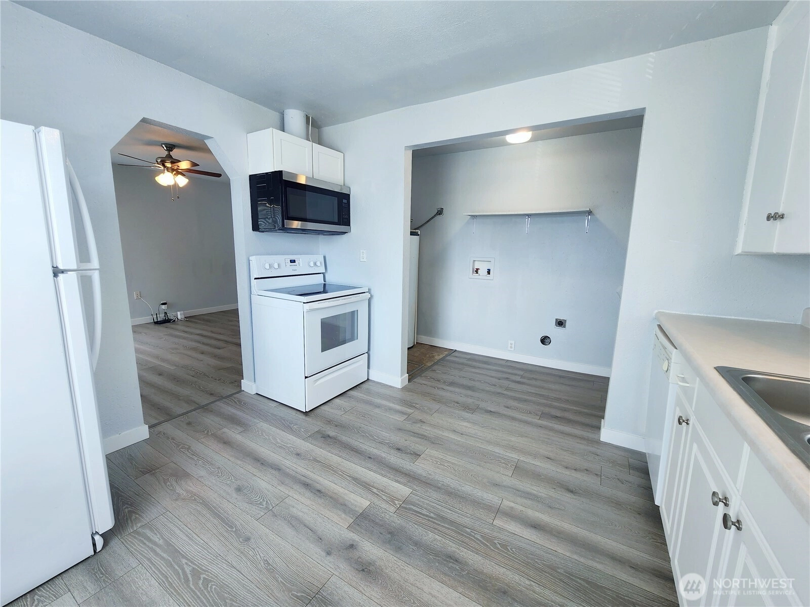 Just a block from the lake and only a few short blocks to Peninsula Park and boat launch, this 2-bedroom, 1-bath home is perfectly located for lake life! Recently renovated with dozens of upgrades, including fresh interior and exterior paint, a refinished bathroom, new luxury vinyl plank flooring throughout, and a new roof. The new fully cedar fenced yard includes underground sprinklers and a 8x10 shed for extra storage. Freshly added gravel offers added parking, and ample room for multiple vehicles, RV, or boat parking. At the end of a dead in street, enjoy the quiet without the through traffic. Move-in ready!