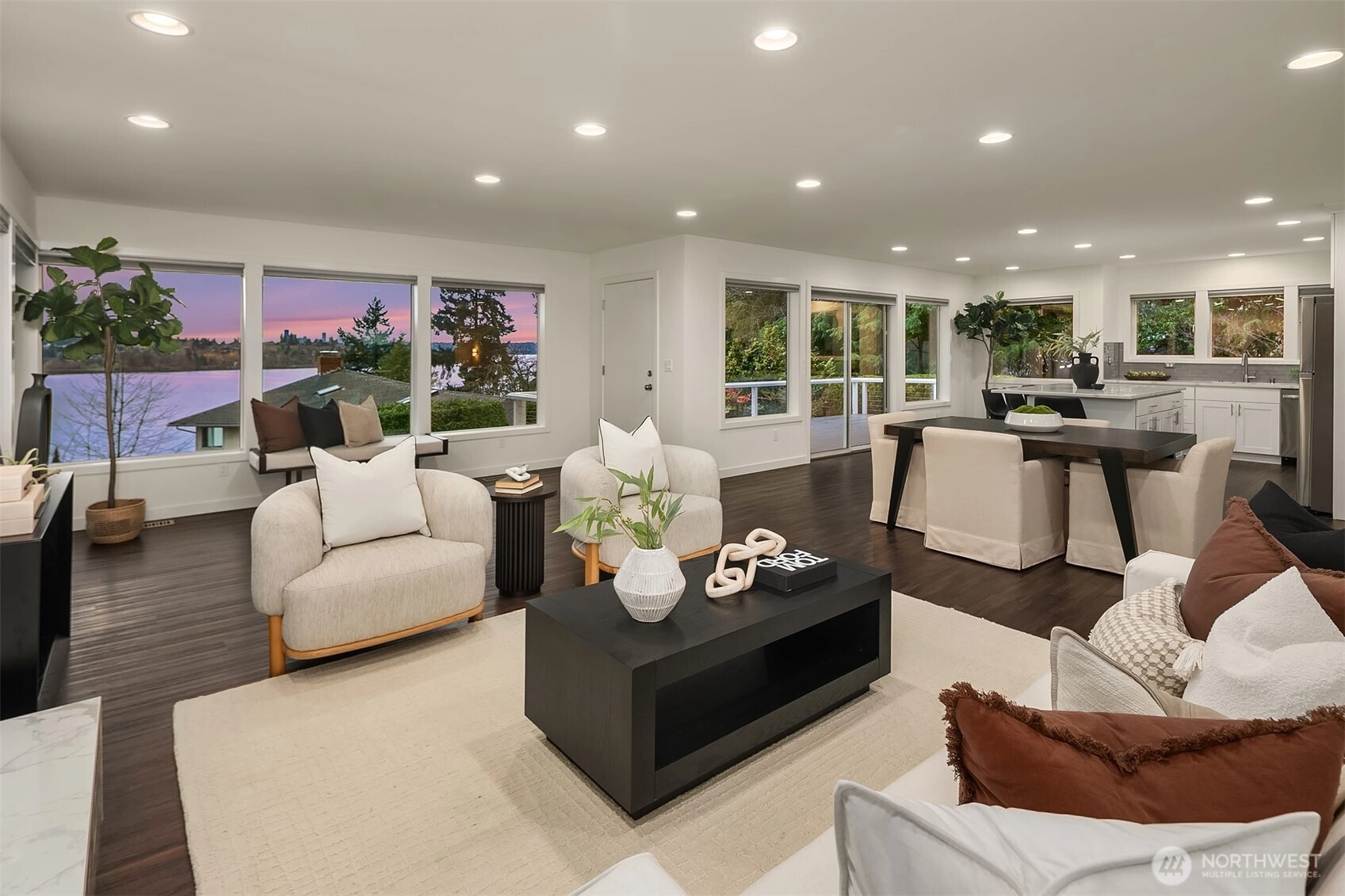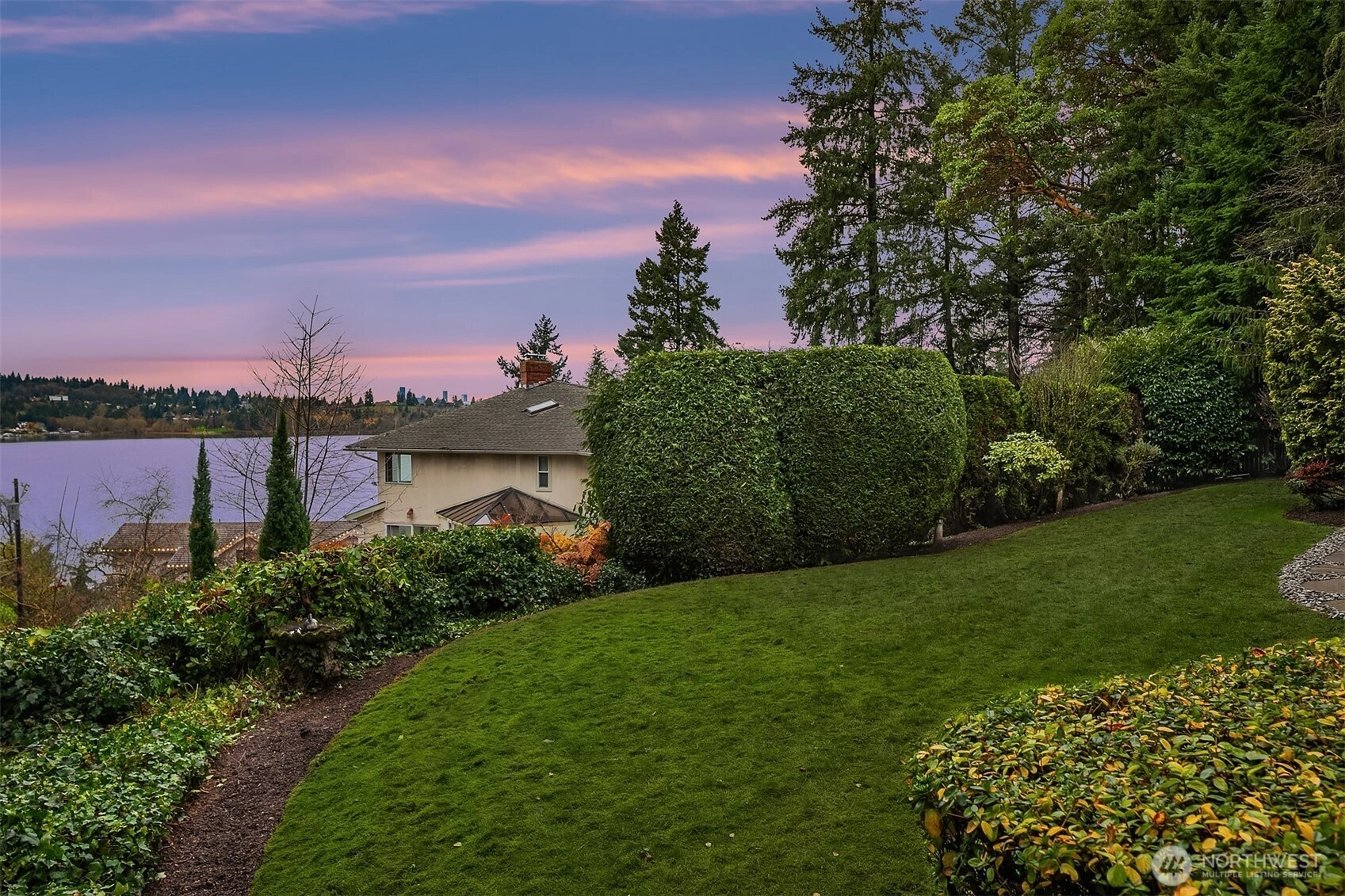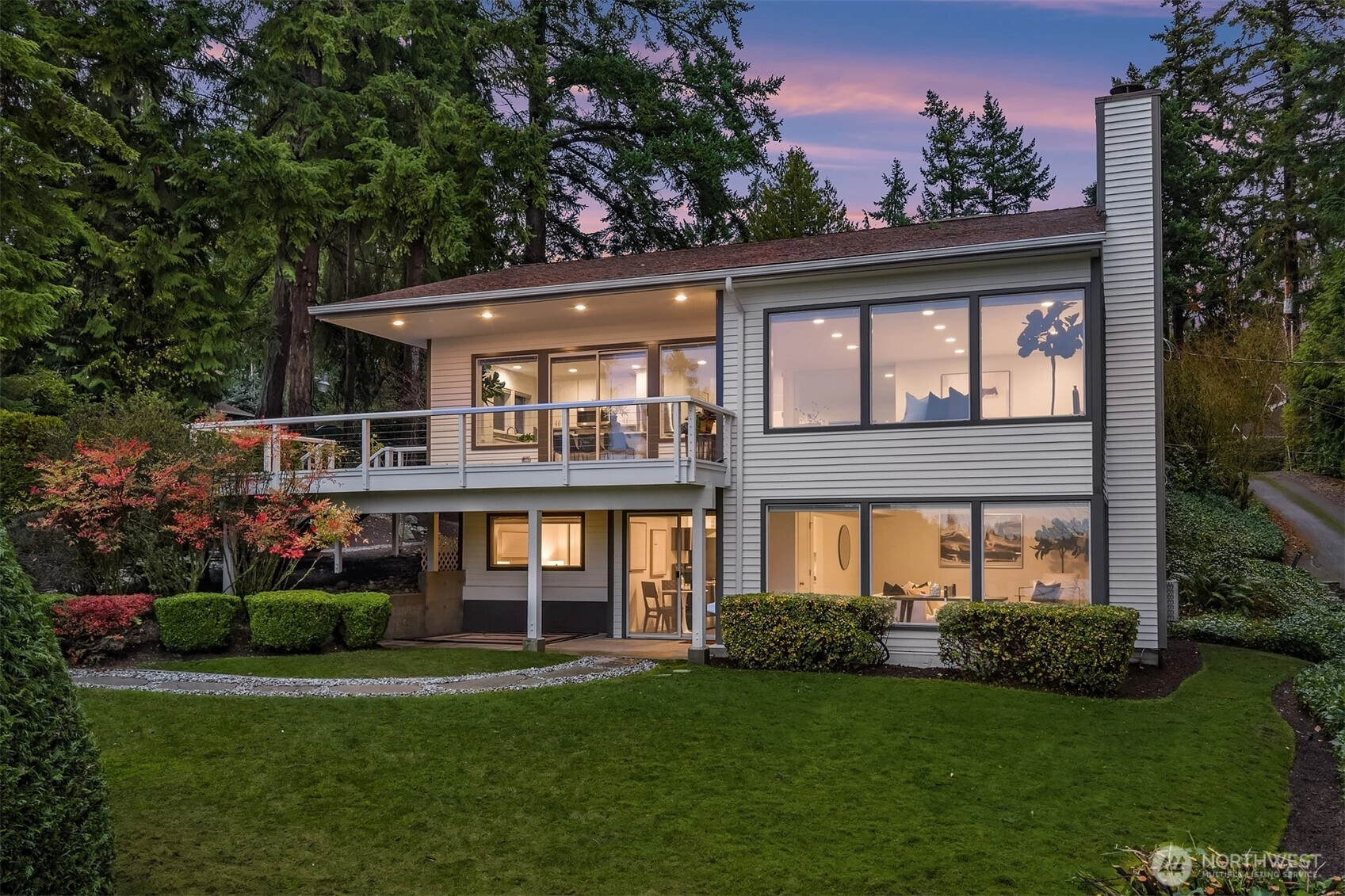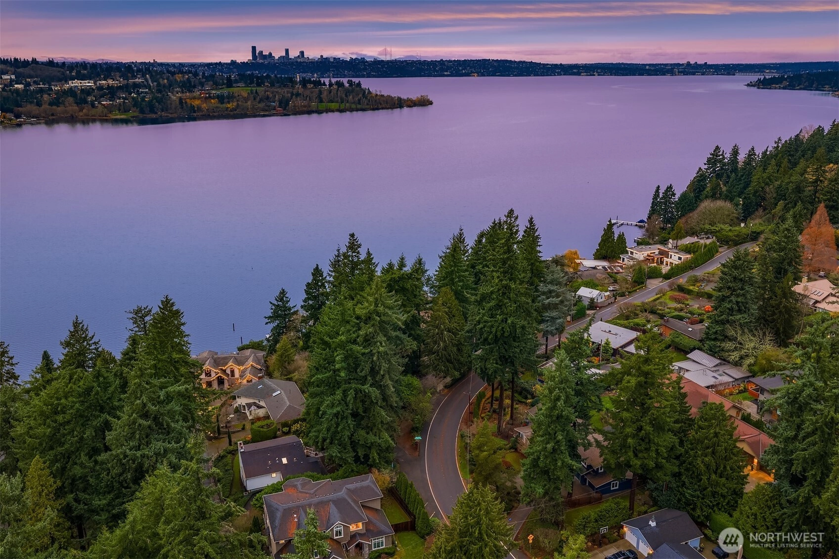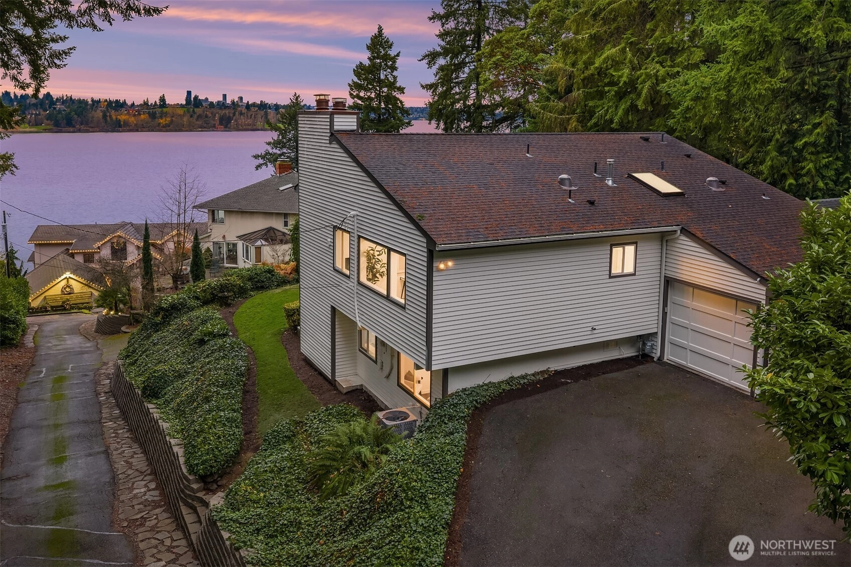 Perched above Lake Washington in the heart of Enatai, this completely renovated home captures mesmerizing lake views from both levels. A 2021 studs-out remodel introduced all-new systems, new roof, new plumbing and electric, cosmetic upgrades, + more, blending modern luxury with lasting comfort. Take in year round Lake, Mountain and city views from both floors, spacious deck and expansive backyard while enjoying seamless flow for everyday living and entertaining. The versatile lower level features a private entrance and second kitchen ideal for multi-generational living, guests, or added flexibility. Rare to find two driveways and a "drive through" garage adds flexible access. Move-in ready, top rated Bellevue schools and easy commutes