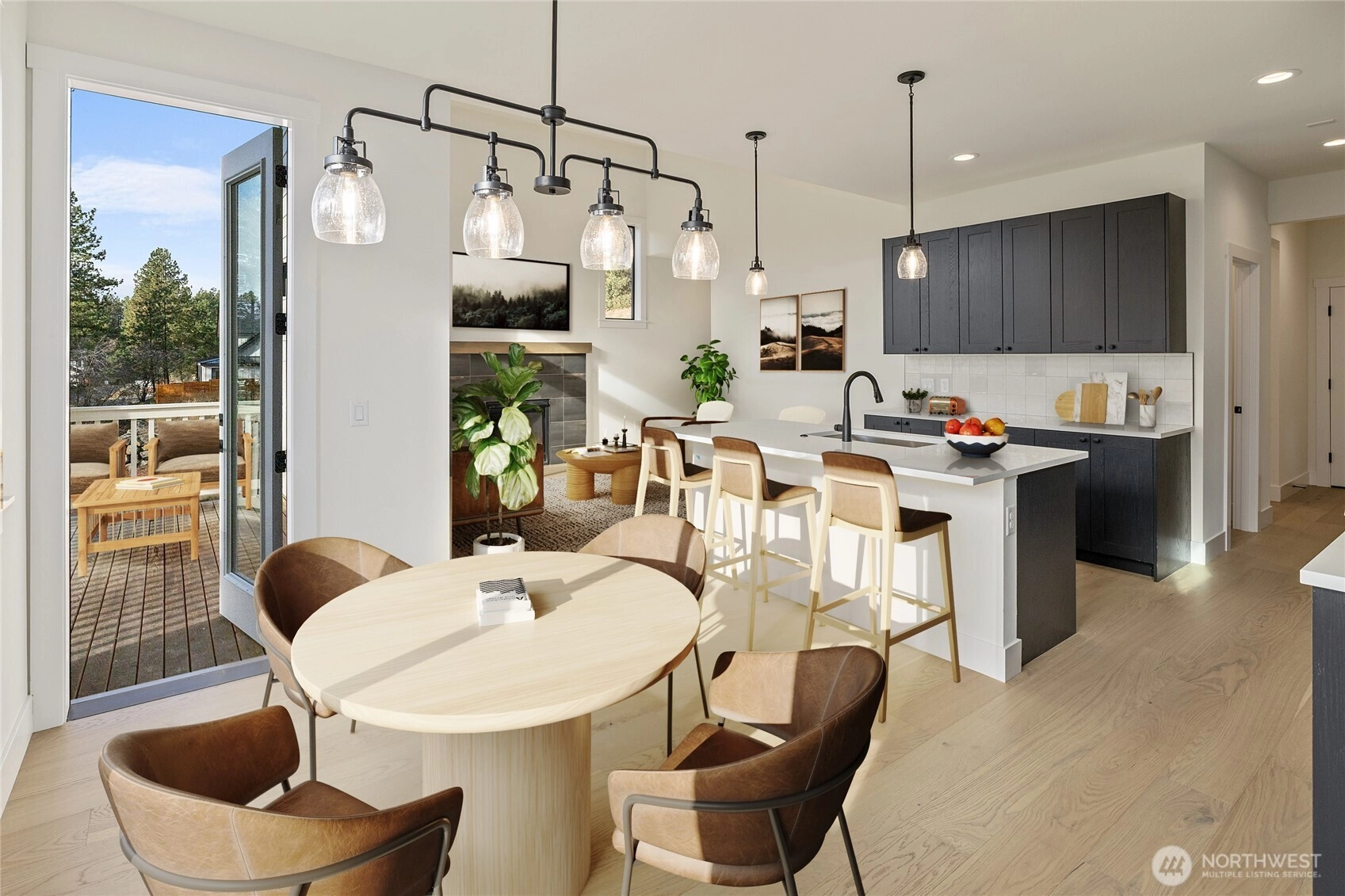 This modern-day new-build home by Trailside Homes sits on a quiet cul-de-sac at Ederra, offering southern exposure, mountain views, and protected open space to the north. The Naches design showcases an open-concept great room with soaring ceilings and elevated custom finishes curated for modern mountain living. The lower level includes a private bed room, ¾ bath, rec room and a generous unfinished flex space suited for a future wine cellar, artist studio, or gym. Enjoy direct access to 200+ acres of trails along with a fenced backyard featuring lawn and irrigation. Walk to downtown Cle Elum with convenient proximity to Roslyn and Suncadia.