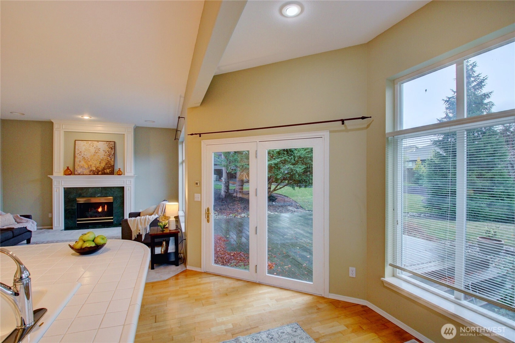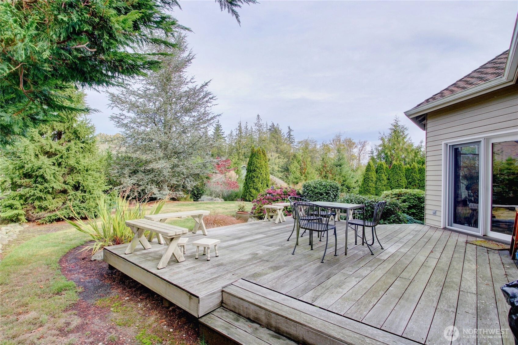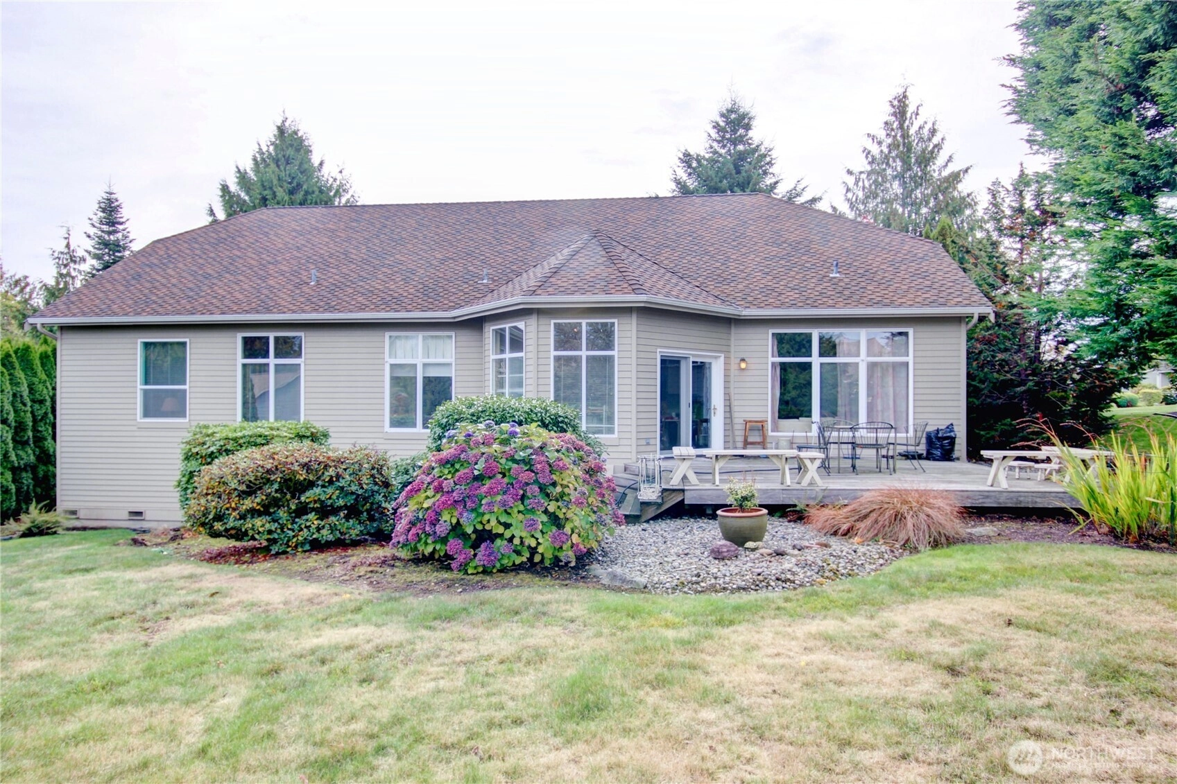 Spacious 3-bedroom, 2-bath custom home with 2,335 sq. ft. of comfort! Wonderfully tall ceilings let in a lot of sunlight. Enjoy a gourmet kitchen with ceramic tile countertops and a multitude of cabinetry, walk in pantry; formal living and dining rooms, and a welcoming family room with fireplace, overlooking the backyard. The primary suite offers a spa-like bath with jetted tub and separate shower and of course double sinks. Utility room off three car garage offers a deep sink. 3/10 acre yard has a large deck perfect for outdoor living. Incredible landscaping.