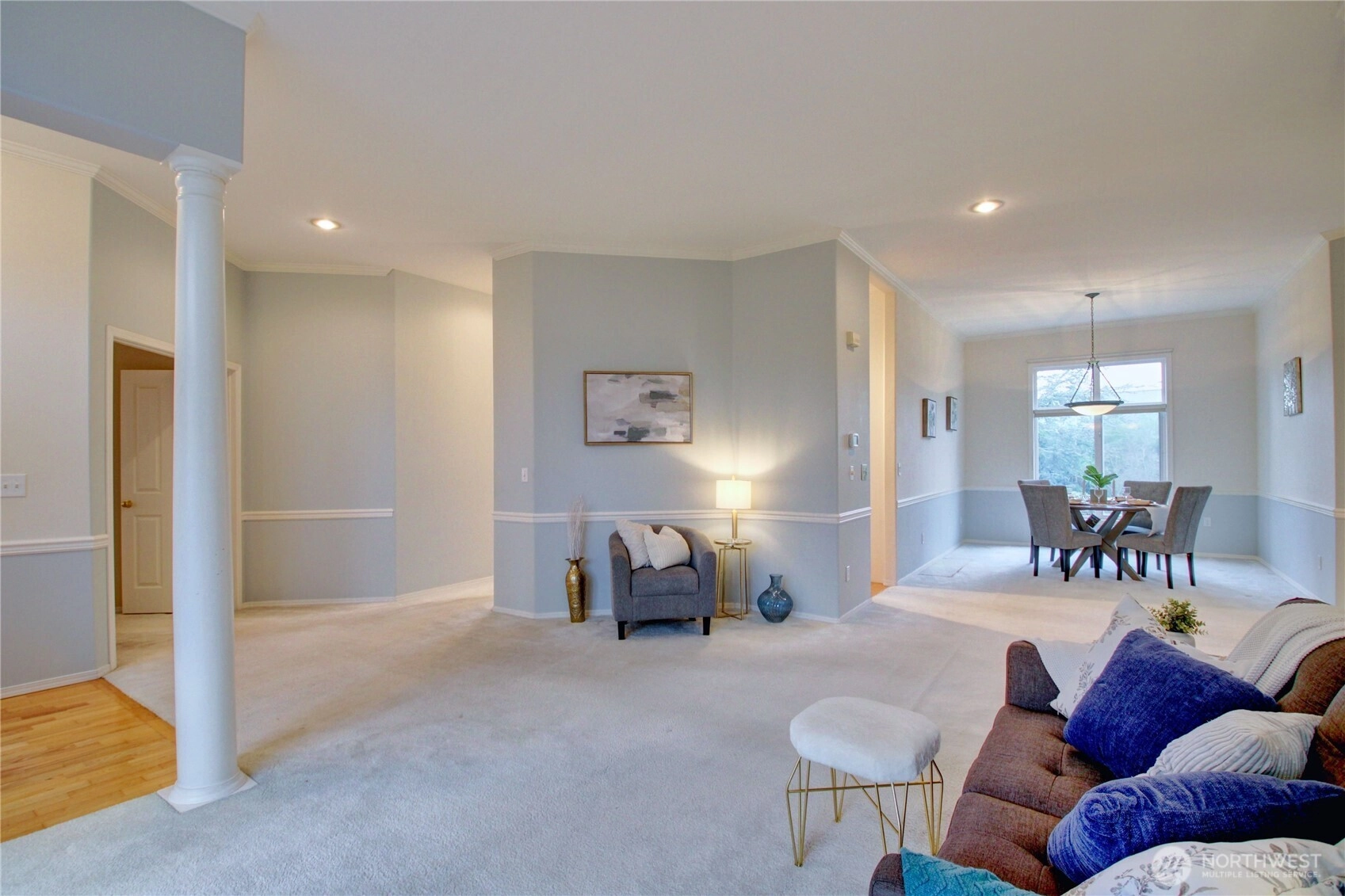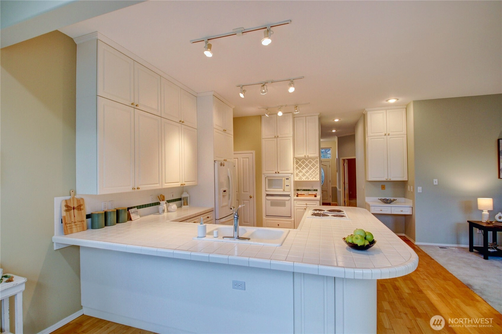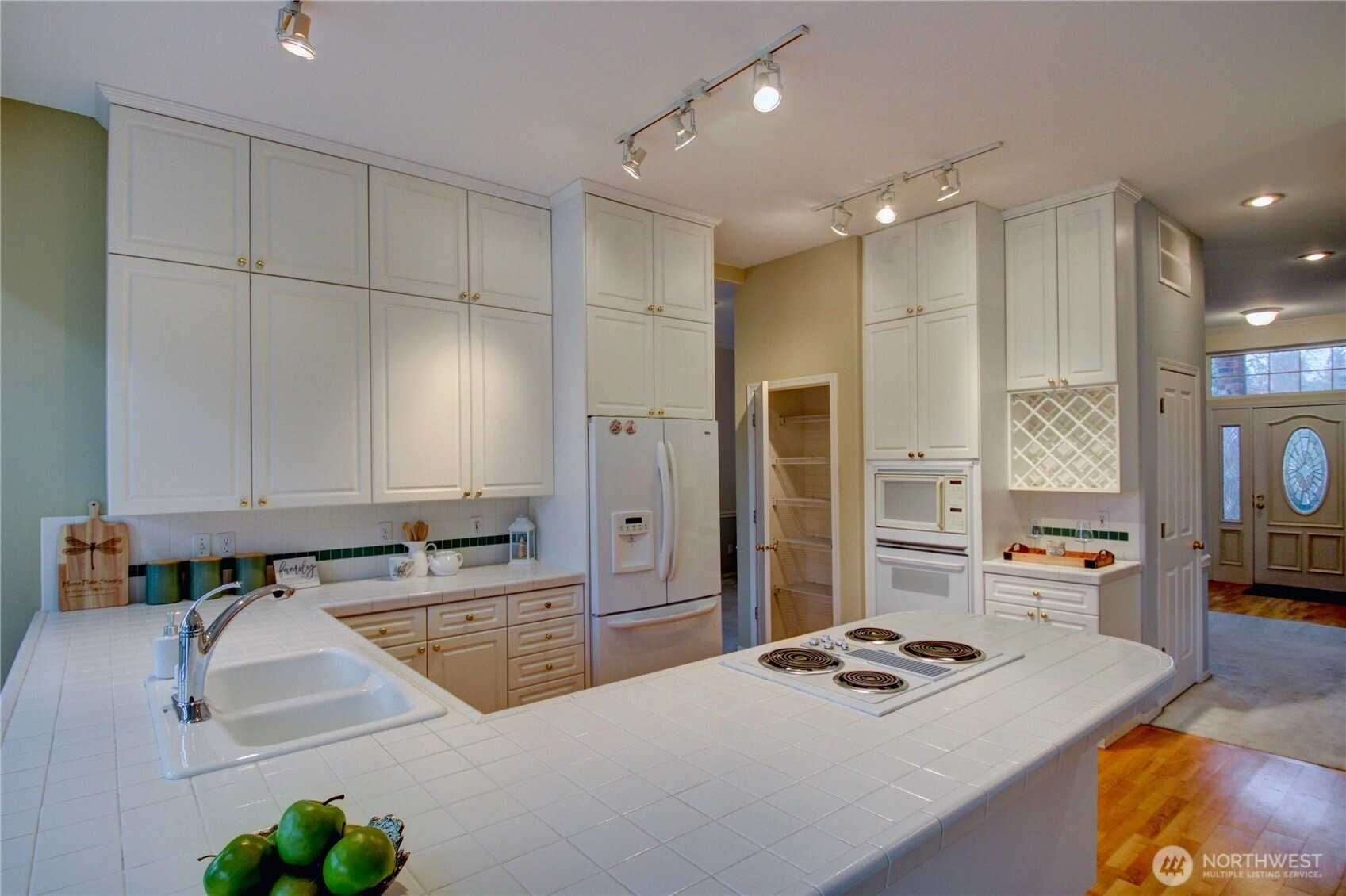Spacious 3-bedroom, 2-bath custom home with 2,335 sq. ft. of comfort! Wonderfully tall ceilings let in a lot of sunlight. Enjoy a gourmet kitchen with ceramic tile countertops and a multitude of cabinetry, walk in pantry; formal living and dining rooms, and a welcoming family room with fireplace, overlooking the backyard. The primary suite offers a spa-like bath with jetted tub and separate shower and of course double sinks. Utility room off three car garage offers a deep sink. 3/10 acre yard has a large deck perfect for outdoor living. Incredible landscaping.