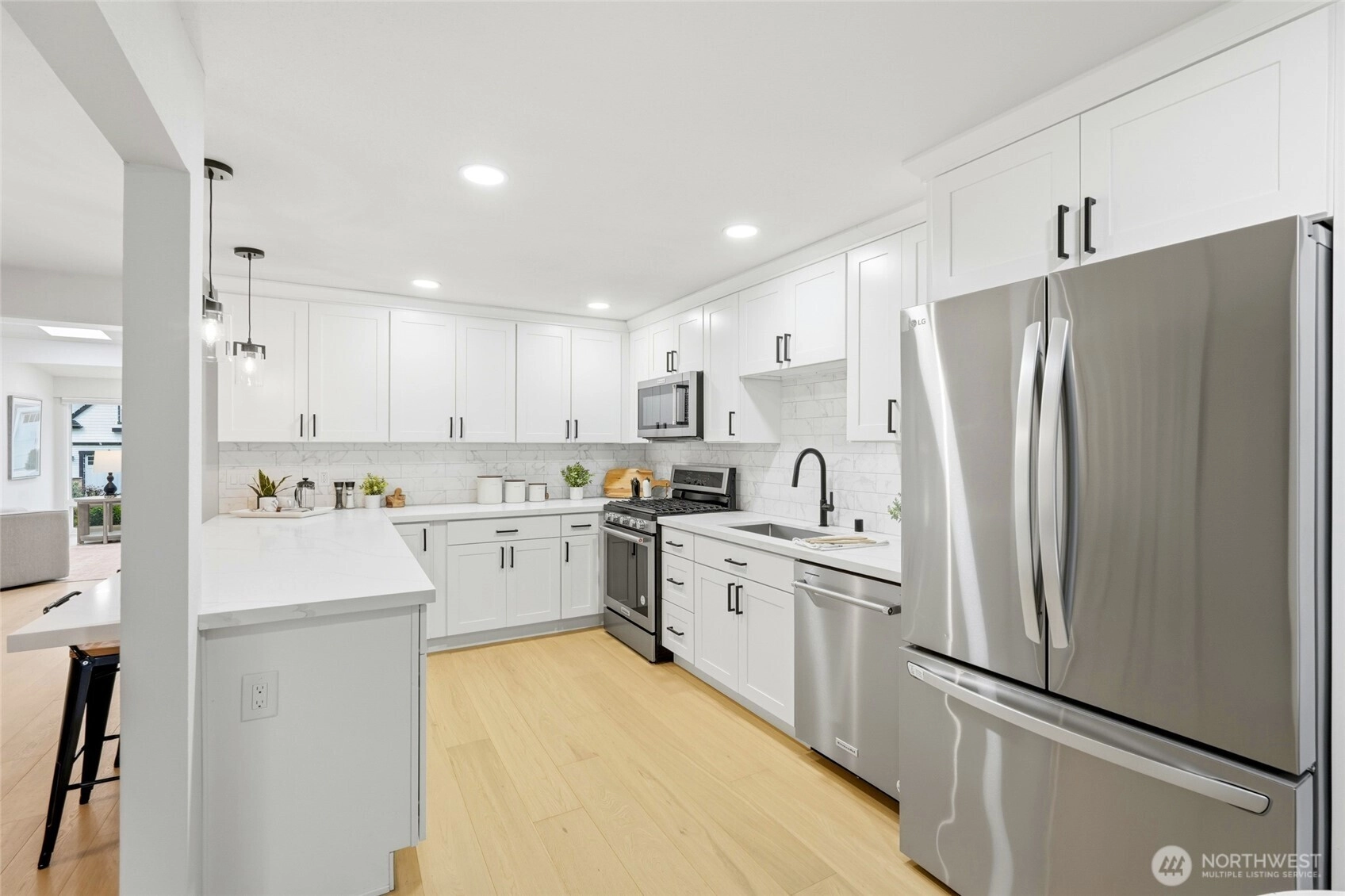 Located in the coveted Enatai neighborhood & served by top-rated West Bellevue schools, this beautifully refreshed home sits on a quiet cul-de-sac in an exceptional location. Beautiful interiors feature all-new flooring throughout, including hardwoods plus a cozy gas fireplace. The spacious kitchen offers ample cabinetry and an inviting eating space for everyday living. The floor plan spans over 2,600 sq ft with 4 bedrooms and 2.25 baths. Set on a generous 9,800 sq ft lot with a private rear yard, plus a 2-car detached garage and outbuilding, this home is a rare opportunity in one of Bellevue’s most desirable communities. Enjoy nearby parks, shopping, dining, and effortless access to downtown Bellevue, Seattle, and major routes. Must See!