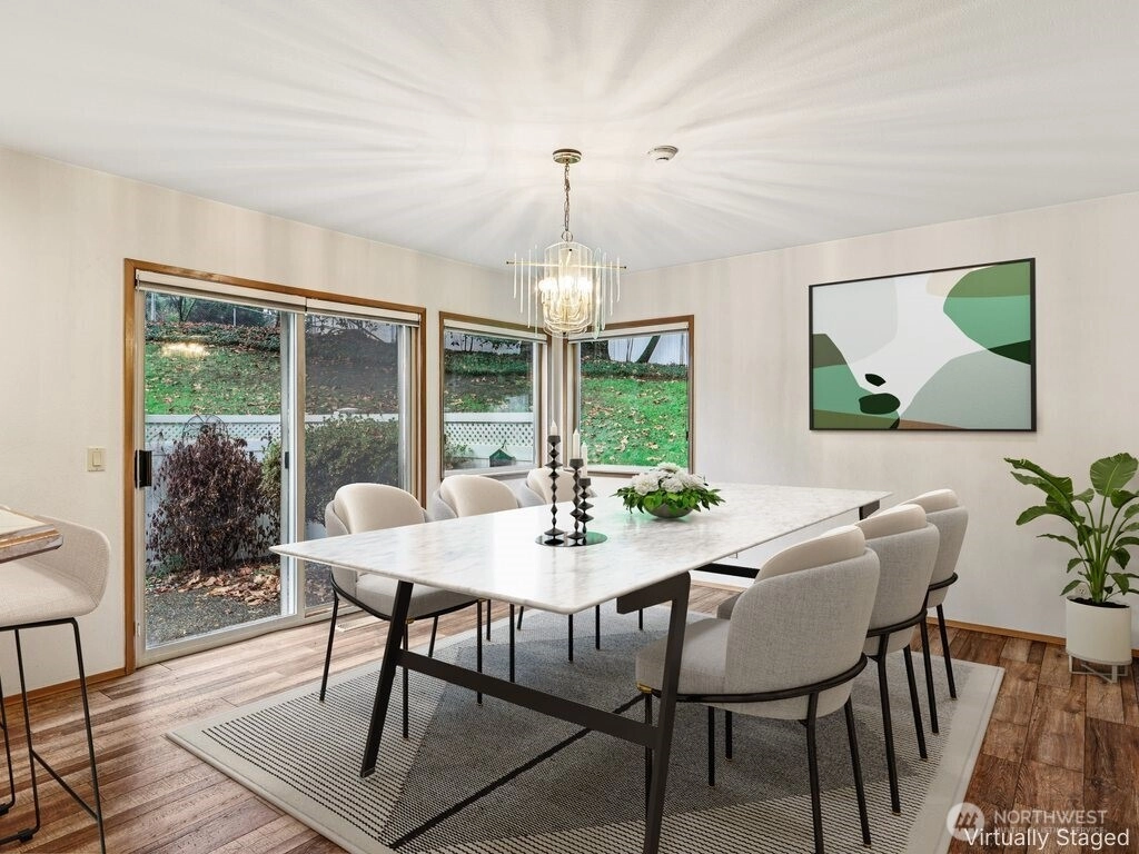 Welcome to Walnut Hills in the heart of Redmond. This end unit Townhome feels like a Single Family Home with its spacious layout, 2 large bedrooms, multiple living areas, and attached 2-car garage. Upon entry, you'll fall in love with the spacious kitchen with breakfast bar that opens up to a family room and right around the corner from a formal dining room. Upstairs, you'll have an oversized living room with gas fireplace and tons of light from the huge window. Walk-in closet allows for lots of storage. Primary bedroom with attached En-Suite and second bedroom has their own additional main bath. Laundry room upstairs. All appliances stay. Prime eastside location and access to everything!
