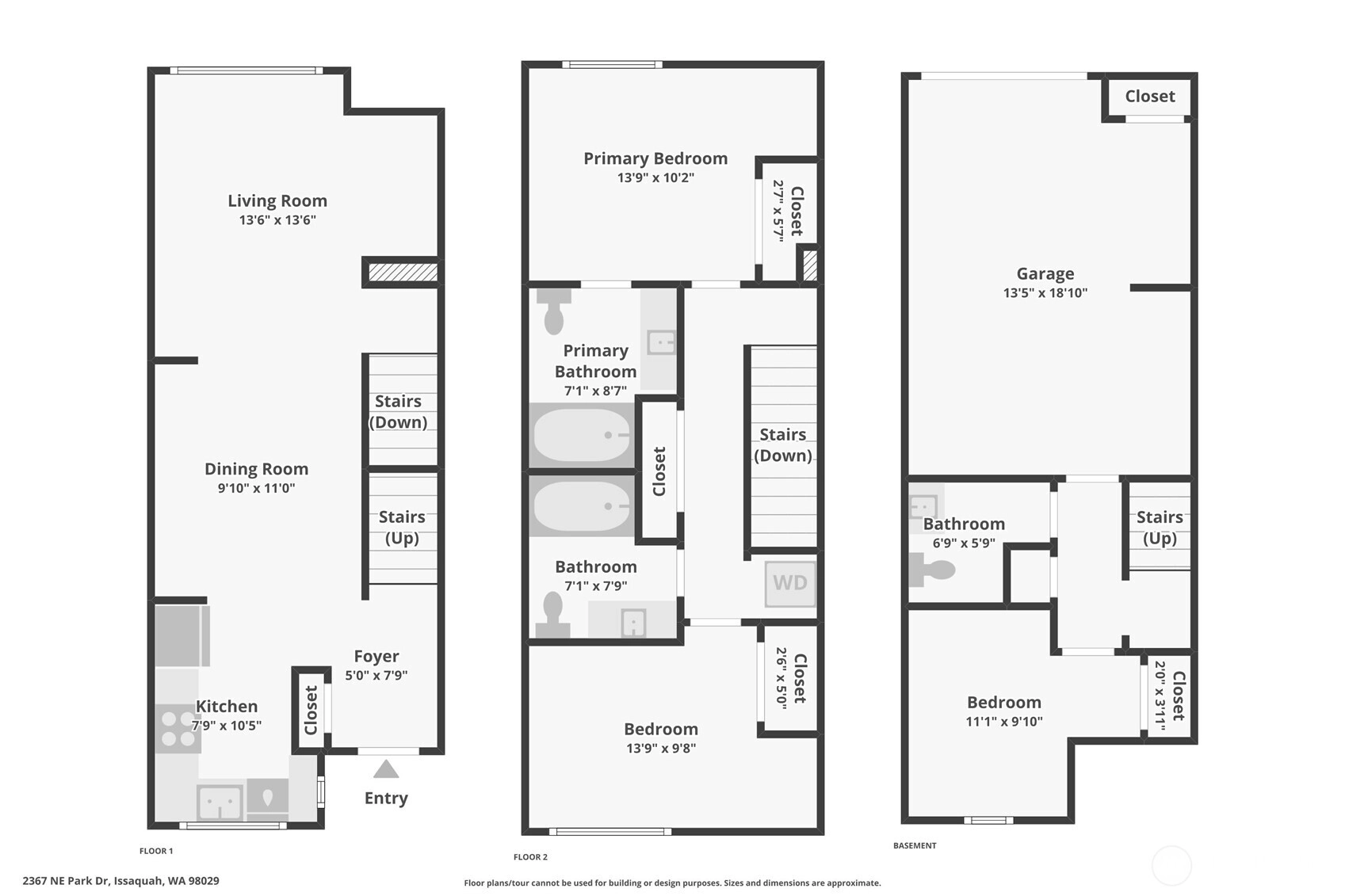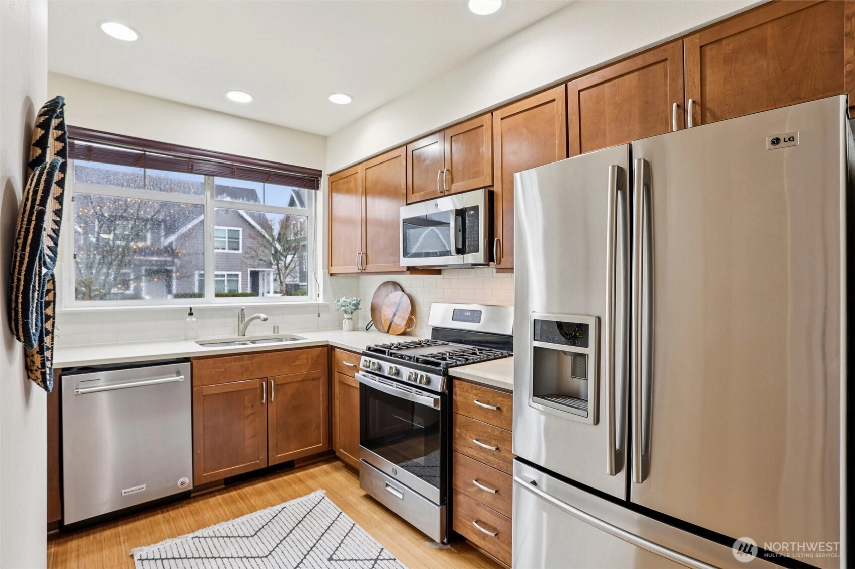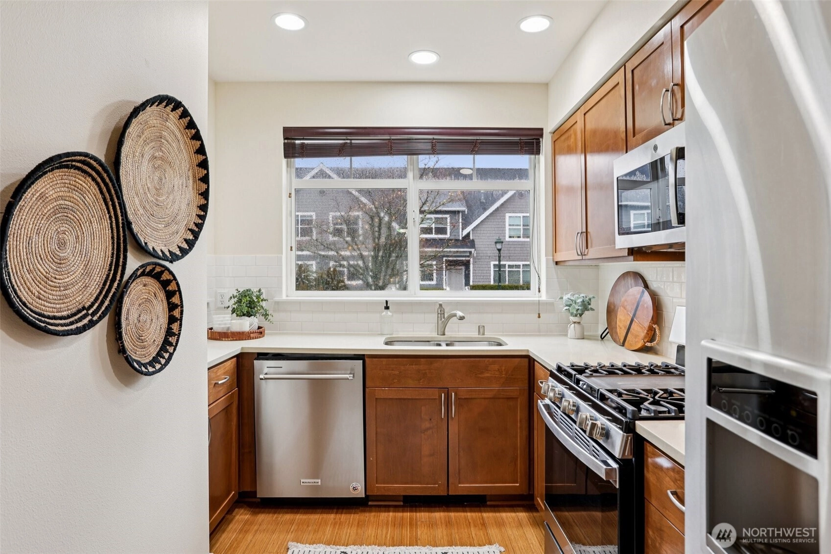 Mountain view home in the Issaquah Highlands, conveniently located near Central Park, Grand Ridge Elementary, trails, tennis courts, and neighborhood restaurants. Features include 3 bedrooms, 2.5 baths, bamboo flooring, antique tile in upper and lower bathrooms, and white quartz countertops throughout. Open main level with bright kitchen and adjacent living area with gas fireplace. Kitchen includes dishwasher, range/oven, and microwave. Mountain views from the living room and owner’s suite. Attached garage, low HOA dues, and low-maintenance living. Well maintained and move-in ready.