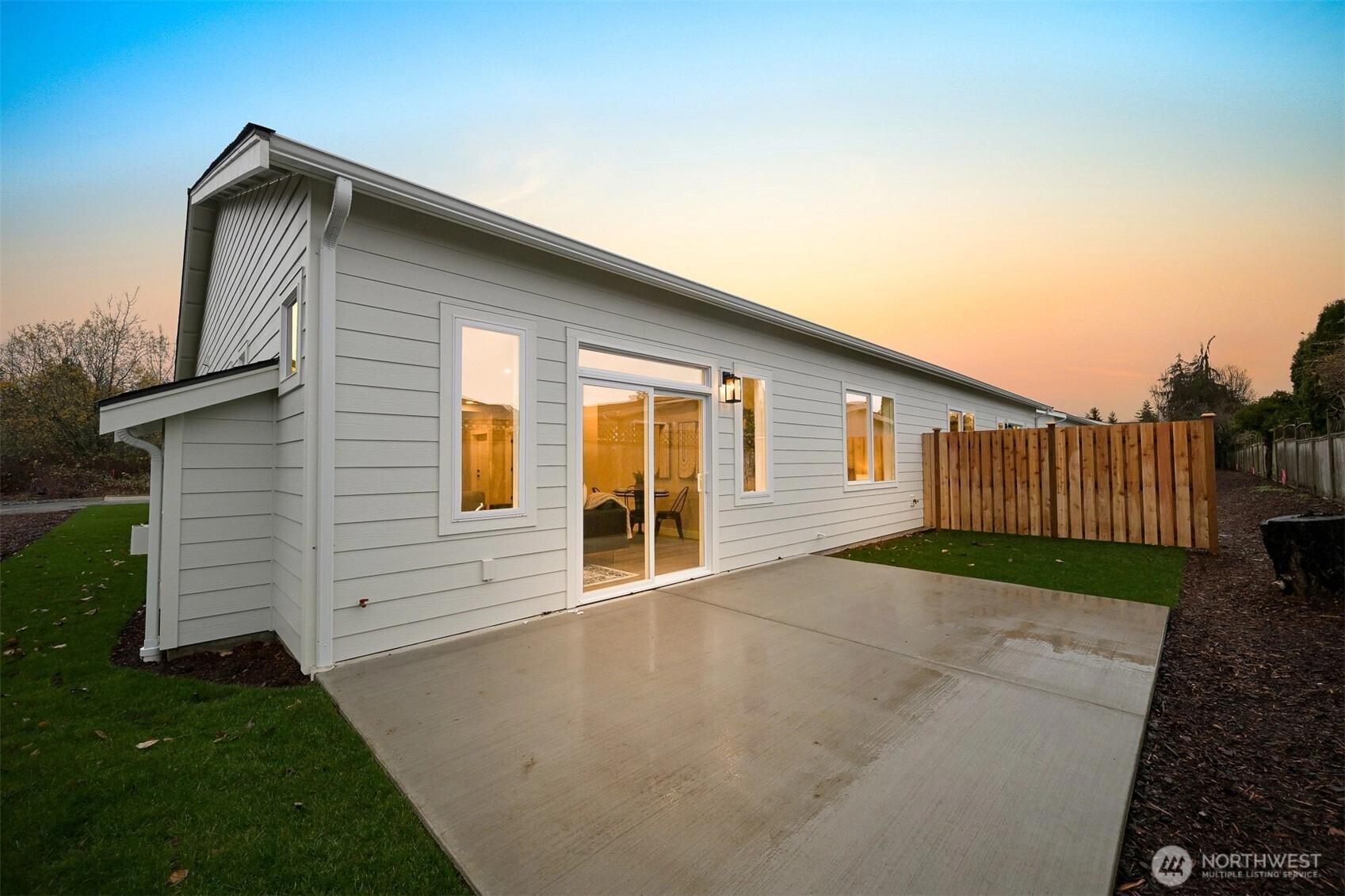 Brand new luxurious living! Single-level living with absolutely ZERO steps. Intelligent design captures the essence of true Northwest architecture with a modern flair. Generously sized windows & vaulted ceilings create a light & airy atmosphere. Magnificent chef's kitchen fully loaded with quartz counter tops, stainless appliances, soft close drawers & under cabinet lighting. Huge primary bedroom & a spa-like en suite. Enjoy your own backyard with a patio & privacy fence, plus the convenience of an attached garage—all in a serene, quiet location, in a gated secure neighborhood. Efficient heating plus A/C. 55+ living, yet 20% of the homes can be any age.