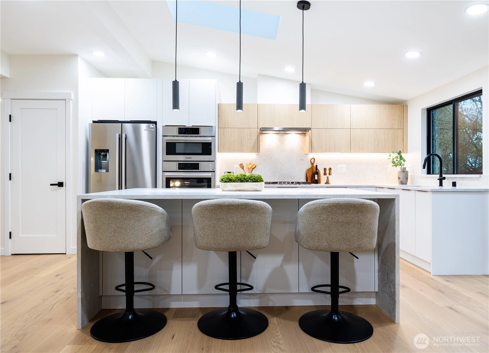 Masterfully reimagined luxury home in Bellevue’s coveted Phantom Lake neighborhood. This complete transformation features all-new systems: electrical, plumbing, HVAC, windows, tpo and premium finishes. Sun-drenched, flowing spaces center on a chef’s kitchen with custom cabinetry & high-end appliances. Spa-inspired baths showcase designer tile and heated floors. An expansive deck offers Phantom lake glimpses and seamless indoor-outdoor living. Rare for Bellevue: a newly landscaped level side yard plus ample parking for gatherings or RV. Perfectly positioned on a quiet street with quick access to I-90/405, Downtown Bellevue & Microsoft. Just blocks from nationally ranked Bellevue Schools & steps from Phantom Lake trails, Swim Club and parks.