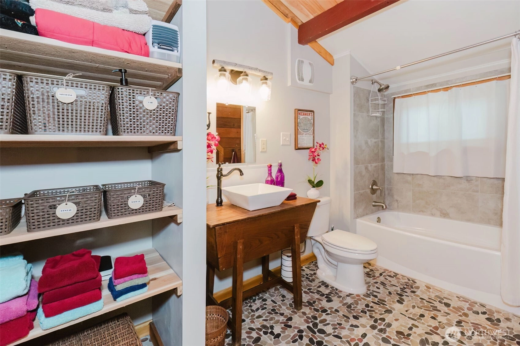 Up in the hills off North Shore is an amazing cedar mountain cabin in the woods on 2-3/4acres. With 3 bedrooms & 3 baths, there's plenty of space for everyone! This home was disassembled in Kirkland & lovingly rebuilt in its current location with all the proper approved permitting. You'll find modern conveniences with rustic touches! Soaring cathedral ceiling & beautiful windows that look out over the property & onto the large deck. Possible to use downstairs as a vacation rental with its own kitchenette. A 960sf enormous garage is perfect for vehicle storage or wood shop. In the spring & summer comes the real beauty; fruit trees & flowers throughout the property. Plenty of parking even for an RV. Solitude and peace are calling your name!