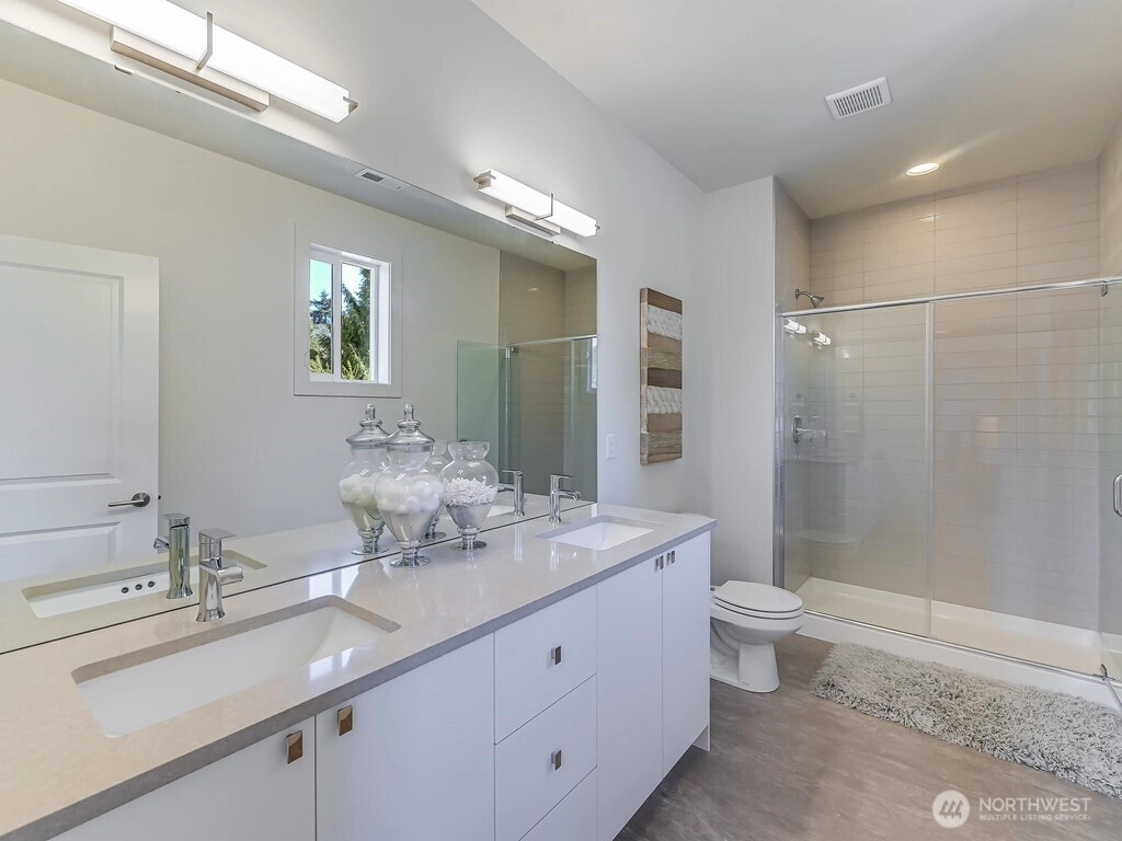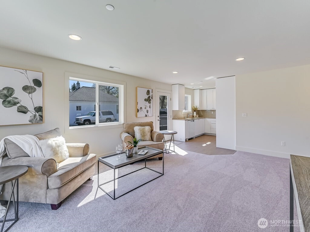 Cary Lang resale in a perfect location with plenty of parking, fenced yard, close to community park, and view of the water. Home has 3 bdrs up, kitchen w/eating space, great room w/fireplace featuring huge windows for lots of lights & water views. Huge primary suite w/luxurious bath. Downstairs you'll find room for multi-generational living; 2 bedrooms, & bath. Great room too, wet bar plus area. It also has it's own separate entrance to work your business or entertain, extended living or room sharing. Fully fenced, quick drive to lite rail, bus , SeaTac, all amenities & arterials.