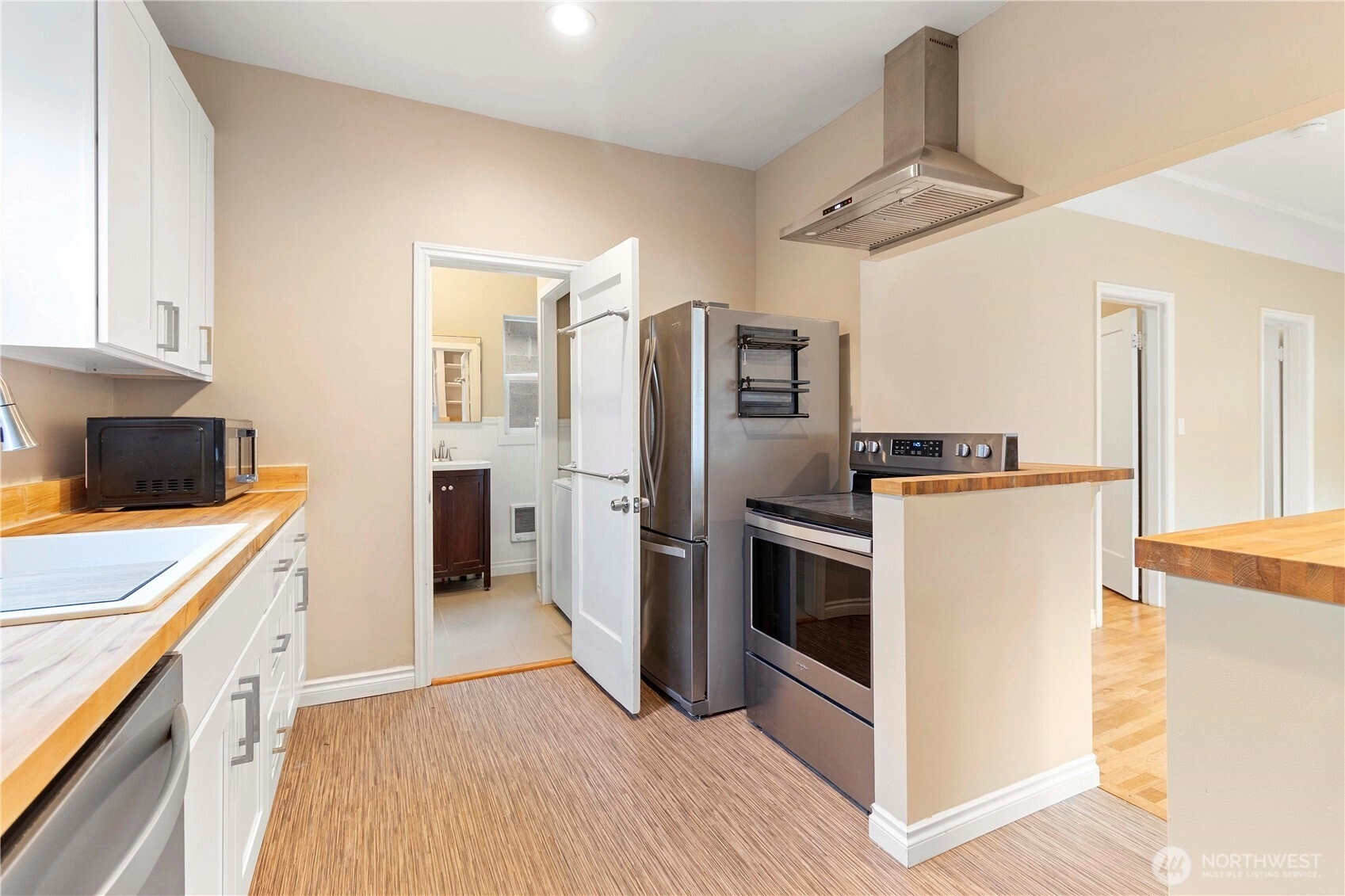 No home like this on the market for the price! Home features daylight/walkout basement with a separate entrance & kitchenette (includes secondary laundry hookups & electric panel) making the perfect multi-generational or income generation setup in highly desirable Camas! Main floor features 2 beds, 1 bath (with rain shower, oversized jetted tub, & washer/dryer unit). Downstairs has 1 large bedroom with walk-in closet & 1 bathroom with washer/dryer laundry hookups & a Bluetooth speaker fan system. Detached 24' garage / storage / workshop space. The house is situated one block from the amazing Mill Ditch trail system that runs through Benton Park. Roof replaced 5 years ago. 15 minute drive to PDX. Plum & Cherry & Quince & Pomegranate trees.