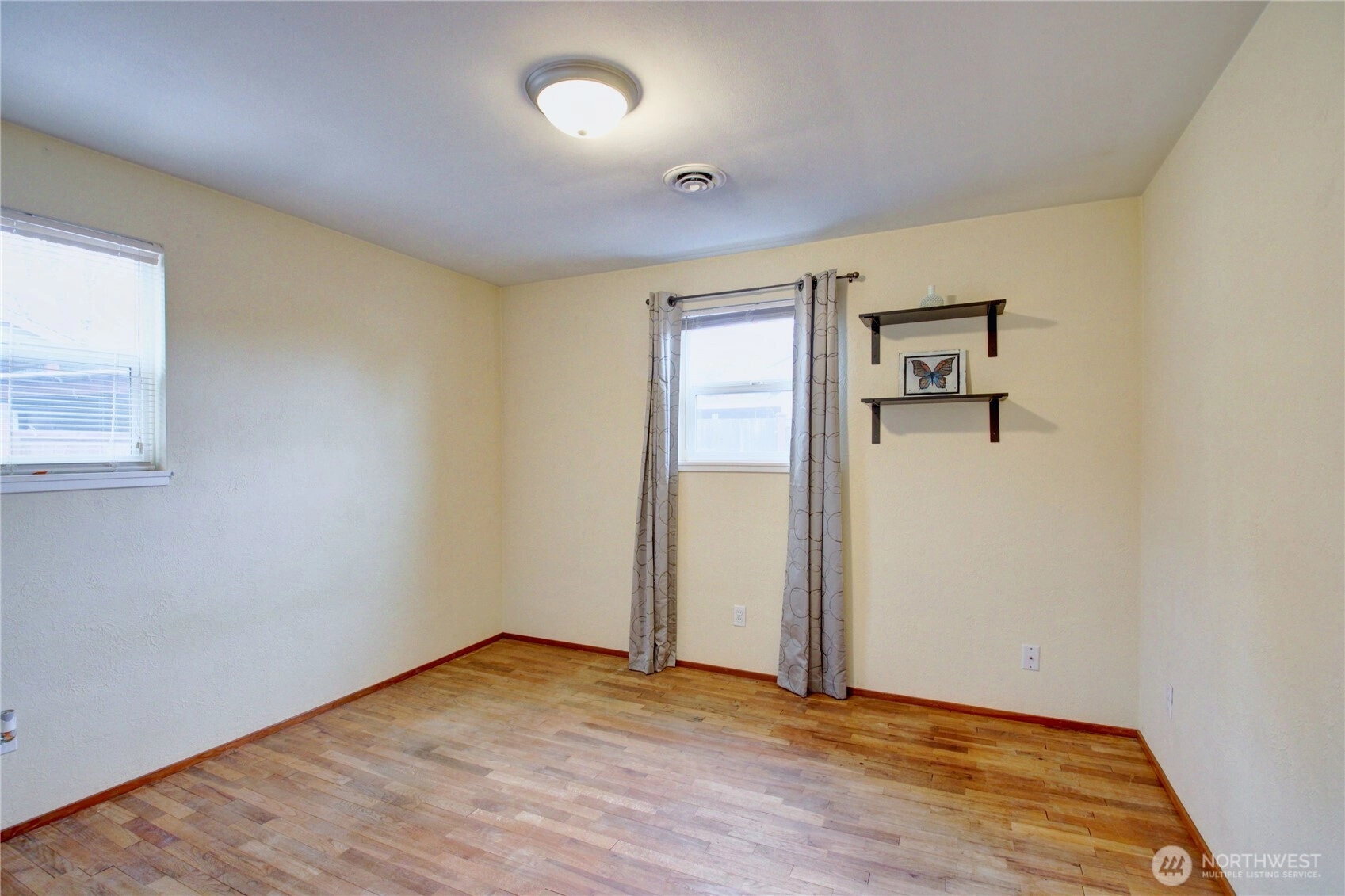 Charm galore in this 1953 home on a 7800 s.f. corner lot. Great storage and character throughout. Over 1,200 sq ft with roomy bedrooms and 1 fully remodeled bath. Original hardwood floors, vinyl windows, and a brick wood-burning fireplace. The converted one-car garage has been used as a third bedroom and also offers great flexibility as a rec room/home office/workshop or convert it back to a garage if that's what you need. Fully fenced yard with producing fruit trees (apple, peach, nectarine, cherry). Multiple storage buildings outside. Updated roof approx. 10 years old. Convenient location close to shopping, services, and commuter routes. No HOA ! No Flood Plain. Bonus backyard smokehouse—bring your ribs, dreams, and secret family rub.