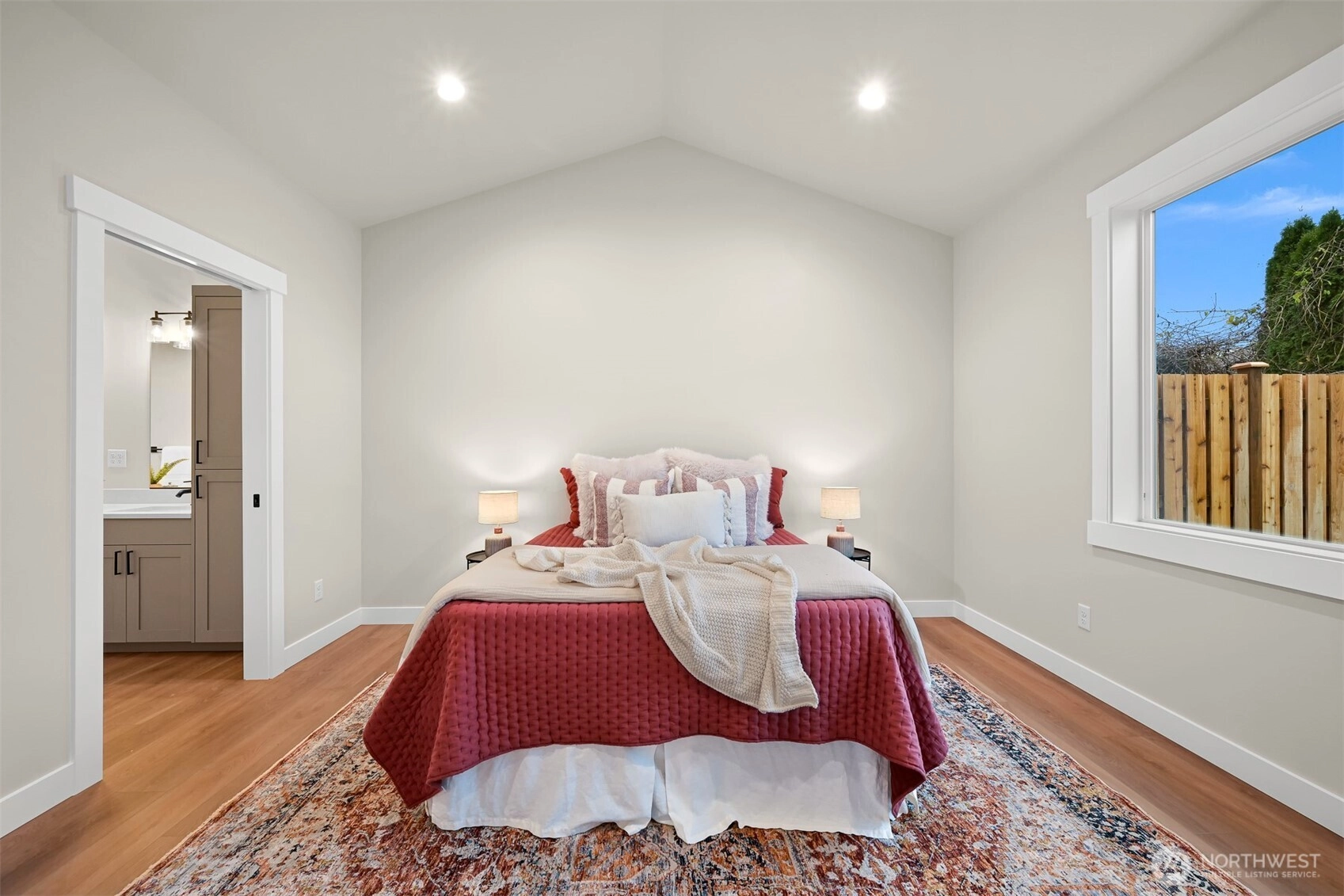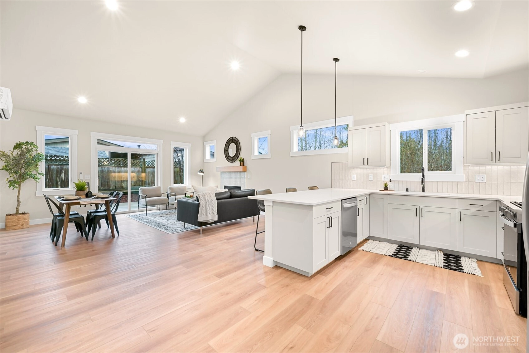 Brand new luxurious living! Single-level living with absolutely ZERO steps. Intelligent design captures the essence of true Northwest architecture with a modern flair. Generously sized windows & vaulted ceilings create a light & airy atmosphere. Magnificent chef's kitchen fully loaded with quartz counter tops, stainless appliances, soft close drawers & under cabinet lighting. Huge primary bedroom & a spa-like en suite. Enjoy your own backyard with a patio & privacy fence, plus the convenience of an attached garage—all in a serene, quiet location, in a gated secure neighborhood. Efficient heating plus A/C. 55+ living, yet 20% of the homes can be any age.