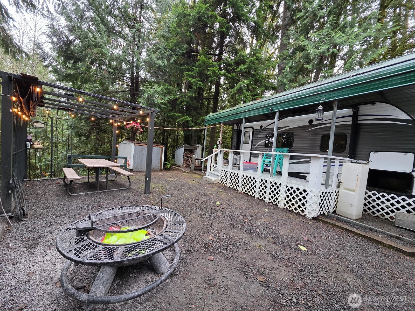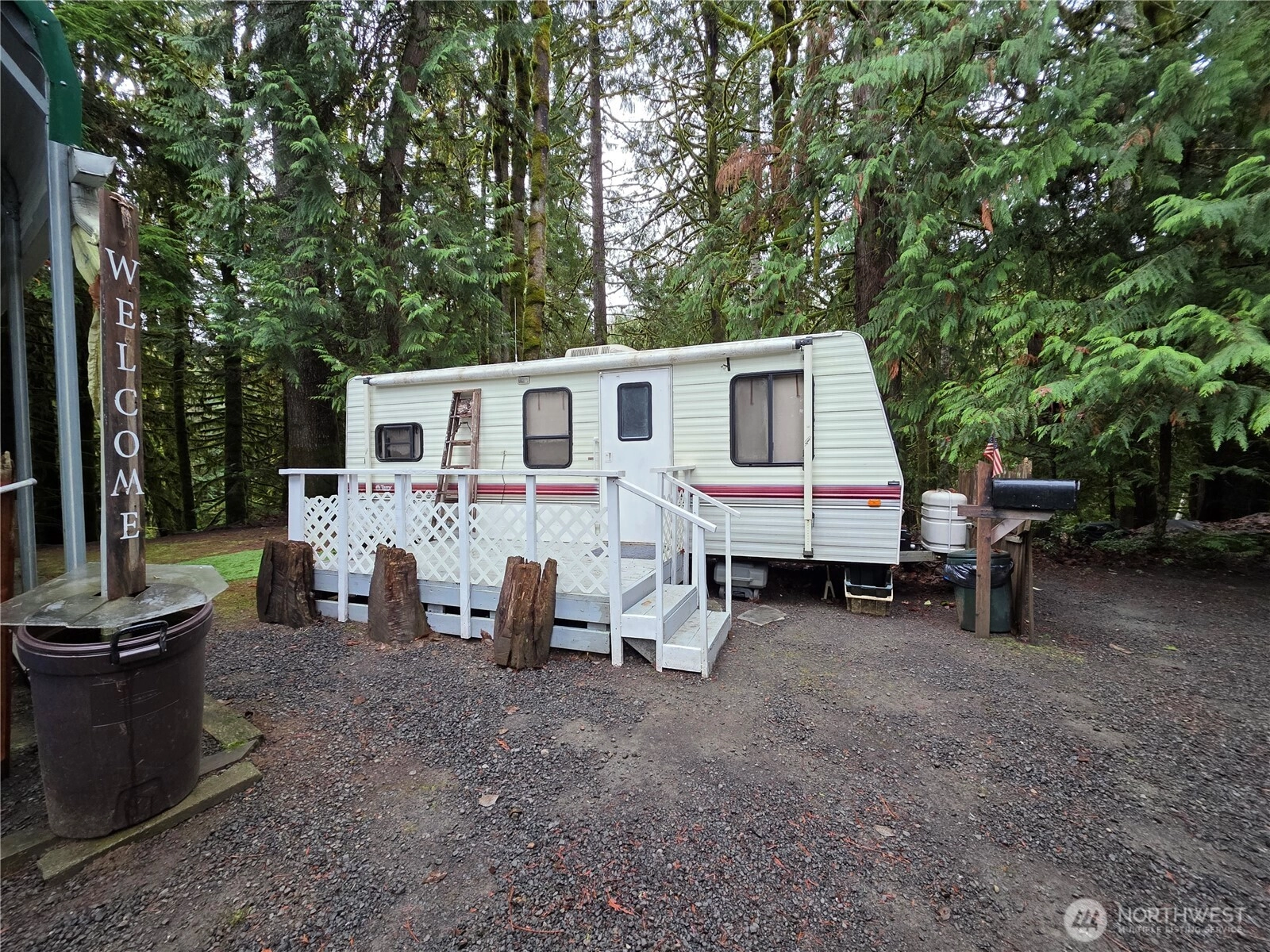 Relax to the sound of the Duckabush River as you enjoy your camping retreat. This .64 acre property has 2 travel trailers, a 2019 Aspen Trail and a Terry Resort (which has a new roof) both with decks, power and telecommunications installed. Evergreens surround this peaceful place which includes 2 outbuildings, picnic area, gated driveway and security cameras. Filtered view of the river and an additional level area that could be used for a tiny home/cabin. Bring your containers and get water at one of the community water faucets. Ownership includes access to a community beach on Hood Canal for swimming/shellfish gathering, boat ramp, clubhouse kitchen, and a picnic area on the Duckabush River.