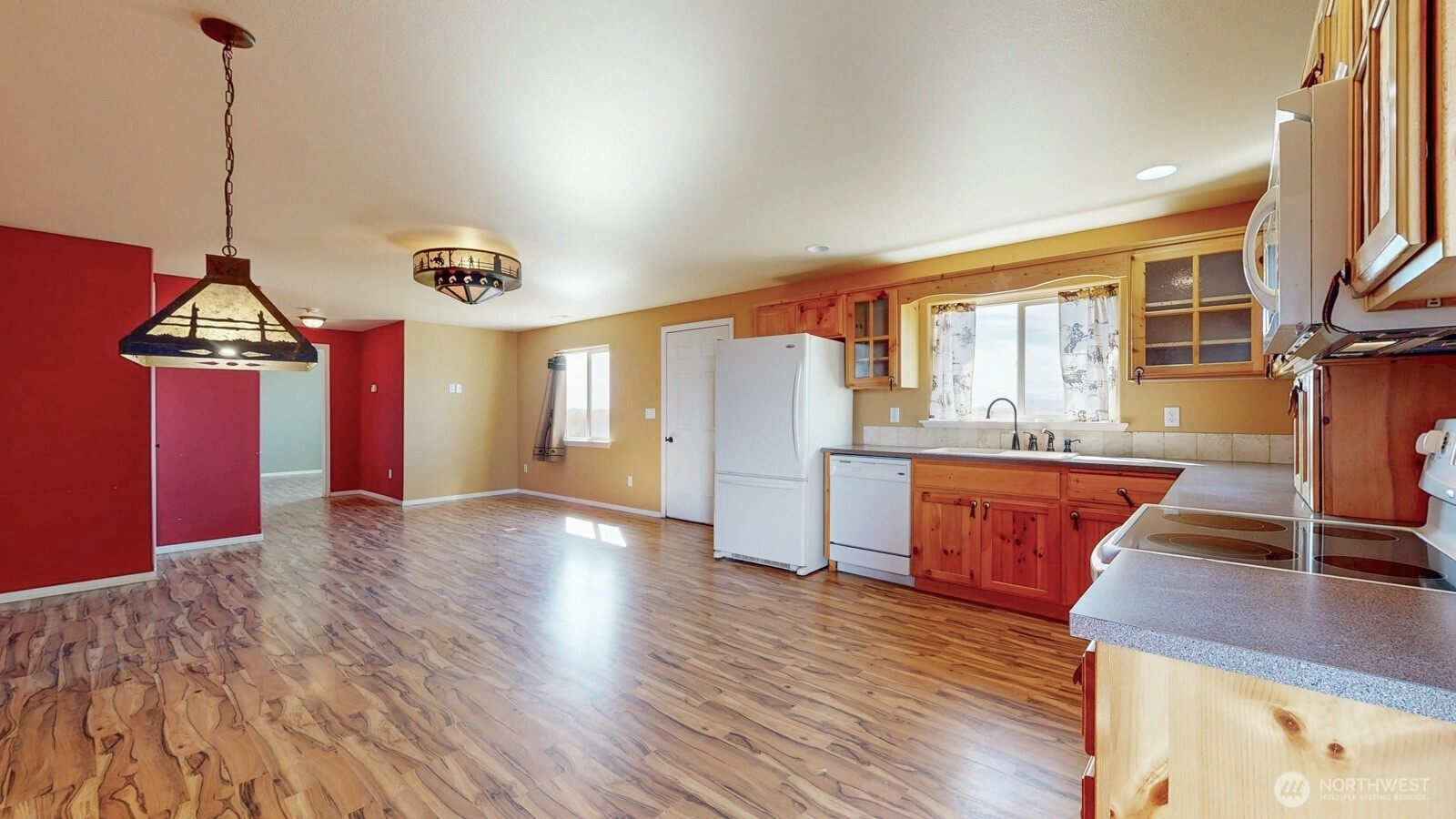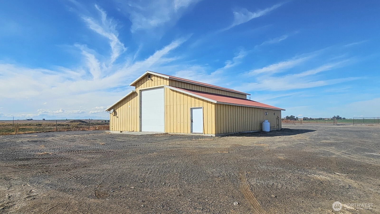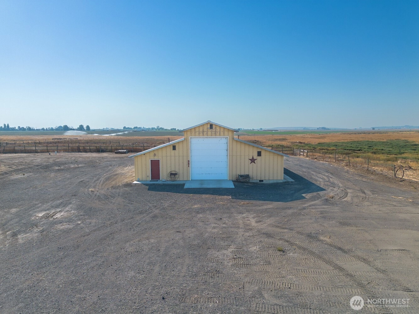 Escape to wide-open country living on 73+ peaceful acres in Eltopia! This one-of-a-kind barndominium offers panoramic views, endless room to roam, and incredible potential for your dream retreat, working ranch, or recreational getaway. A classic pole-building exterior with metal roof and drive-through bay opens to two finished wings: a 1-bed/1-bath home with open layout, laminate floors, and cheerful kitchen on one side, and a flex space with propane fireplace, bath, and laundry on the other. The massive shop bay fits vehicles, projects, or equipment galore. With dryland acreage, fencing, and a storage building, it’s practical, rugged, and full of possibilities.
