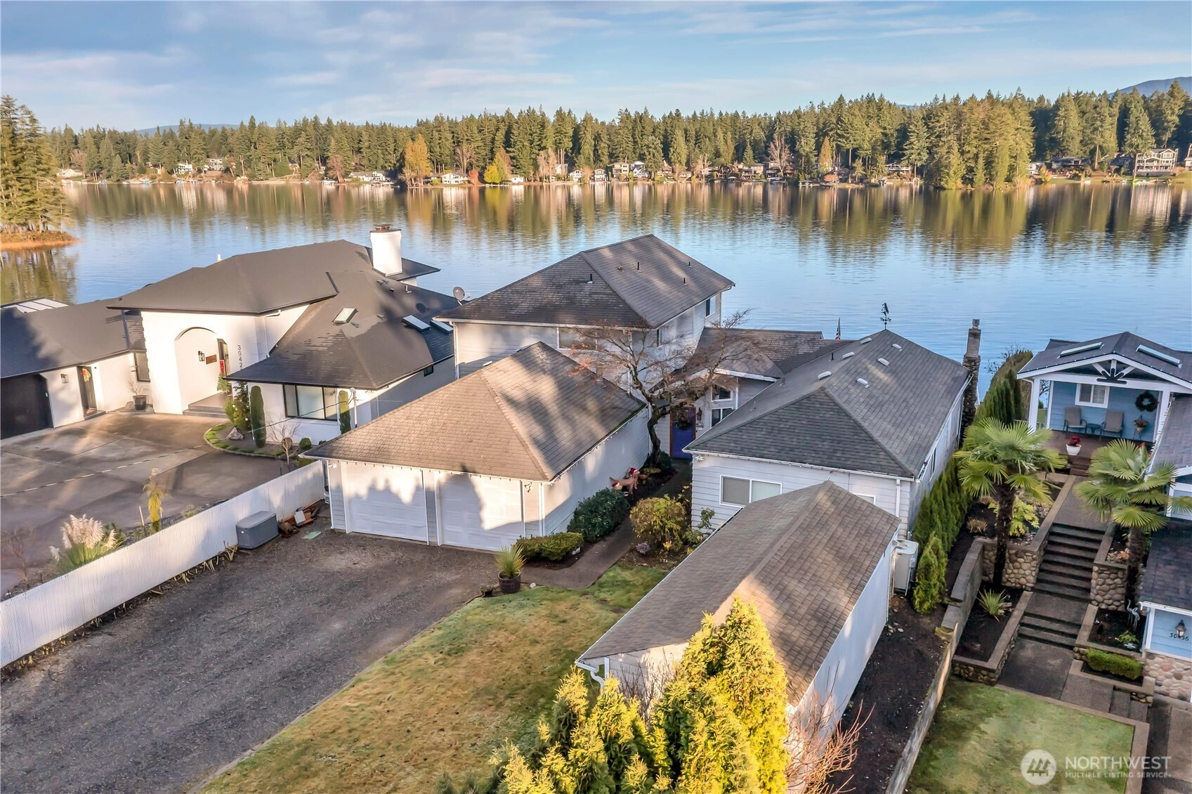 A rare chance to claim a breathtaking no-bank Lake Sawyer estate with 80 ft of pristine shoreline, private dock and boat lift. This custom retreat delivers resort-style living with soaring ceilings, dramatic lake-facing windows and rich hardwoods. Main level offers 2 bedrooms, full and 3/4 baths, gas rock fireplace, freestanding stove, dual-fuel range and a stunning sunroom over the water. The lavish primary suite stuns with a lake-view jacuzzi, private balcony, coffee bar, exercise room and walk-in closet. Outdoors impress with a covered lakeside patio, firepit, whole-house generator, lake-water irrigation, theater outbuilding, storage, 2-car garage and manicured grounds.