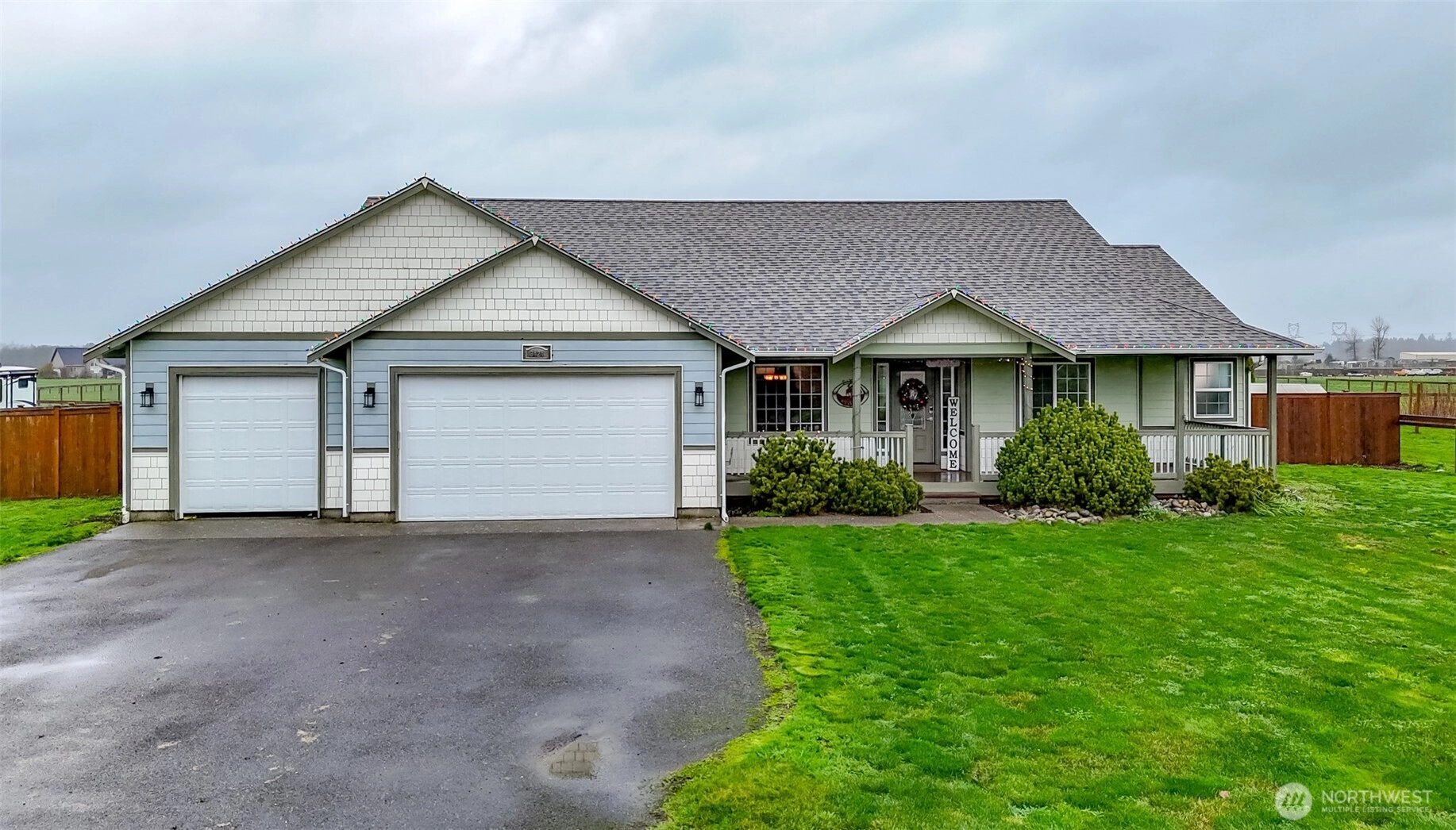 Don't miss this one! 5 Acre 2200 sf 4 bed 2 bath 3 car garage is ready for you! Fenced/cross fenced w/barn for HORSES, SHEEP, YOU NAME IT! Beautiful mountain & territorial views! Outside: 1100 sf exposed aggregate patio, sprinklers, fire pit, separate Ag water meter w/lower rate, sport court for basketball/pickleball, 2 stall barn plus equestrian fencing surrounding the entire back of the property! Back deck wall mounted tv +elec heater incl. RV Parking and room for lots of parking on the driveway. Inside: New Lifeproof laminate, new interior trim and paint, updated kitchen w/painted cabinetry, garbage disp & undermount lights, Large LG Fridge, W/D incl, updated main bath, vanity, granite, lighting. Start your new farm life adventure today!