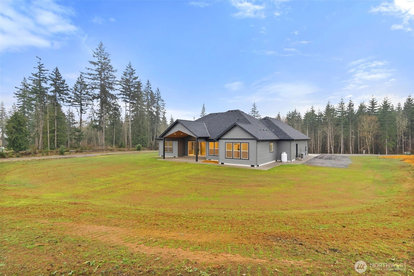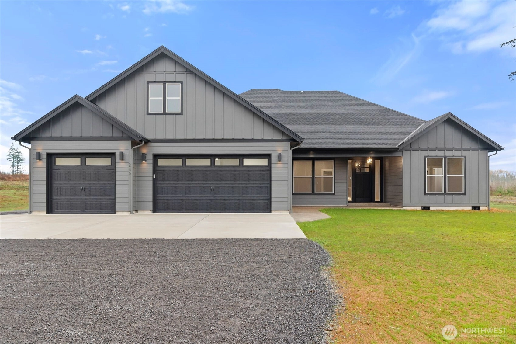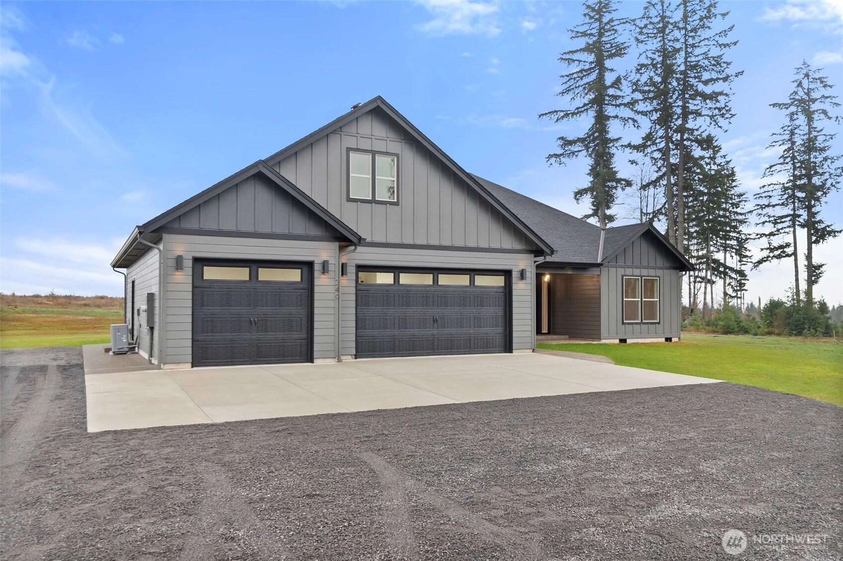 Custom New Home on over 2 acres in a desirable location, 5 mins off I-5. Located on a private dead end road. The lot has stunning Mountain Views until neighboring lots build. This home is a must see. Home offers a split floor plan with oversized master suite, tiled walk in shower and large walk in closet. The living space has an open plan with a custom kitchen that flows into the living room with oversized sliding glass doors. The outside entertaining area has incredible mountain views to enjoy with your cup of coffee. The Jack-n-Jill bathroom helps bring bedrooms 2 & 3 together and ties this well thought out floor plan together. 3 car garage and 50 amp rv outlet.