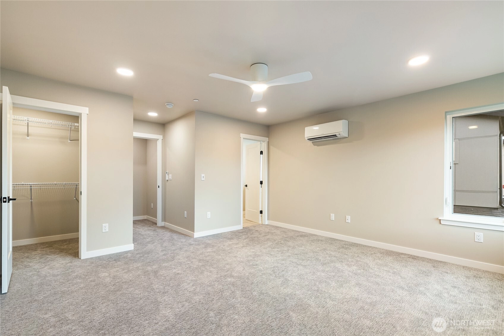 Welcome to Northview 2 in Cordata, Bellingham's premier solar home community! This stunning 3-bedroom, 2-story contemporary home features an open and spacious floorplan, vaulted ceilings, and large windows that fill the space with natural light. Enjoy a custom kitchen with sleek quartz countertops, a primary suite with an ensuite boasting a double sink and walk-in closet, and a main-level bedroom for added convenience. Designed with sustainability in mind, this home includes efficient mini-split heat pumps with A/C, a large covered patio, a gas fireplace, and EV charger prewiring. Take in mountain and golf course views. Includes 2-car garage. Your dream home awaits—secure yours today!