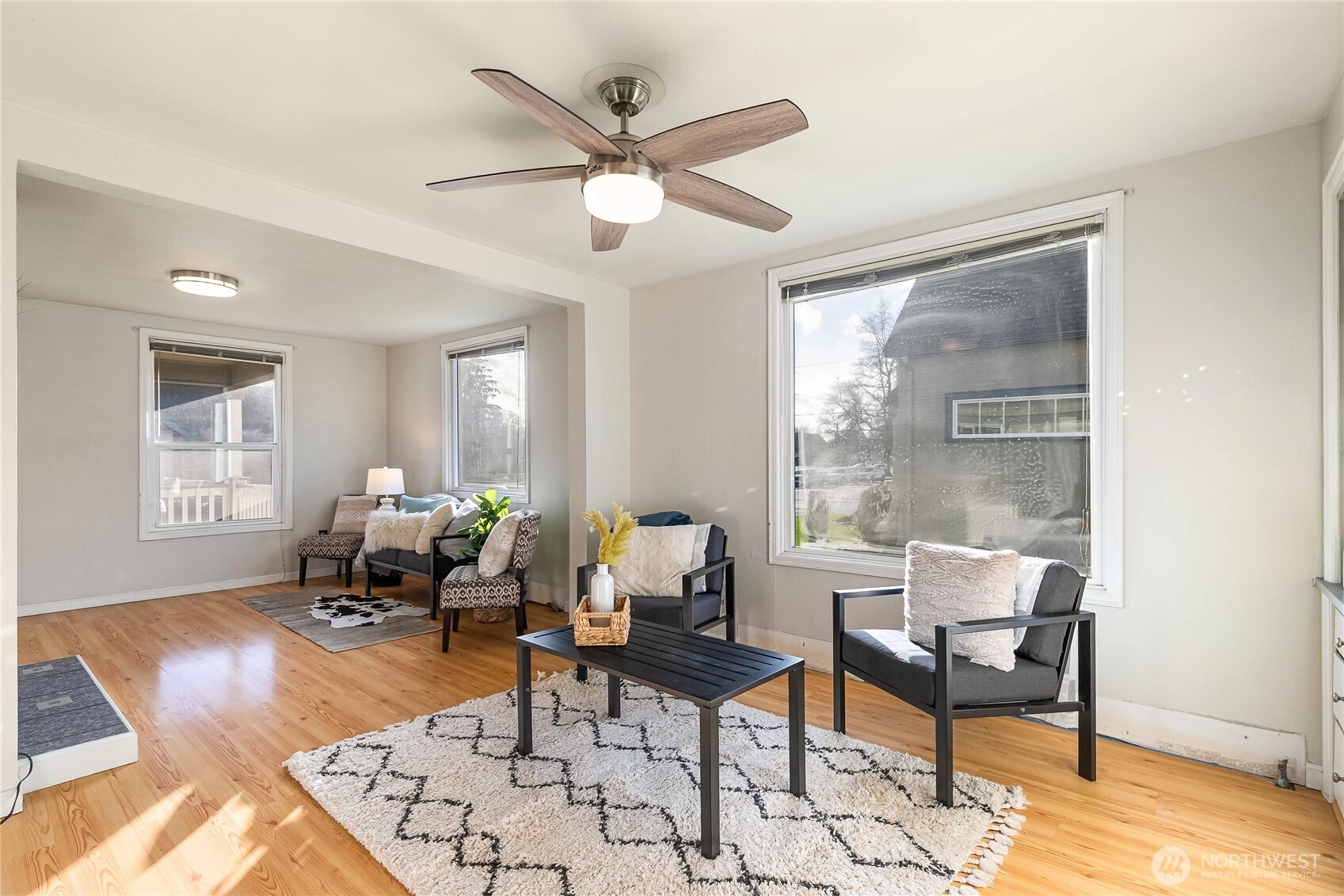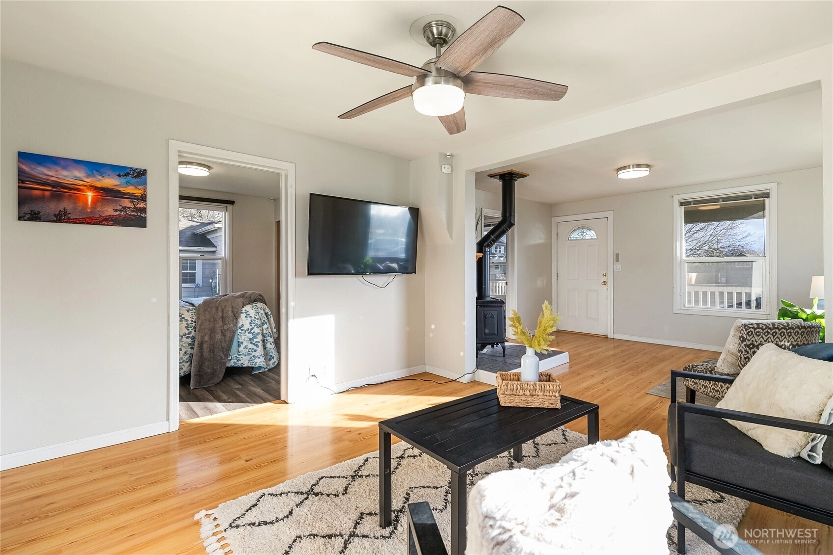 Adorable Craftsman with rare commercial or residential zoning, opening the door to endless possibilities…live, work, invest, or all three! This 2-bedroom, 1-bath home offers 1,008 sq ft with timeless character throughout. Cozy up by the gas freestanding stove as natural light fills the living room through large windows, creating a warm and inviting atmosphere. The functional layout includes a mudroom off the attached covered carport and a versatile flex space ideal for a small bedroom or home office. Generous crawl-space storage with an unfinished wine-cellar area. Outside, enjoy a large, low-maintenance yard with a garden shed, just steps from Schoolyard Park and within walking distance to quaint downtown Lynden.