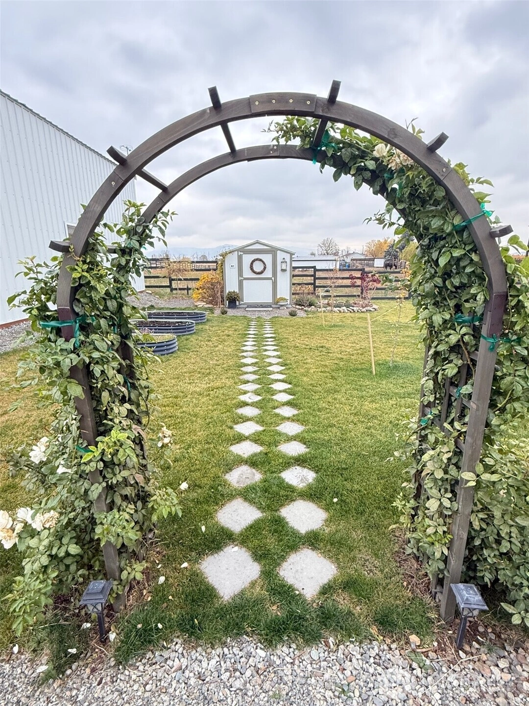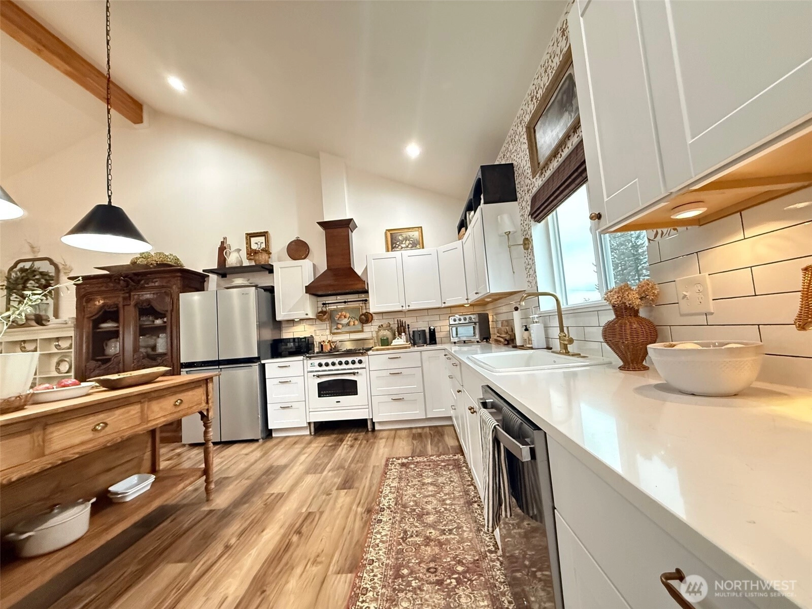 STUNNING & METICULOUS describes this NEWER 3 bd/2 ba Omak home on 1+ irrigated acre minutes from Omak. Built in 2022 w/over 2015 sf, home offers Great Room concept-spacious, open & bright. Kitchen w/all appliances, island w/bar, quartz countertops, walk-in pantry. Great room w/vaulted ceilings, slider to covered patio, new propane stove. Primary suite w/walk-in closet, slider to patio, en-suite bath w/tiled shower, rain shower, new soaking tub, double sinks. Wood lam floors thru-out, +high-end lights/fixtures, water softener. Attached 2-car heated/insulated garage. Covered back patio, sidewalks & manicured landscaping w/vineyard. Newer 1080 sf detached shop w/pellet stove, 14 & 12 ft overhead doors, loft, RV hkup. $599,000 H-3732/MLS2455229
