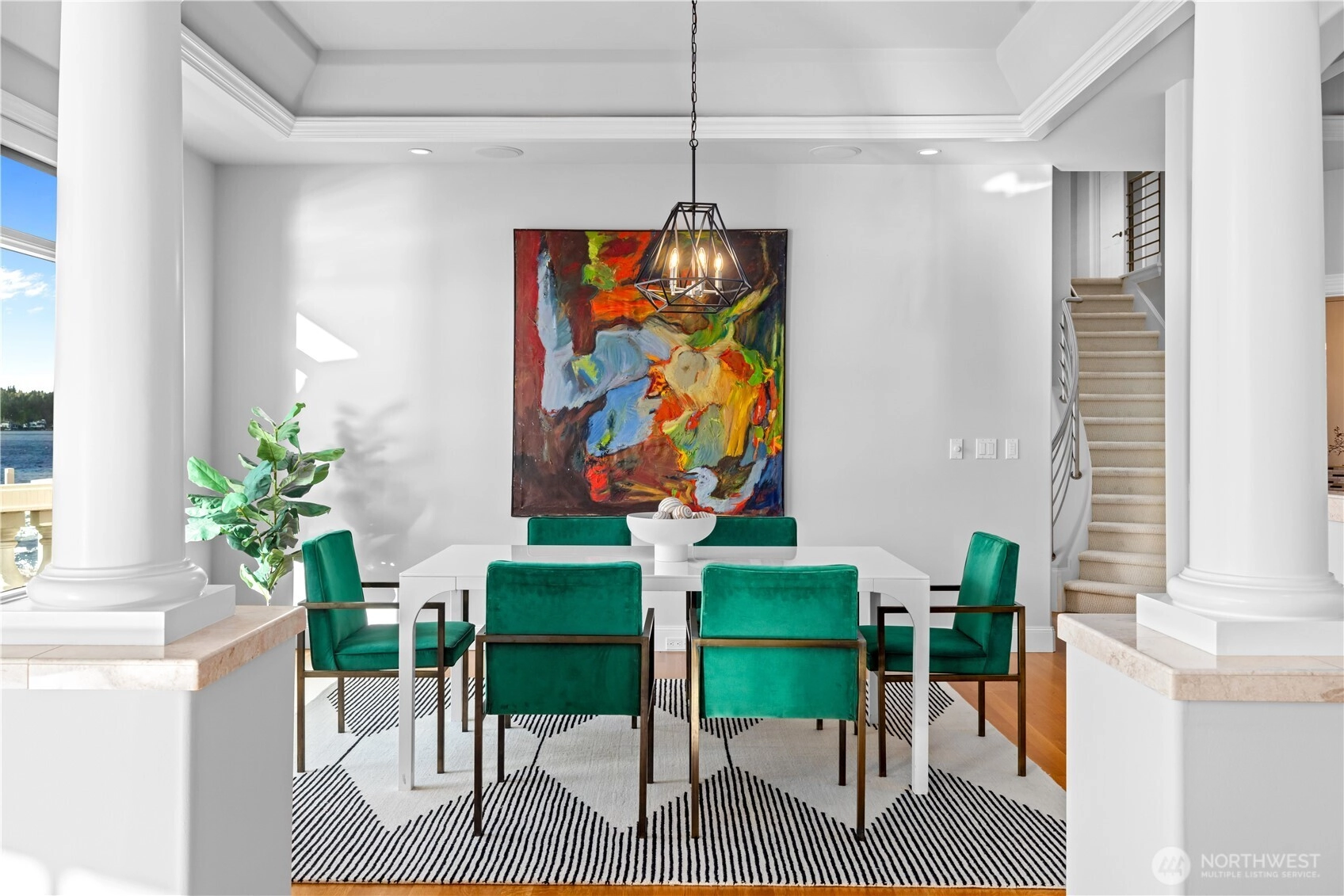 Along 120’ of Lake Sammamish shoreline, this gated waterfront estate blends modern ease with an irresistible connection to the water. Sunlight pours through arched windows, catching the rhythm of tumbling waves and the lake’s soft shimmer. Thoughtfully updated living spaces flow with ease—two contemporary kitchens, a lake-level entertaining hub with a bespoke wine wall, and two-lake-facing primary suites, including a tranquil main-level retreat. Outside, the covered pool, lush lawn, and private dock with boat lift invite inviting refreshing swims, peaceful pauses at the shore, and evenings washed in warm sunset color. Smart-home lighting, security, and audio enhance daily ease. A rare estate where the rhythm of lake life becomes your own.