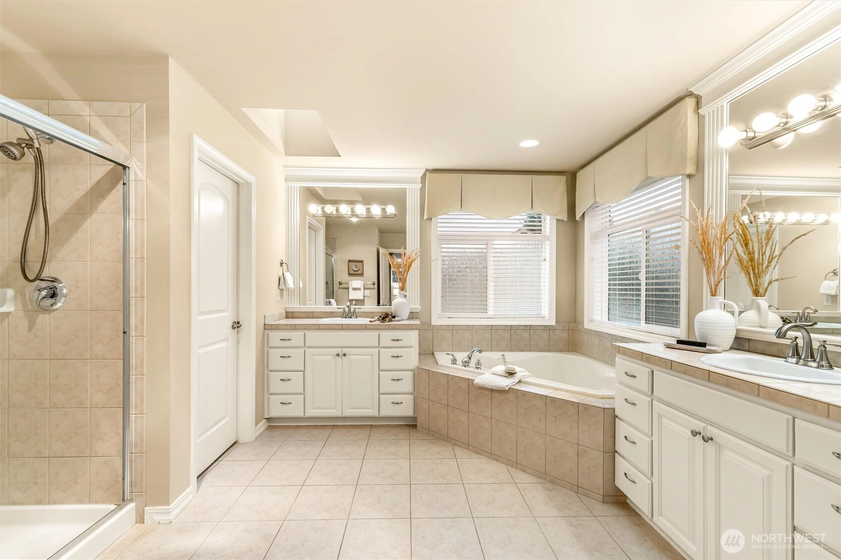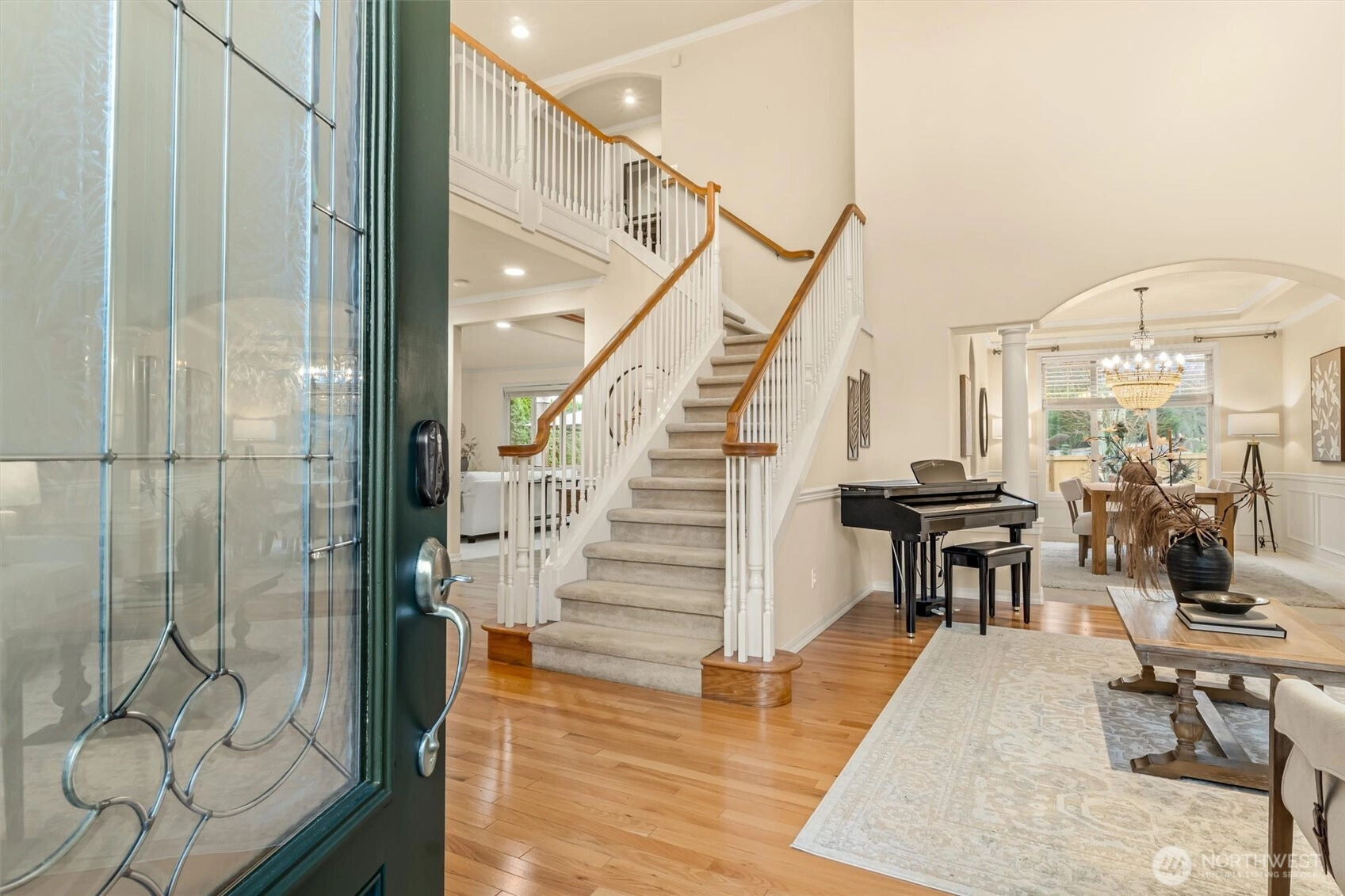 East-facing Canyon Park gem in the Northshore School District with shopping, restaurants, and everything you need nearby! The main floor features a 5th bedroom or guest suite, and open layout highlights a granite kitchen with walk-in pantry, gas cooktop, and upgraded appliances flowing into a cozy family room with fireplace and surround sound, plus formal living and dining areas. Upstairs hosts 4 bedrooms, including a primary suite with two walk-in closets. Finished, heated 3-car garage adds incredible flexibility. A/C, security system, and fully fenced, landscaped backyard complete the home. Close to schools, Park & Ride, I-405, and all Canyon Park amenities. Large corner lot in this coveted neighborhood is a must see!