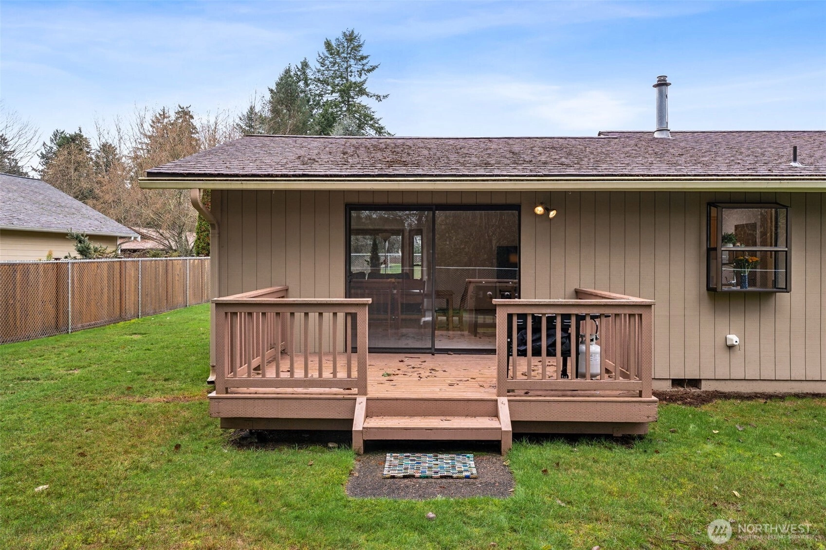 Welcome to this inviting one-story home on an oversized lot! Property offers 3 bedrooms 2 full baths in 1516 square feet with privacy, flexibility and room to grow. Fully fenced front and back yards provide ideal space for pets, play or entertaining. The living room is filled with natural light from the expansive windows. RV parking adds extra convenience. Brand new flooring in the primary bathroom. Enjoy the free standing gas stove on those cold winter nights. Conveniently located close to shopping, schools, restaurants, free way access and just minutes to JBLM. All appliances stay!