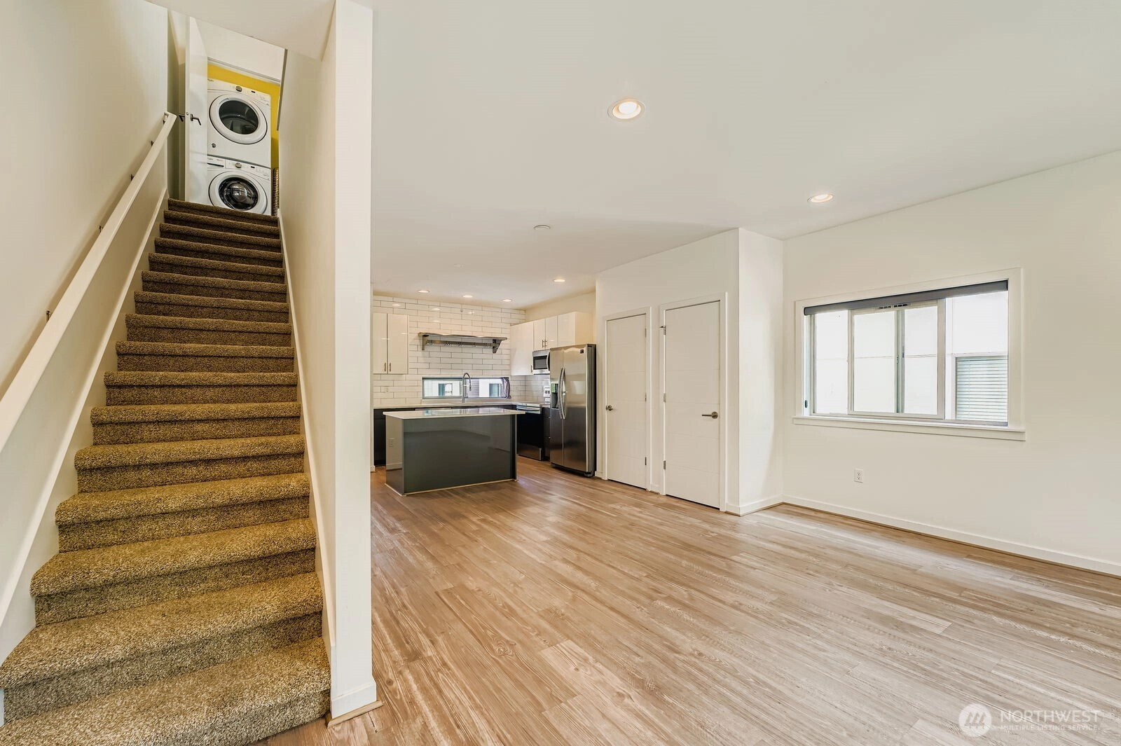 Spacious and modern townhome featuring 3 bedrooms and 2.5 bathrooms. Two bedrooms, each with their own full bath, are located on the top floor; the third bedroom is on the lower level. The main floor offers an open kitchen with eating space, a bright living room, and a convenient half bath. Enjoy the oversized garage with easy rear access. Front area can be fully fenced and currently is a perfect place to lounge and relax outside. Located just 2 blocks from the light rail, providing quick connections south to Federal Way (past the airport) and north to Lynnwood (past downtown Seattle and UW). No rental cap—ideal investment opportunity!