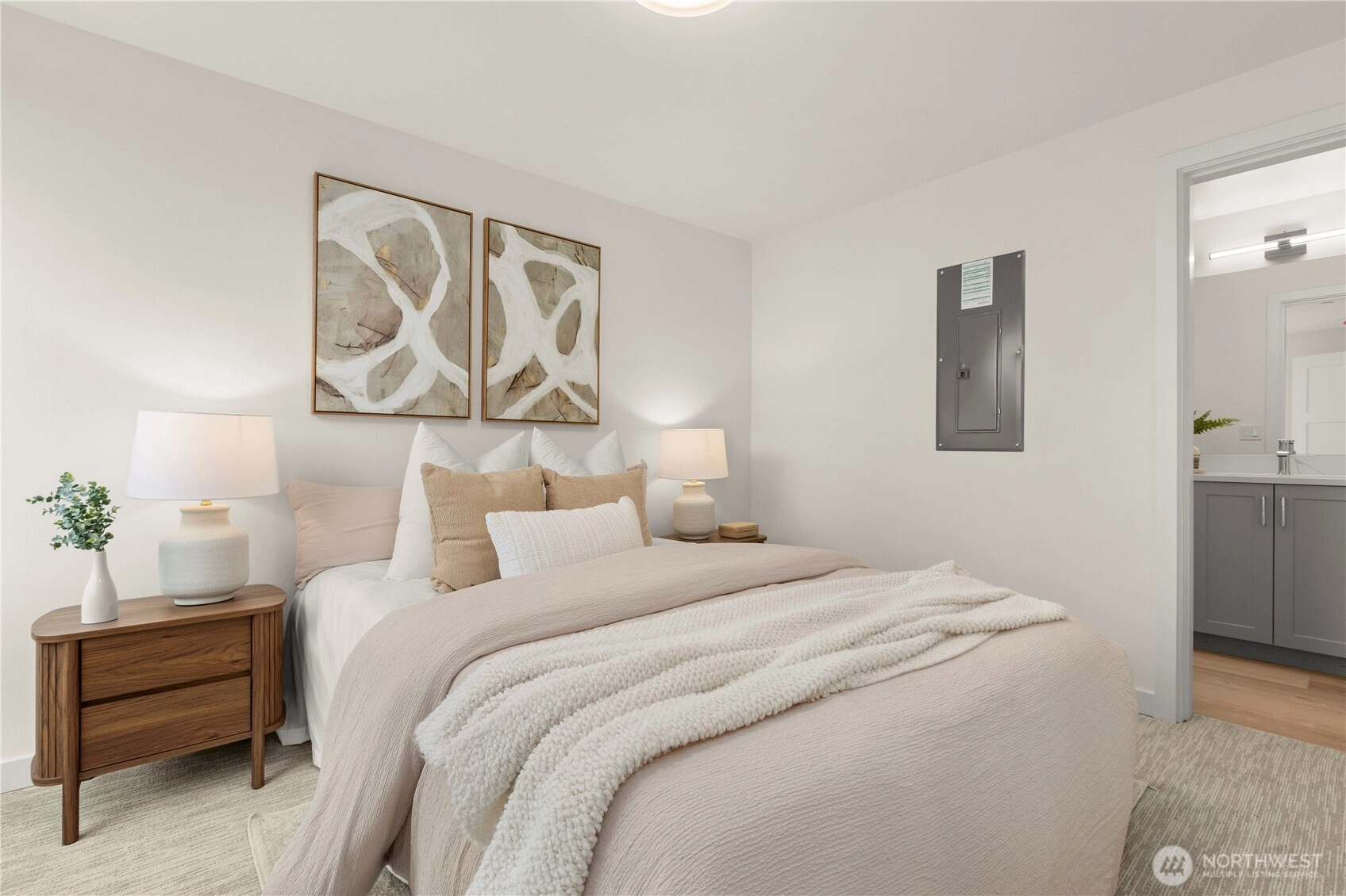 Discover Serene by MRN Homes—an elevated new construction community set on a picturesque, tree-lined street. This luxury residence blends modern design with a peaceful outlook, offering bright interiors, expansive windows & a true sense of privacy. Rare EV-READY PARKING adds exceptional convenience! The open-concept main level features a chef’s kitchen with premium SS appliances & custom cabinetry. Upstairs, the top-floor primary suite is a spa-like retreat while a lower-level ensuite offers flexibility for guests or a home office. Take entertaining to new heights on your full-size rooftop deck. Perfectly located, near parks, Golden Gardens, & boutique shopping & dining.
