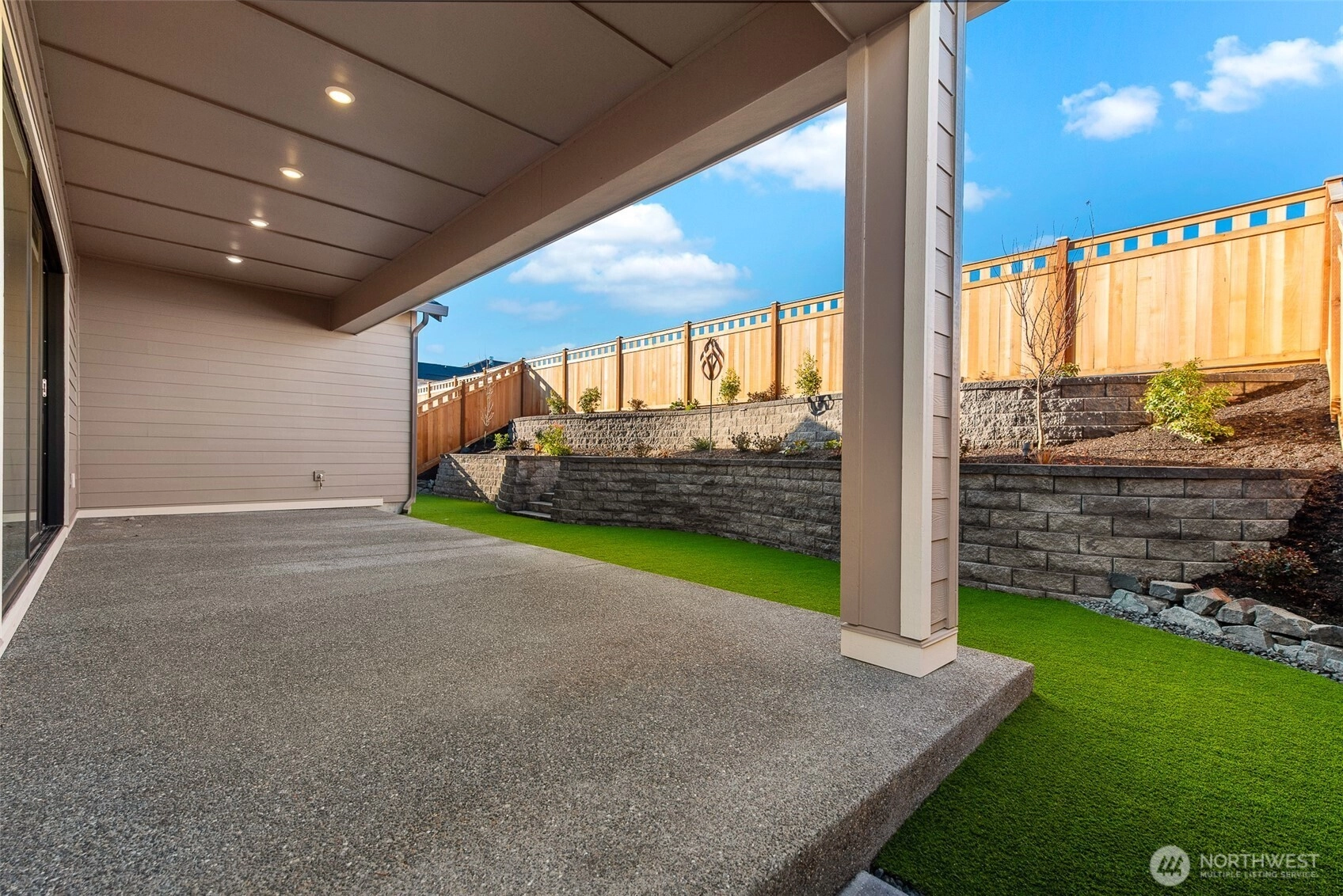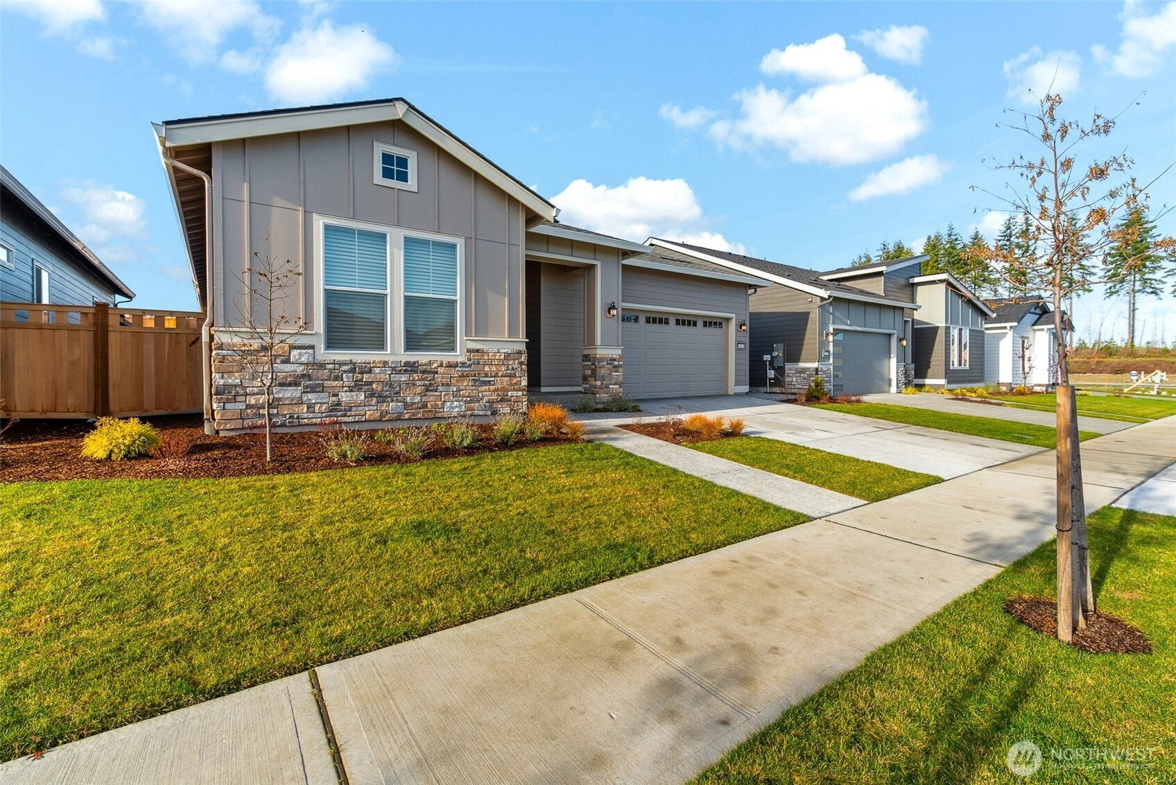 Beautifully designed 3-bedroom, 2-bath home in the sought-after Verterra 55+ community in Bonney Lake, offering comfort & low-maintenance living. The chef-inspired kitchen features built-in cabinetry, satin nickel pulls, & soft-close doors, while wide-plank flooring adds warmth throughout the living areas.The primary suite includes a spa-like shower with a built-in seat & upgraded tile. Step outside to a thoughtfully designed backyard with $50,000+ in landscaping, featuring artificial turf, retaining walls, & a covered, elevated concrete patio with recessed lighting. Oversized double sliding glass doors create seamless indoor-outdoor living.The neighborhood also offers scenic Mount Rainier views.