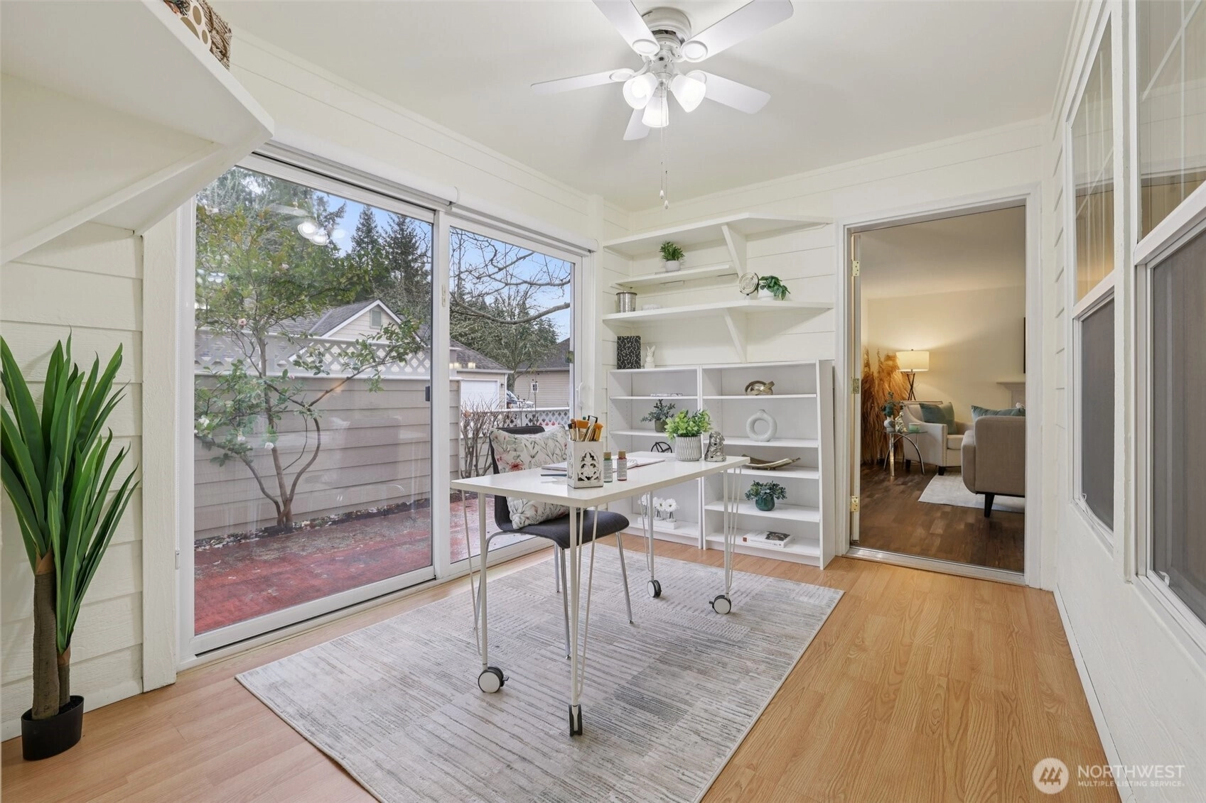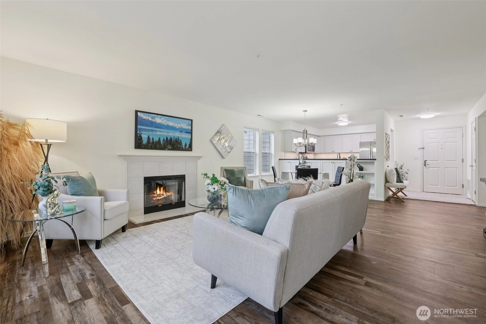 Charming Lower Corner Condo with Private Entry! Enjoy seamless access from your patio, bypassing the building foyer. This beautifully updated space features a modern kitchen and bathrooms, complemented by an expansive living and dining area with sleek hard surface flooring and a cozy fireplace. The bonus enclosed multipurpose room is perfect for pets or crafting enthusiasts, while the refreshed patio invites your personal touch. The spacious primary bedroom boasts an ensuite and walk-in closet. With new vinyl tile flooring, updated fixtures, and a full washer and dryer, this condo is a standout choice in its category! Don’t miss out!