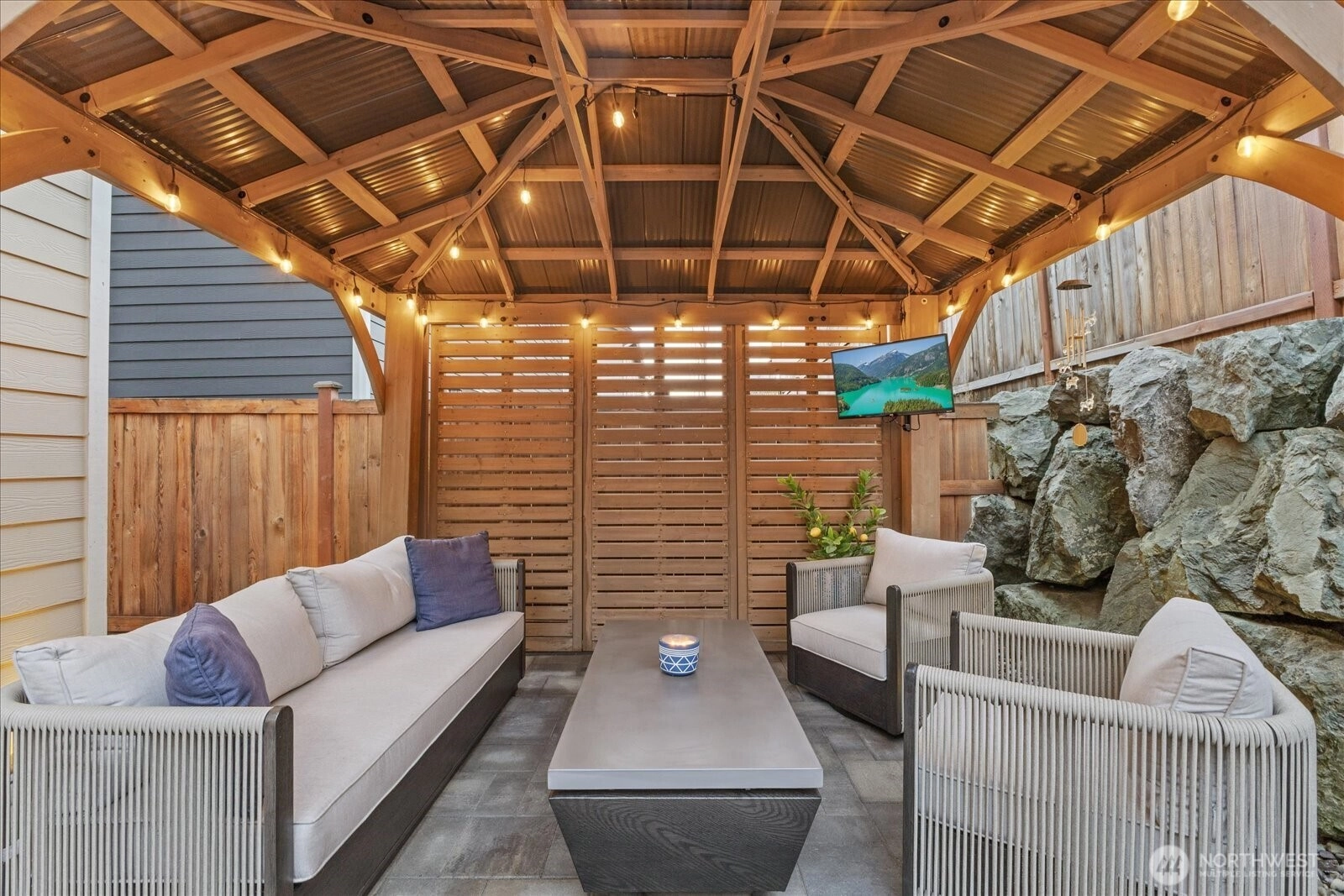 Welcome to this stunning 3-bed, 2.5-bath home w/a spacious loft—delivering comfort & modern functionality. The open-concept living area, kitchen, & dining room create a bright, seamless space perfect for entertaining or everyday living. The large kitchen impresses with quartz countertops & stainless appliances. New luxury vinyl plank flooring flows throughout the majority of the home. Enter your own private outdoor oasis featuring a gazebo w/privacy wall, stone pavers, turf, & in-ground lighting system—ideal for relaxing or hosting. Upstairs, the versatile loft adds valuable flex space, while the bedrooms offer peaceful retreats. This move-in-ready home checks every box w/thoughtful upgrades & a floorplan designed for today’s lifestyle.