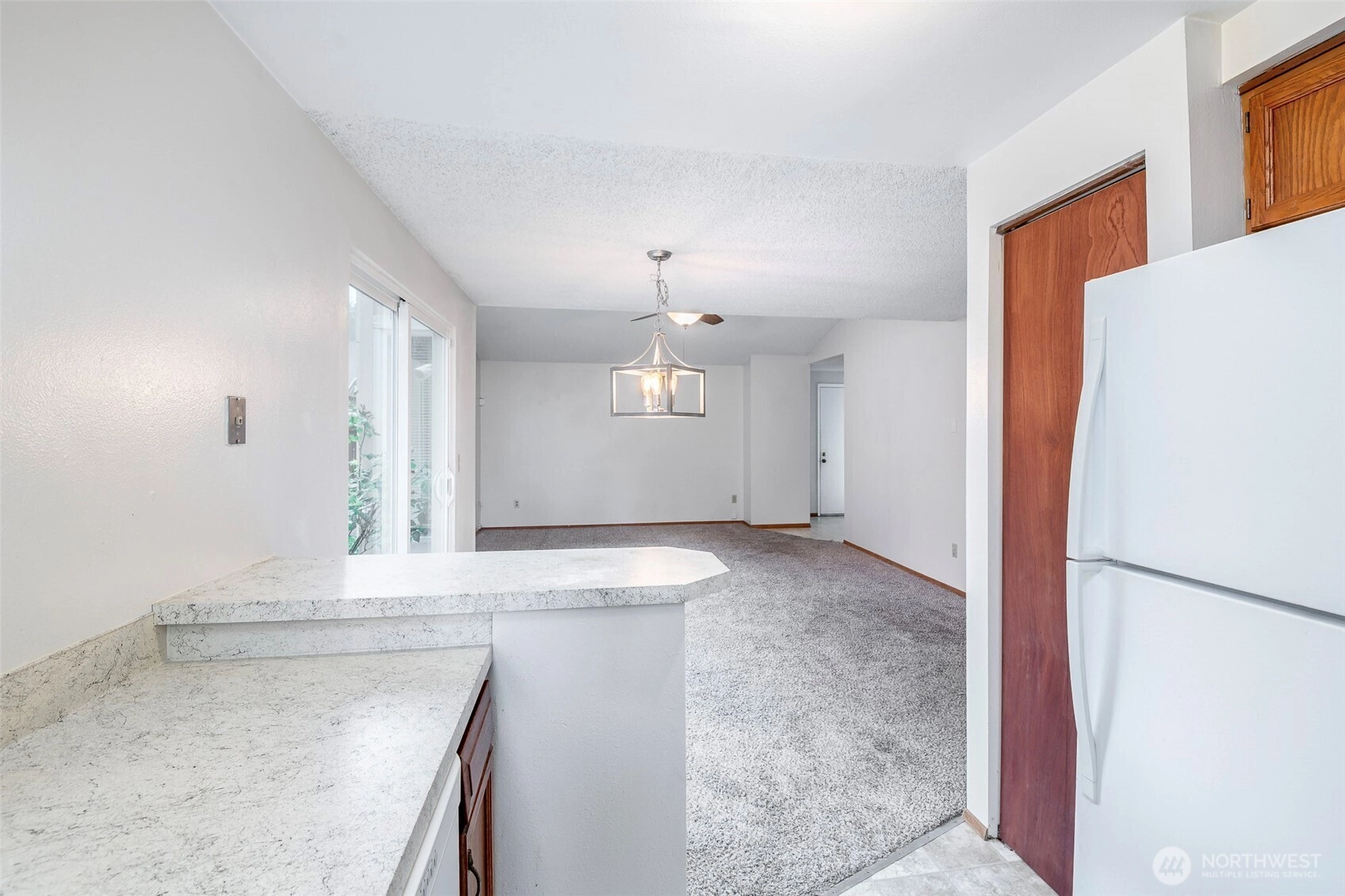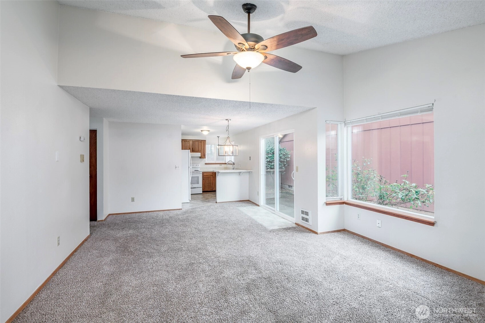Welcome home to this charming 3 bedroom, 1.75 bathroom home with 1,092 sqft featuring a large living space with a flexible layout thats ideal for everyone! Walk inside to a light & bright inviting living room with high ceilings that opens to the dining room & kitchen. Kitchen has tons of cabinet space & pantry, large secondary bedrooms, great size bathroom and a primary bedroom with it's own bathroom attached! Step outside to your fully fenced backyard with enough space to play and call your own! This move-in ready home is conveniently located near restaurants, shopping, parks and perfect for commute to JBLM. Hurry-you won't want to miss this one!