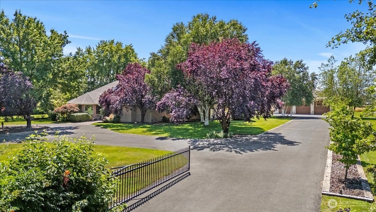 Here is the perfect homestead on 2.36 acres of park-like trees on level land in a penetratingly quiet environment! It's a sought-after sanctuary on one-level, well-conceived and uniquely constructed. It's a magical place with a securely gated entry leading to a circular driveway ideal for entertaining guests. There's a tree-lined route leading to a two-car attached garage and detached 3-bay shop with soaring ceilings and 10-foot doors, plus the power you need for any project. A fully updated kitchen with granite counters and stainless appliances await. Primary suite occupies the SE corner of the home while other bedrooms are on the NW corner. Truly an astonishing estate. Call your realtor for your personal tour.