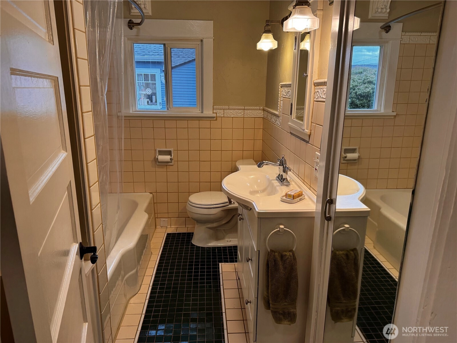 Welcome HOME to this Charming Cherry Hill Craftsman Bungalow right in the heart of town! One level home with fantastic extra space in attic that could be used for an office, hobby room, and storage. Home just got a lovely makeover with new paint and some new flooring. Beautiful wood floors in the front room area, ductless H/P and toasty wood stove that just got serviced, many windows, elegant trims, crown molding and other personal touches around. South facing living room window opens to the Olympic Mountains. Separate utility room provides ample storage. All fenced in yard with room to garden and grow flowers. Amazing location right by the bus line and just walking distance to shopping downtown and the ferry to Victoria BC.