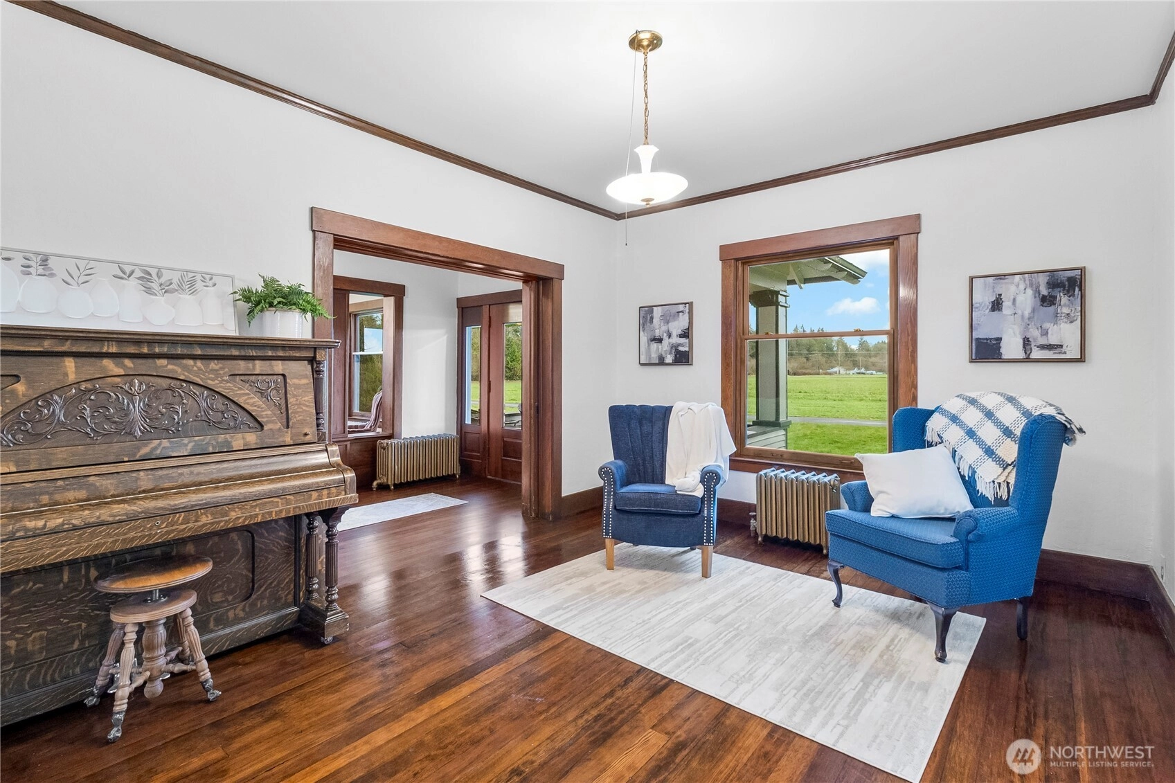 Timeless Craftsman home on 1 acre blends modern comforts with classic character. All new fresh interior paint throughout and brand new carpet installed downstairs. Open concept kitchen with granite countertops and stainless steel appliances. Breakfast seating area offers views of the surrounding rolling hills. 9 foot ceilings in the generously sized rooms downstairs. An office is conveniently located in the north wing of the home. New shower on the 2nd floor along with new baseboard heaters in all 4 bedrooms. Original straight grain fir hardwood floors throughout the home. Finished attic perfect for an entertainment/flex space. Large 2 car attached garage with 20x20 detached garage/shop. 12x16 garden shed w/ loft. Come see it today!