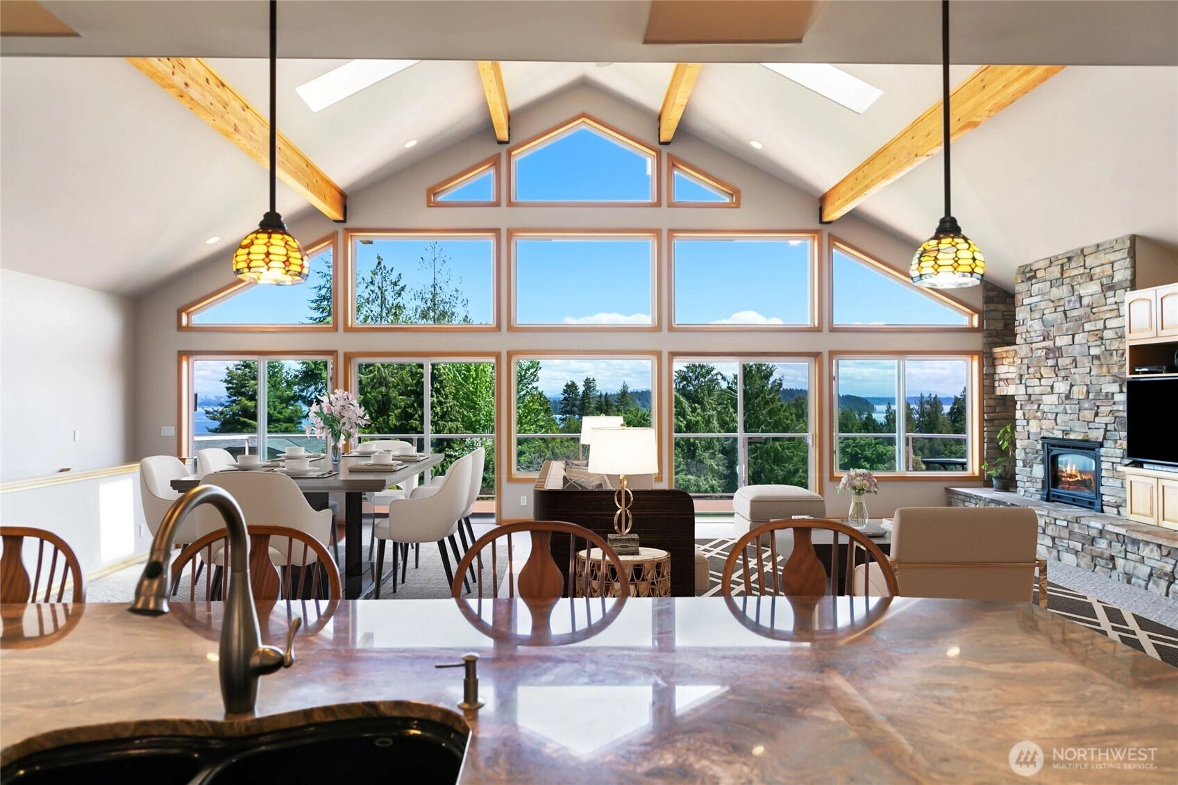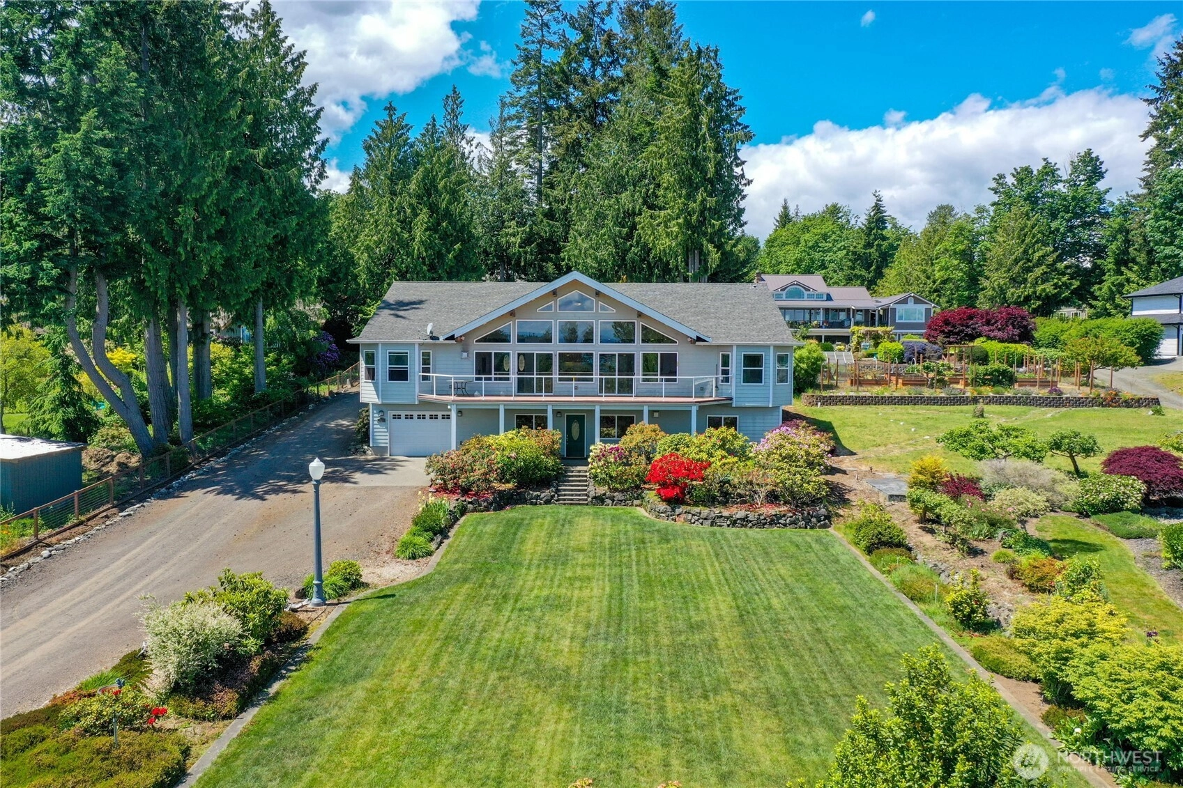 Welcome to this exceptional one-of-a-kind estate, perfectly nestled on a meticulously landscaped 1-acre lot. This luxurious home offers the ultimate in comfort and versatility with two primary suites on the main floor, and an elevated sanctuary boasting breathtaking, unobstructed views of the Puget Sound, Cascades, Mt. Rainier, and the Seattle skyline. Encounter nature’s masterpiece and unwind with dazzling sunrises from your private retreat. Crafted with attention to every detail, the home showcases high-end finishes, soaring ceilings, and seamless indoor-outdoor flow. Manicured gardens and elegant outdoor complete this rare property—offering serenity, privacy, and views that must be seen to believe in this Pacific Northwest paradise.