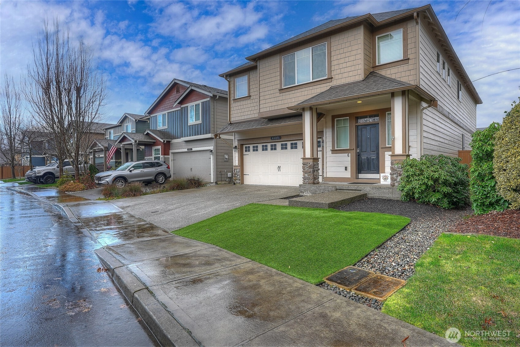 Welcome to Stewart Crossing. This 3120’ sq ft, 5bedroom 2.75 bath home offers so much living space, Large, Great Room, Dining Room, Gourmet Kitchen w/ large island, Bedroom/Bath on the Main floor. Stainless Steel GE appliances, Gas Cooktop, Wall Oven, granite slab. Huge Primary Bedroom w/ dual closets & a gorgeous 5 piece Master Bath! A HUGE Bonus Room up! 2 additional bedrooms up. Fully fenced backyard. Close to everything! Puyallup Schools. Easy freeway access and the Port of Tacoma. The front and back yard is maintenance free with artificial turf, and dog run & doggy door. This community has 2 parks, basket ball & pickle ball courts, and kids playground area. "SO MUCH TO OFFER"