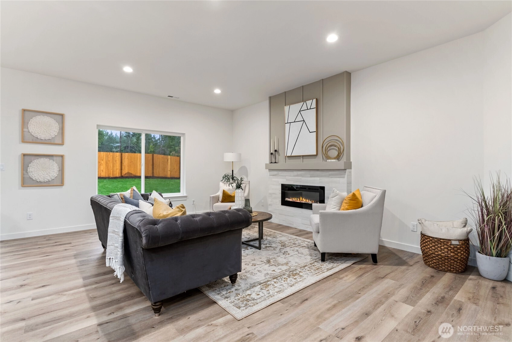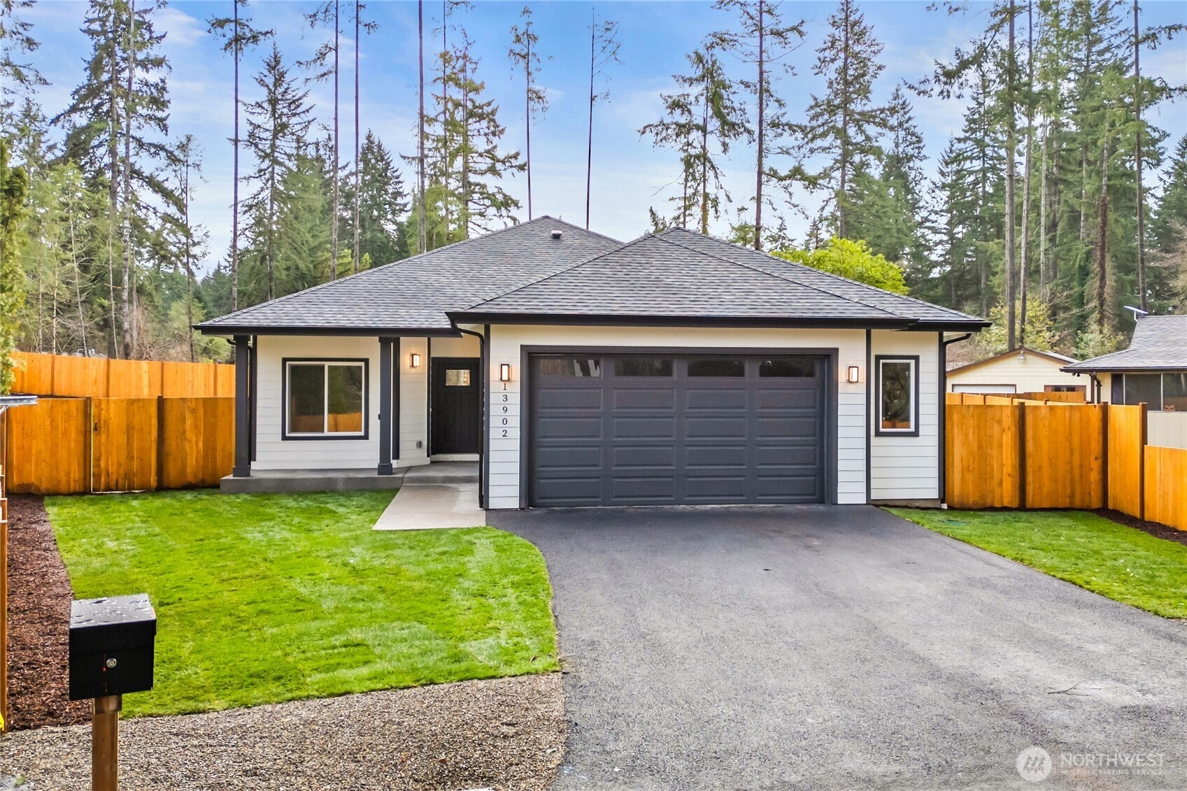 New-construction rambler in the private gated community of Lake Holiday, on a quiet cul-de-sac with a serene setting on a large lot with paved roads. Home features a covered front porch, oversized 2-car garage, fully fenced, and landscaped. 1,543 sqft open layout offers 9-ft ceilings, 3 bedrooms plus office and 2 full baths. LVP flooring, a spacious living area with an electric fireplace and tile surround. Modern kitchen includes a large island, tile backsplash, abundant cabinetry, and a formal dining area. Primary suite with double sinks, tiled bath, and walk-in closet. Private backyard with concrete patio. Community amenities include lake access, boat launch, stocked fishing lake, club house, playground, and trails.